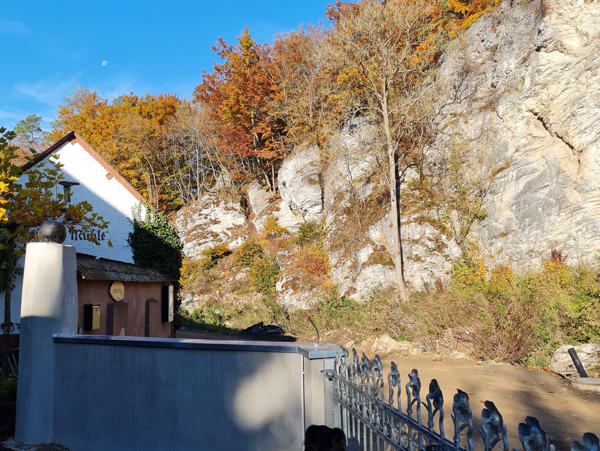 Das Haus ist nach der Hochwasserkatastrophe 2021 aufwändig renoviert worden .Die nebenstehende Kapelle war nach der ersten Hochwasserkatastrophe 1804 als Dank errichtet und lädt zum meditativen Verweilen ein.