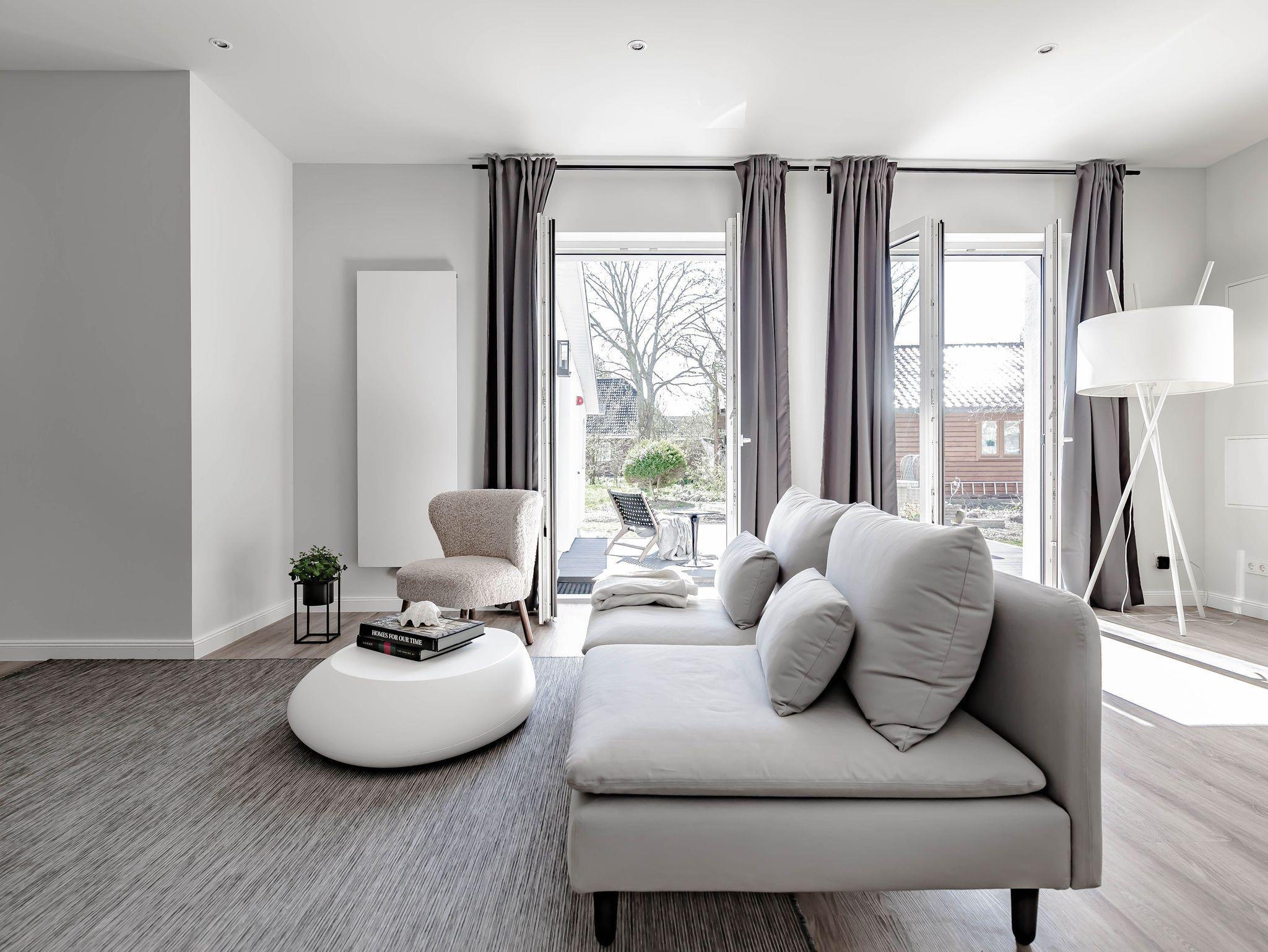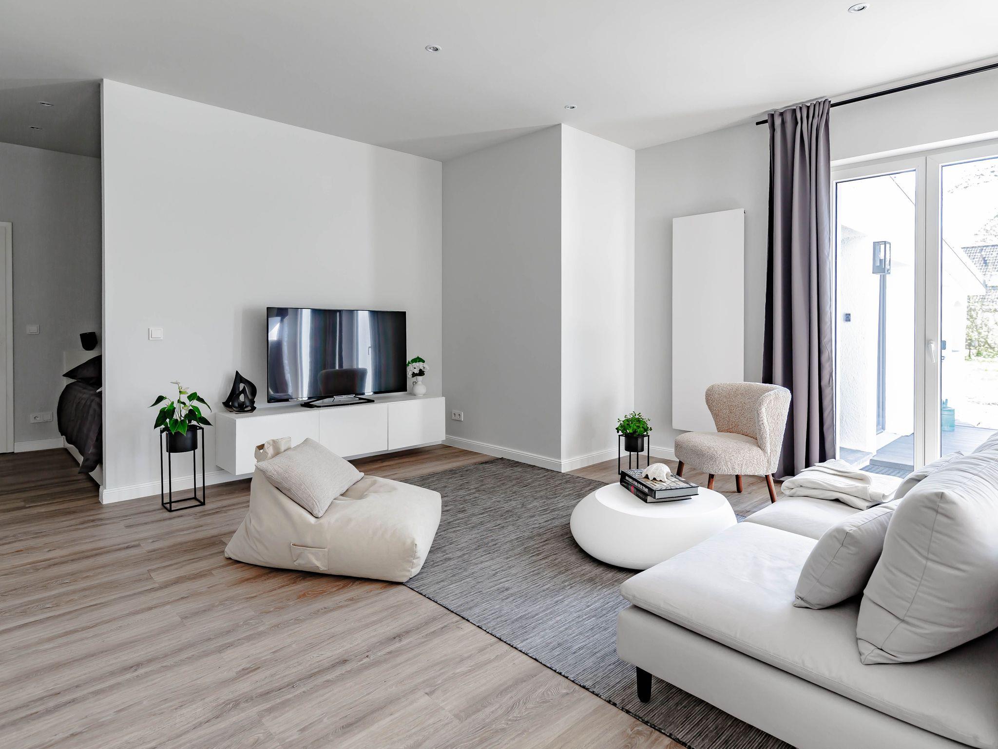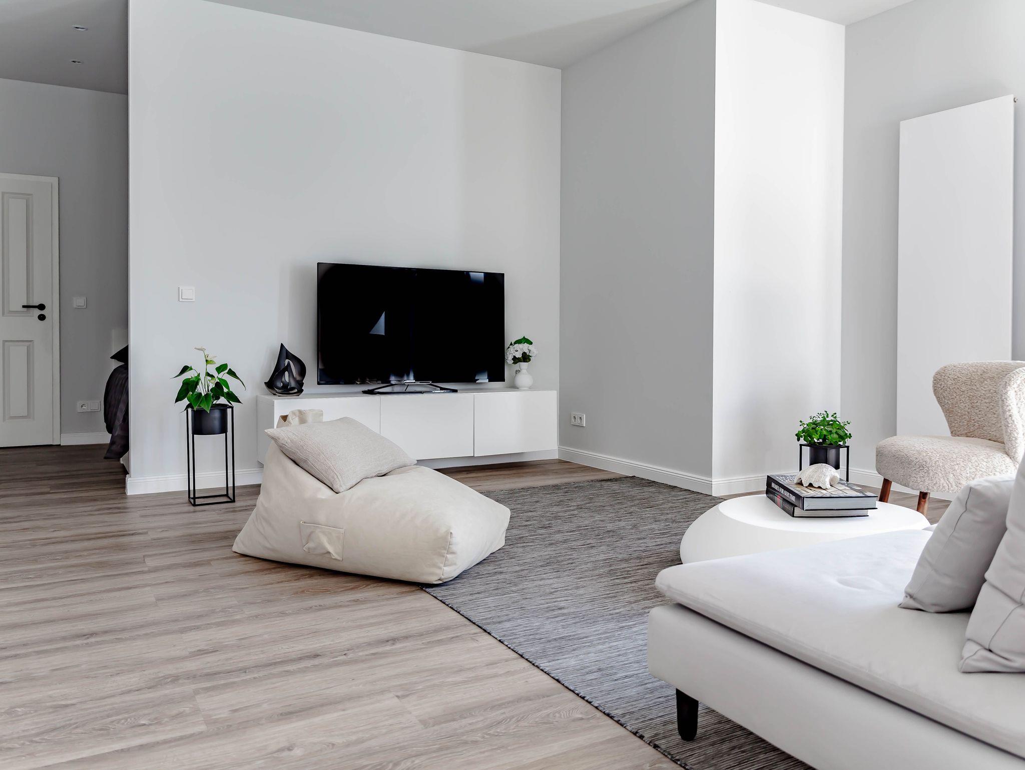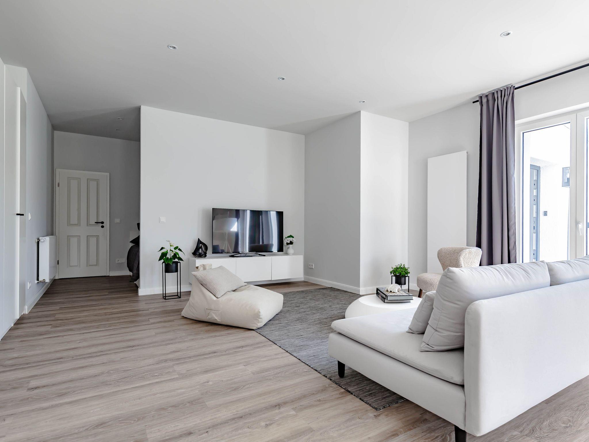 Die chic möblierte Wohnung ist in einem modernen, cleanen Wohndesign gestaltet. Sie