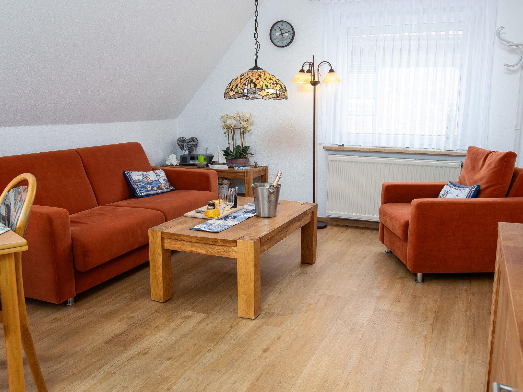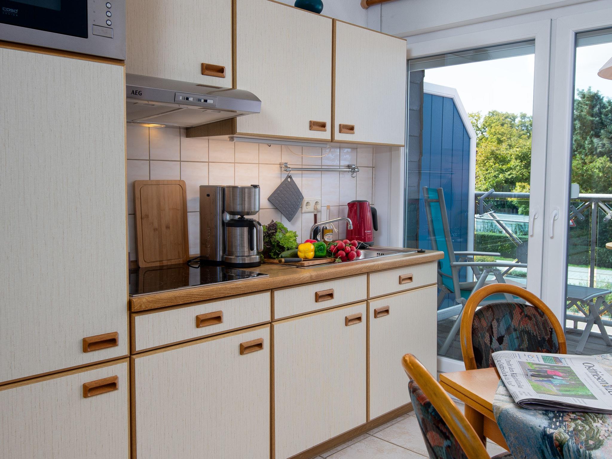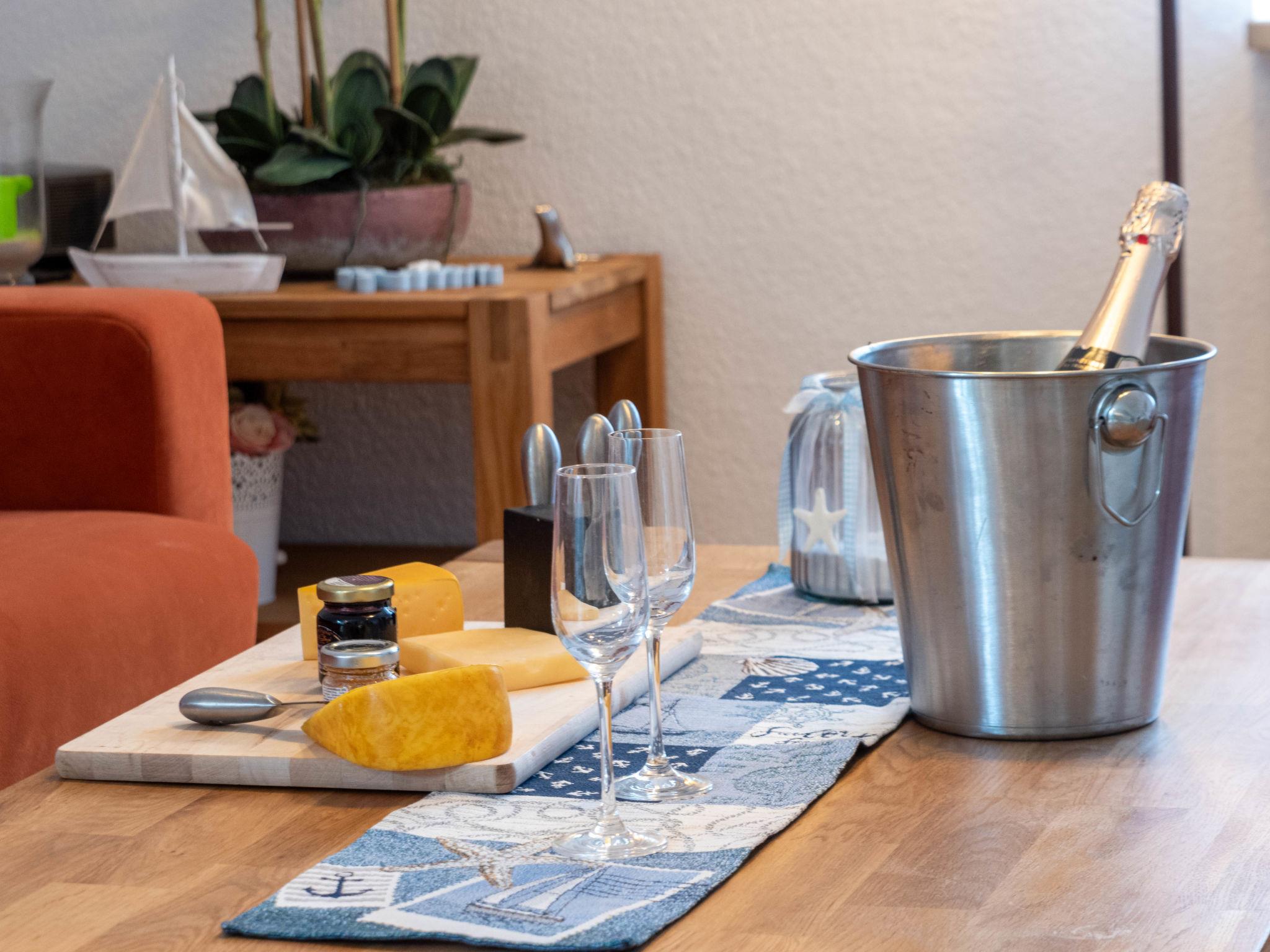 2-room apartment 40 m2, on the upper floor. Cosy furnishings: living/dining room 17 m2 with 1 sofabed (140 cm, length 200 cm), satellite TV (flat screen), radio. 1 room 9 m2 with 1 double bed (2 x 90 cm, length 200 cm). Kitchenette (4 ceramic glass hob hotplates, toaster, kettle, microwave, electric coffee machine, combination microwave). Shower/WC. Balcony. Balcony furniture. Facilities: children's high chair (extra). Please note: non-smokers only.