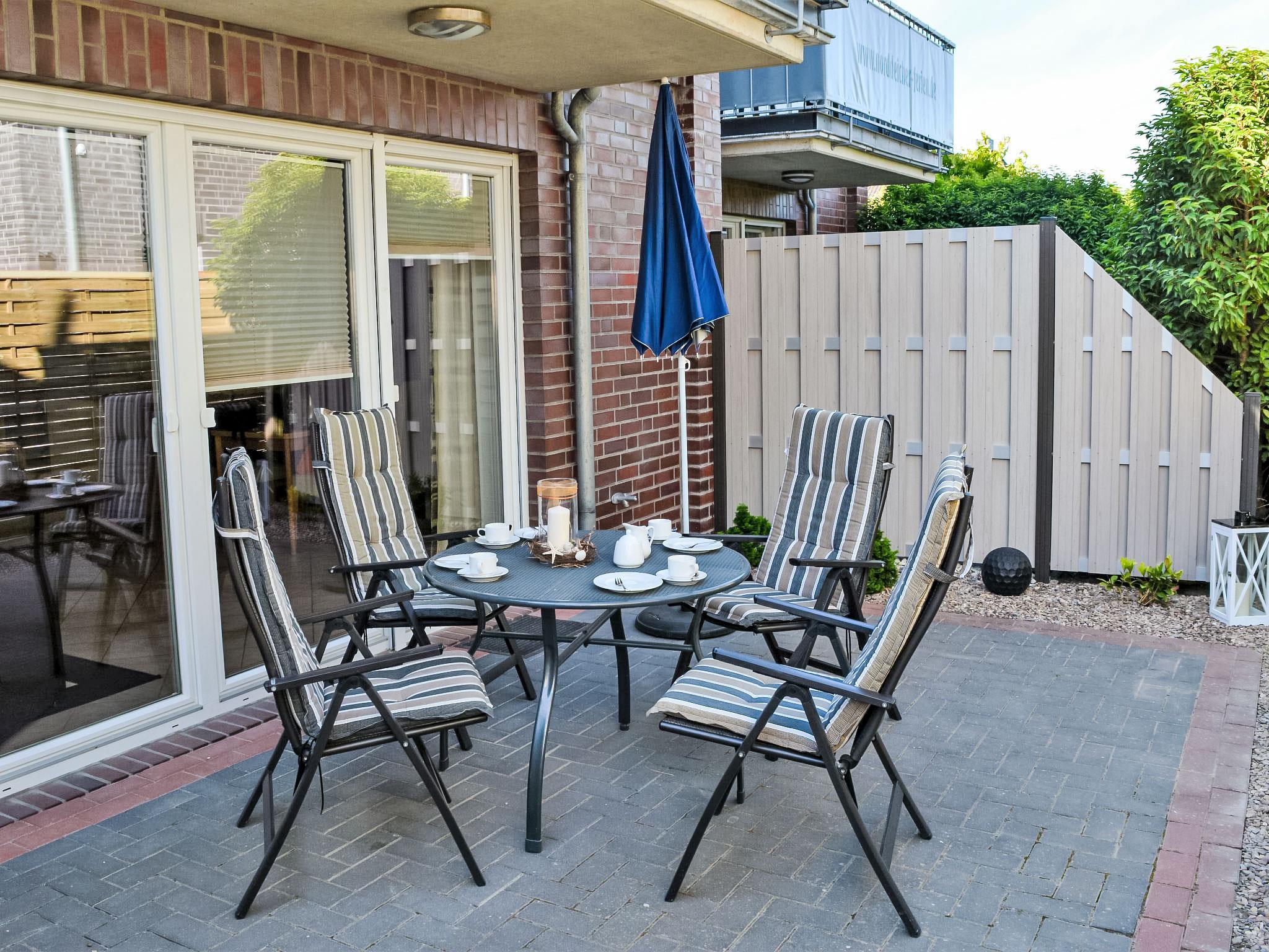 "Seestern", 3-room apartment 65 m2, on the ground floor. Comfortable and modern furnishings: living/dining room 30 m2 with satellite TV (flat screen), radio, DVD and DVD collection available. Exit to the terrace. 1 room 10 m2 with 1 double bed (2 x 90 cm, length 200 cm), satellite TV. 1 room 6 m2 with 2 beds (90 cm, length 200 cm). Kitchenette (oven, dishwasher, 4 ceramic glass hob hotplates, toaster, kettle, microwave, electric coffee machine). Shower/WC. Underfloor heating. Terrace. Terrace furniture, box-room. Facilities: washing machine, iron, children's high chair, hair dryer. Internet (WiFi, free). Please note: non-smokers only. Smoke alarm. The double bedroom faces inwards and has a window to the living / dining room instead of an exterior window. Sockets for e-bikes available in the garden shed. The TV is a SMART TV.