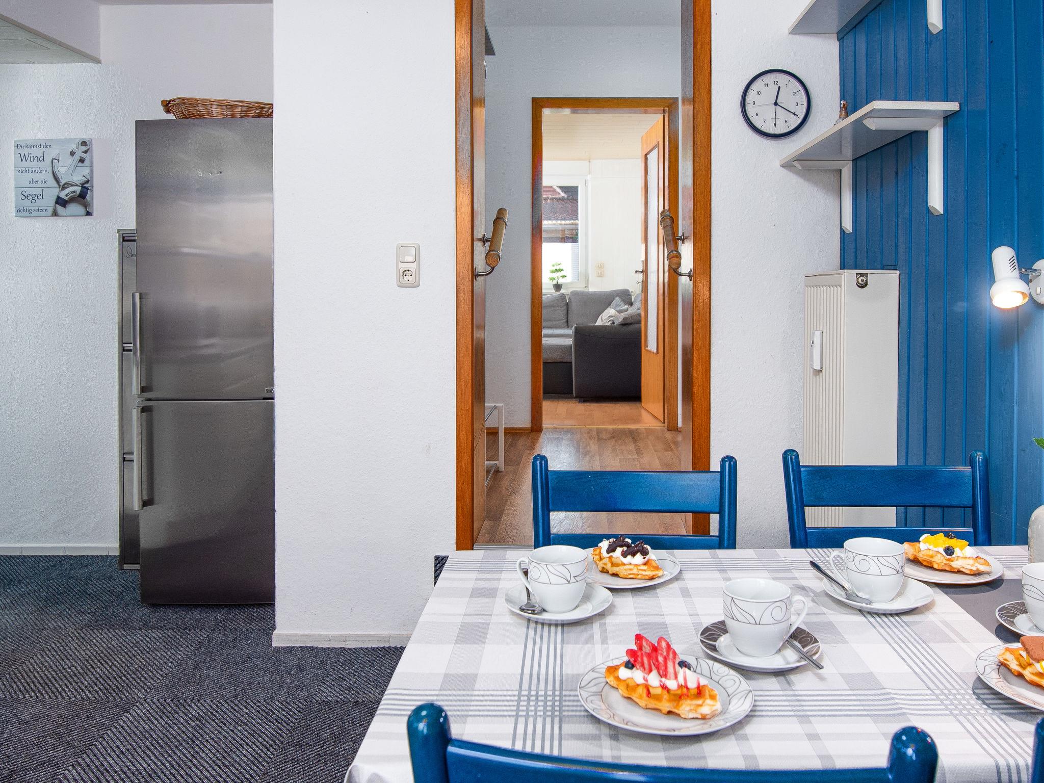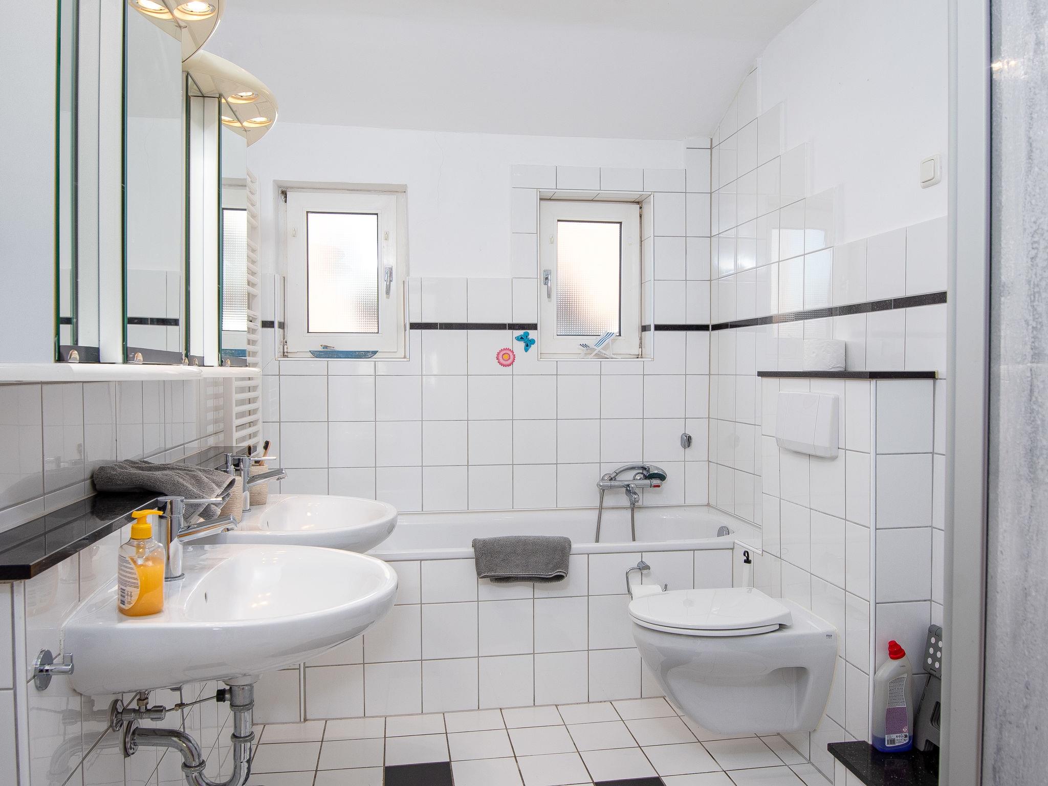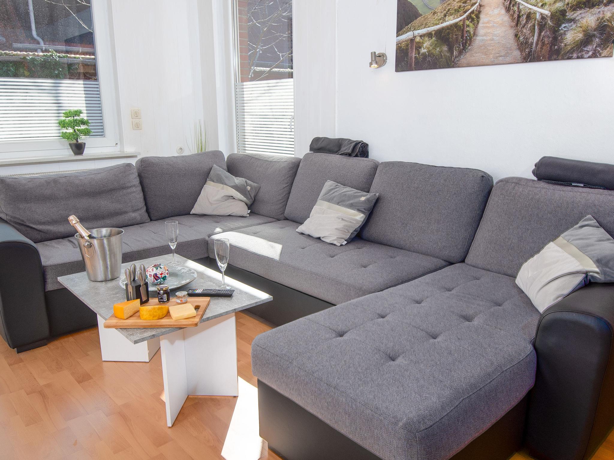 3-room apartment 80 m2, on the ground floor. Cosy furnishings: living room with satellite TV (flat screen). 1 room with 1 double bed (2 x 90 cm, length 200 cm). 1 room with 1 pull-out bed (2 pers. 2 x 90 cm, length 200 cm). Kitchen (oven, dishwasher, 4 ceramic glass hob hotplates, toaster, kettle, microwave, electric coffee machine) with dining table. Bath/shower/WC. Terrace roofed. Terrace furniture. Facilities: children's high chair (extra). Internet (WiFi, free). Please note: smoke alarm. Smoking allowed.