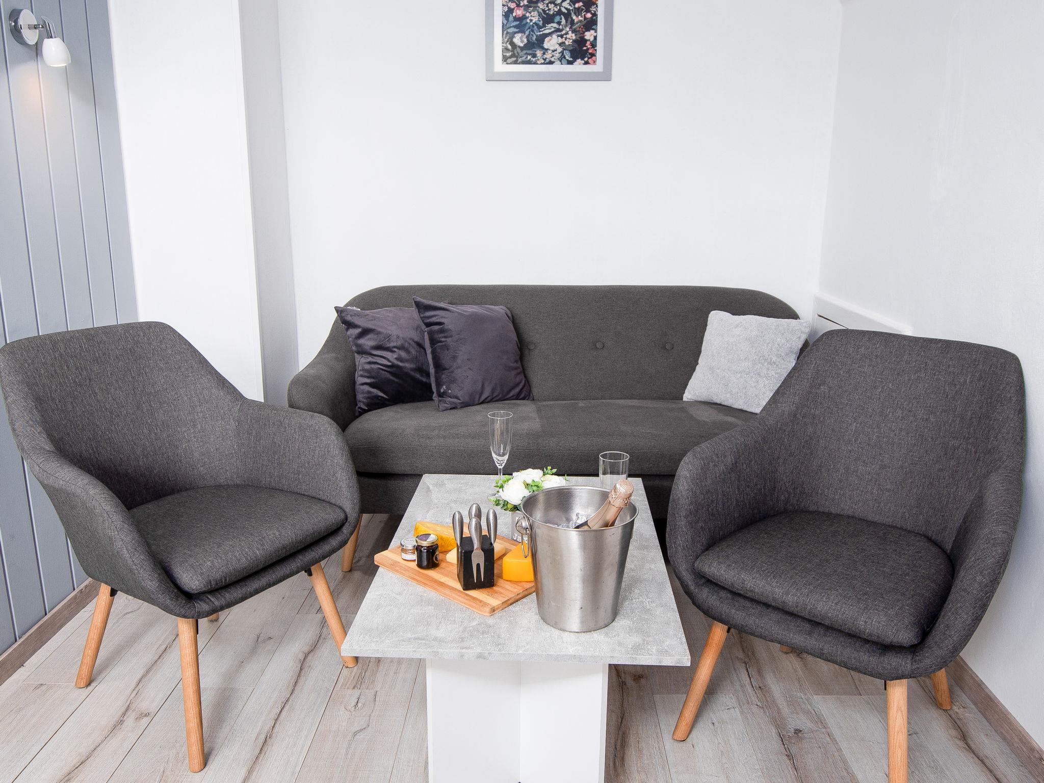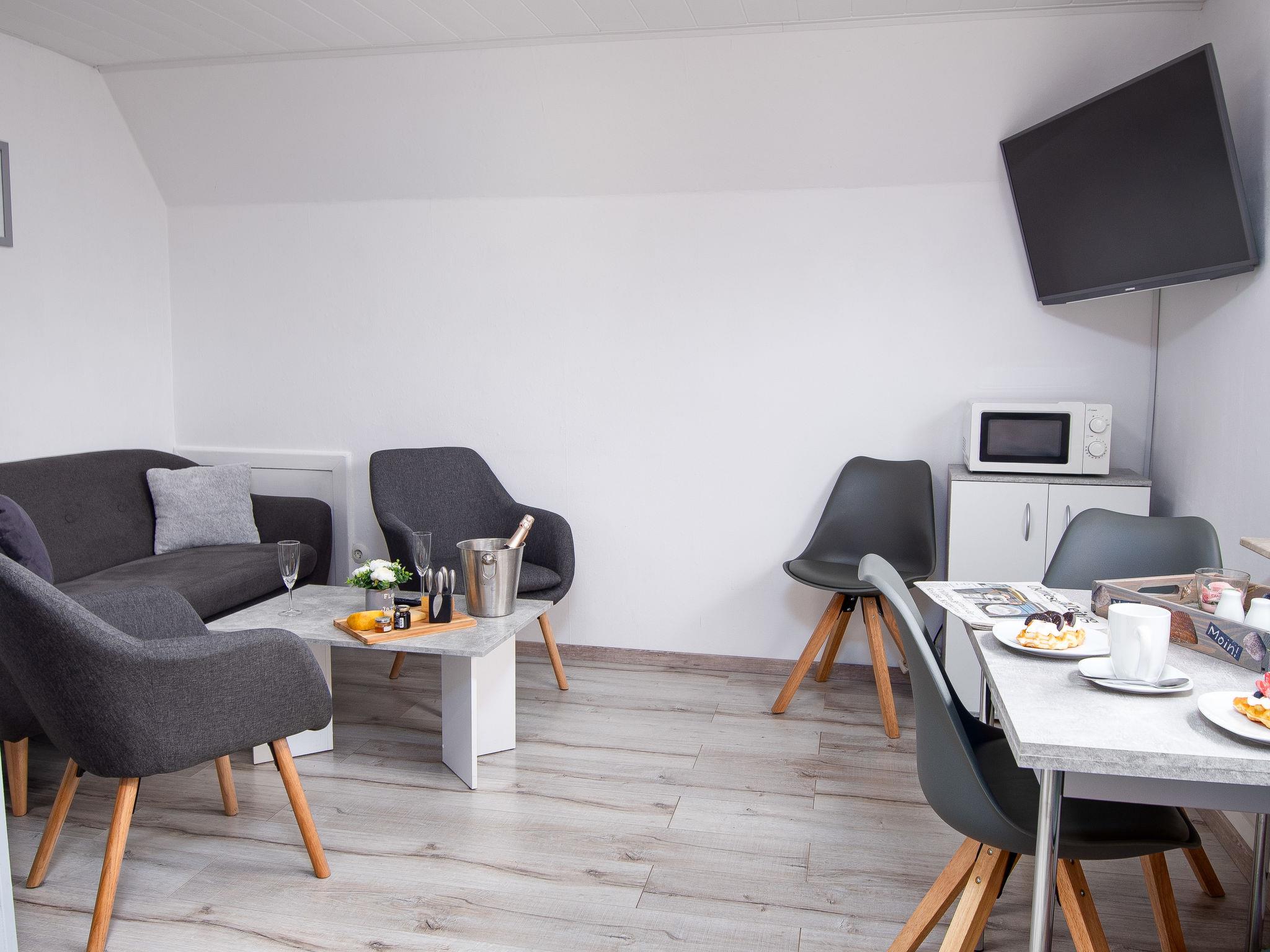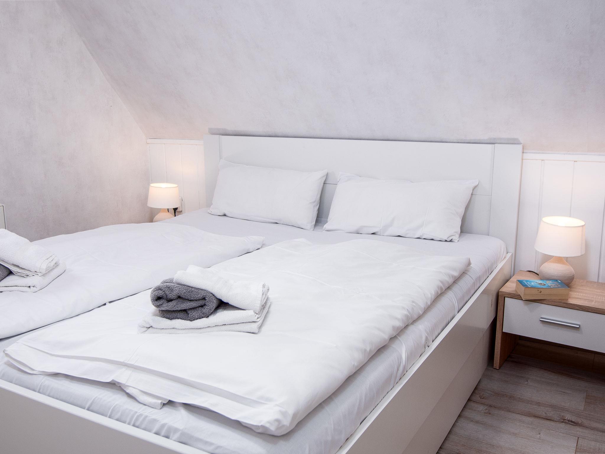 3-room apartment 45 m2, on the top floor. Cosy furnishings: living/dining room with dining table and satellite TV (flat screen). 1 room with 1 double bed. 1 room with 1 bed. Exit to the balcony. Kitchenette (2 ceramic glass hob hotplates, toaster, kettle, microwave, electric coffee machine, Capsules for coffee machine (Senseo) extra). Shower/WC. Large balcony. Balcony furniture. Facilities: children's high chair, baby cot for up to 2 year olds (extra). Internet (WiFi, free). Please note: smoke alarm.