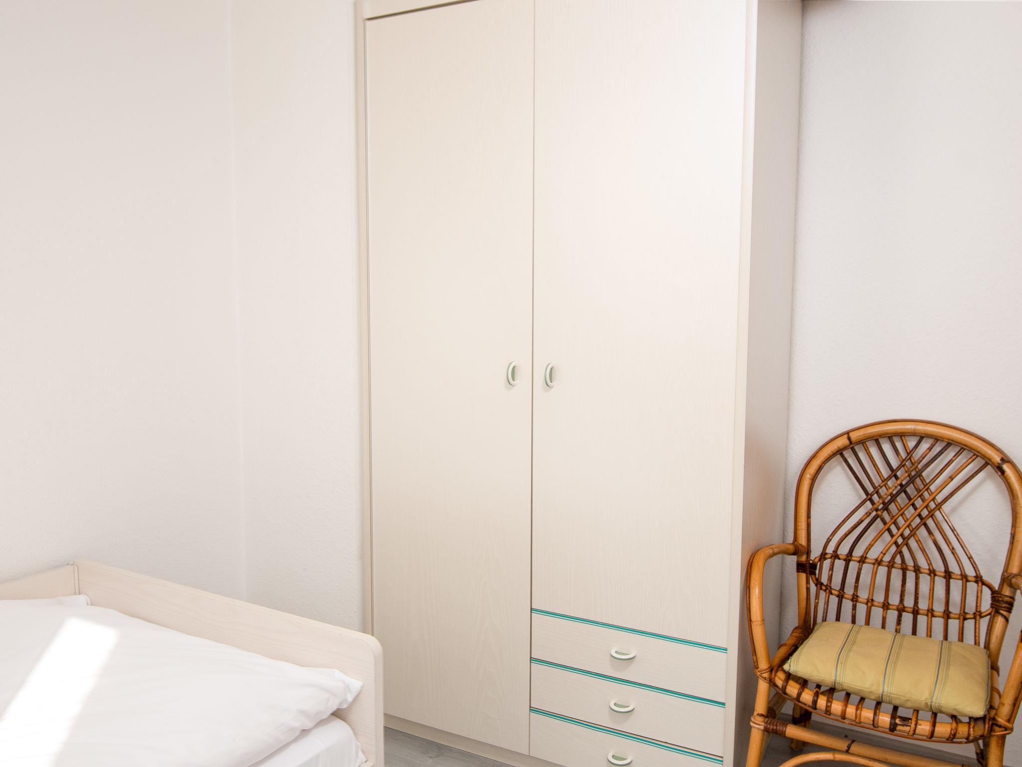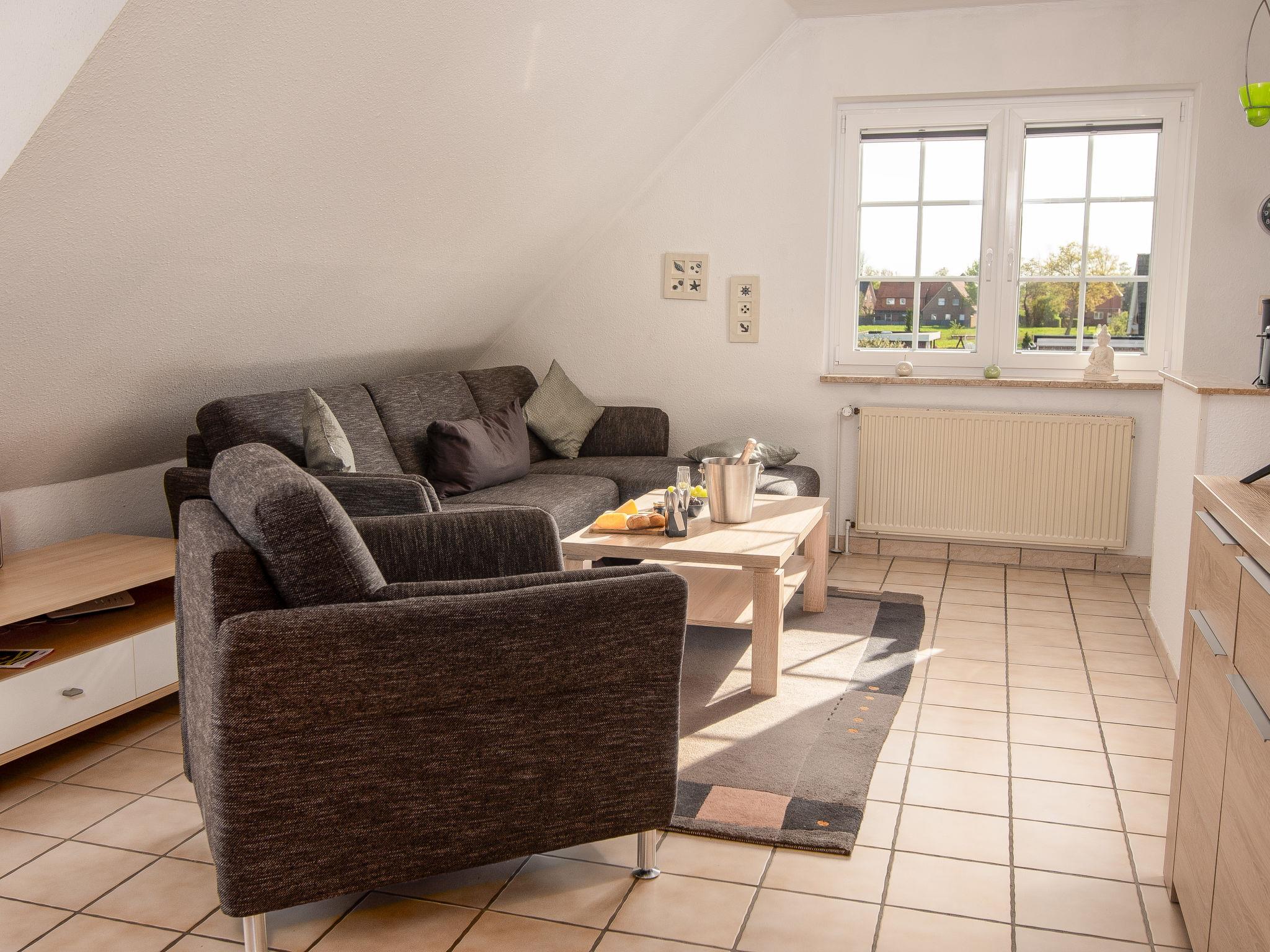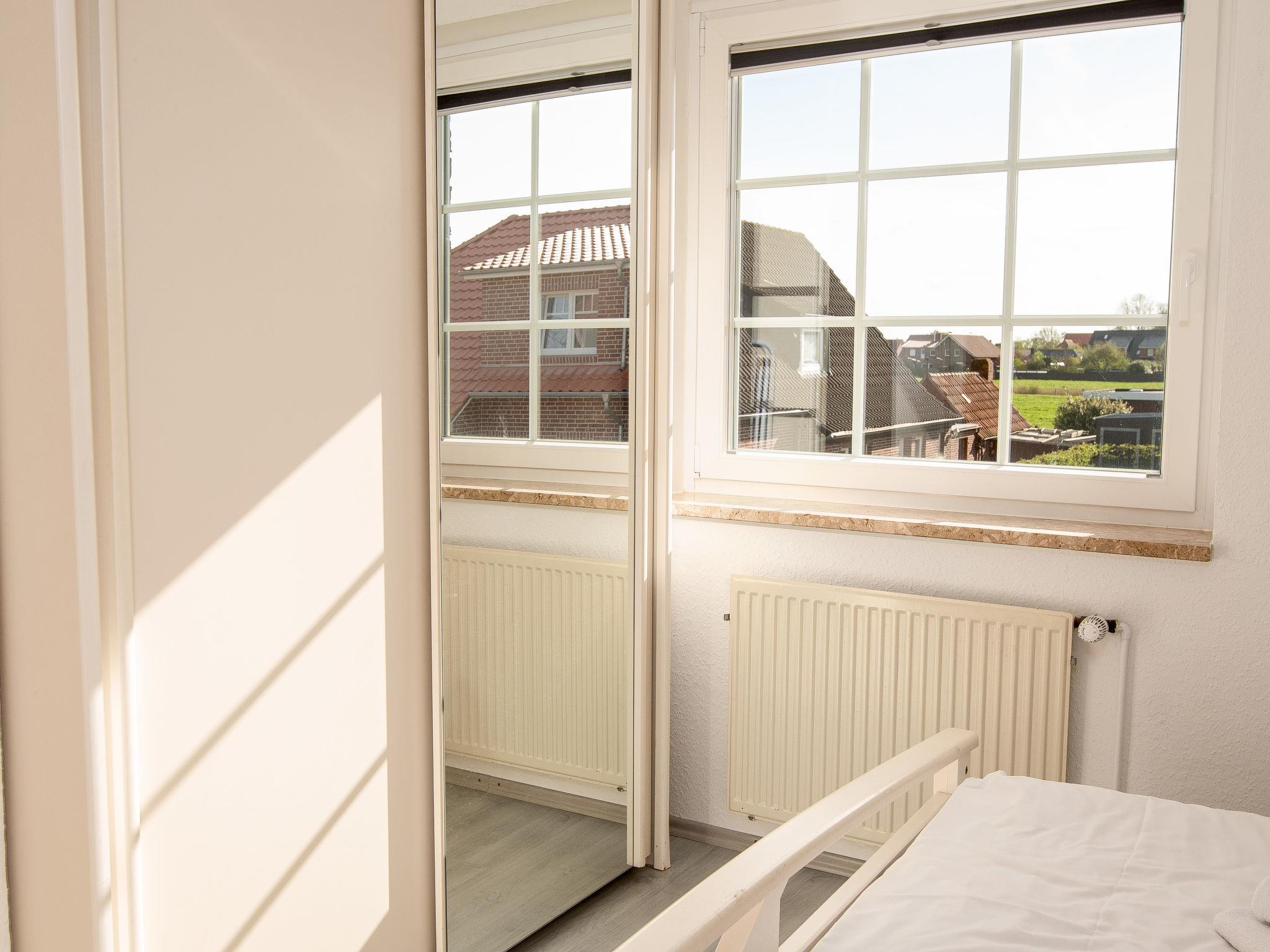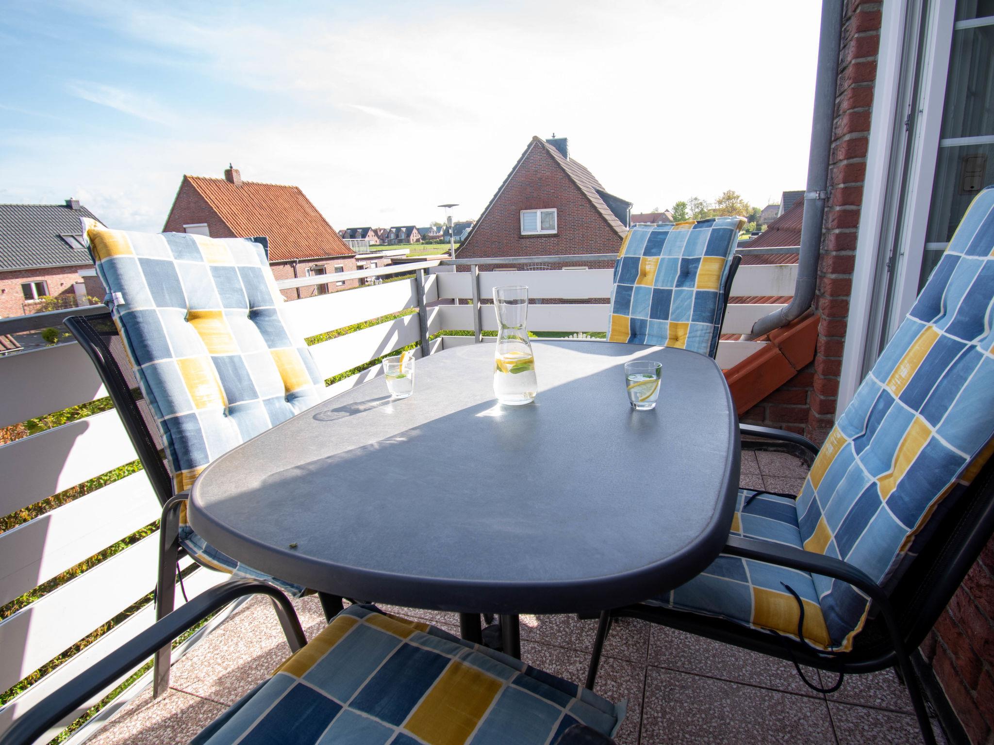 3-room apartment 65 m2, on the upper floor. Bright, partly with sloping ceilings, cosy furnishings: living/dining room 28 m2 with cable TV (flat screen), hi-fi system. Exit to the balcony. 1 room 9 m2 with 1 double bed (2 x 100 cm, length 200 cm). 1 room 8 m2 with 2 beds (90 cm, length 200 cm). Small kitchenette (4 hot plates, oven, dishwasher, toaster, kettle, microwave, electric coffee machine). Shower/WC. Balcony. Balcony furniture. Facilities: iron, children's high chair (extra). Internet (WiFi, free). Please note: non-smokers only. Smoke alarm. DE40827