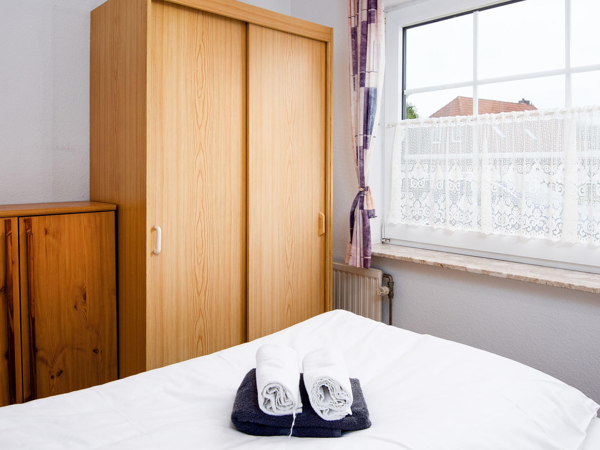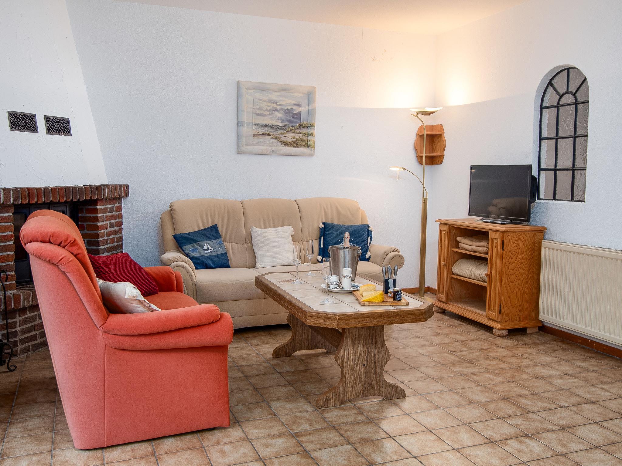 "Seepferdchen", 3-room apartment 55 m2, on the ground floor. Simple furnishings: living/dining room with open-hearth fireplace (only for decoration), cable TV (flat screen). Exit to the terrace. 1 room with 2 beds. 1 room with 1 bed (140 cm, length 200 cm). Small kitchen (4 hot plates, toaster, kettle, electric coffee machine, combination microwave). Shower/WC. Terrace. Terrace furniture. Facilities: baby cot for up to 2 year olds (extra). Please note: maximum 1 pet/ dog allowed. Smoke alarm.