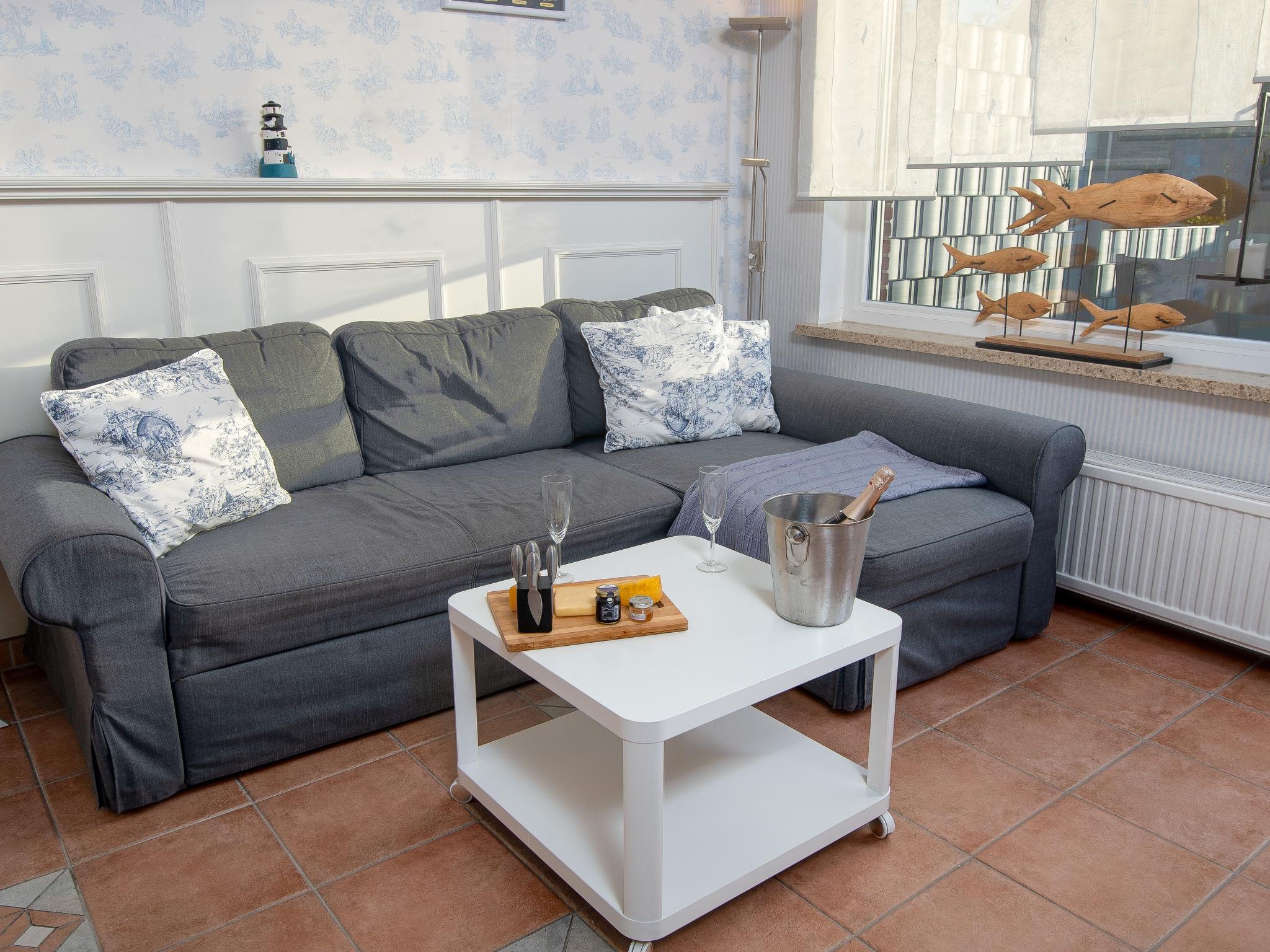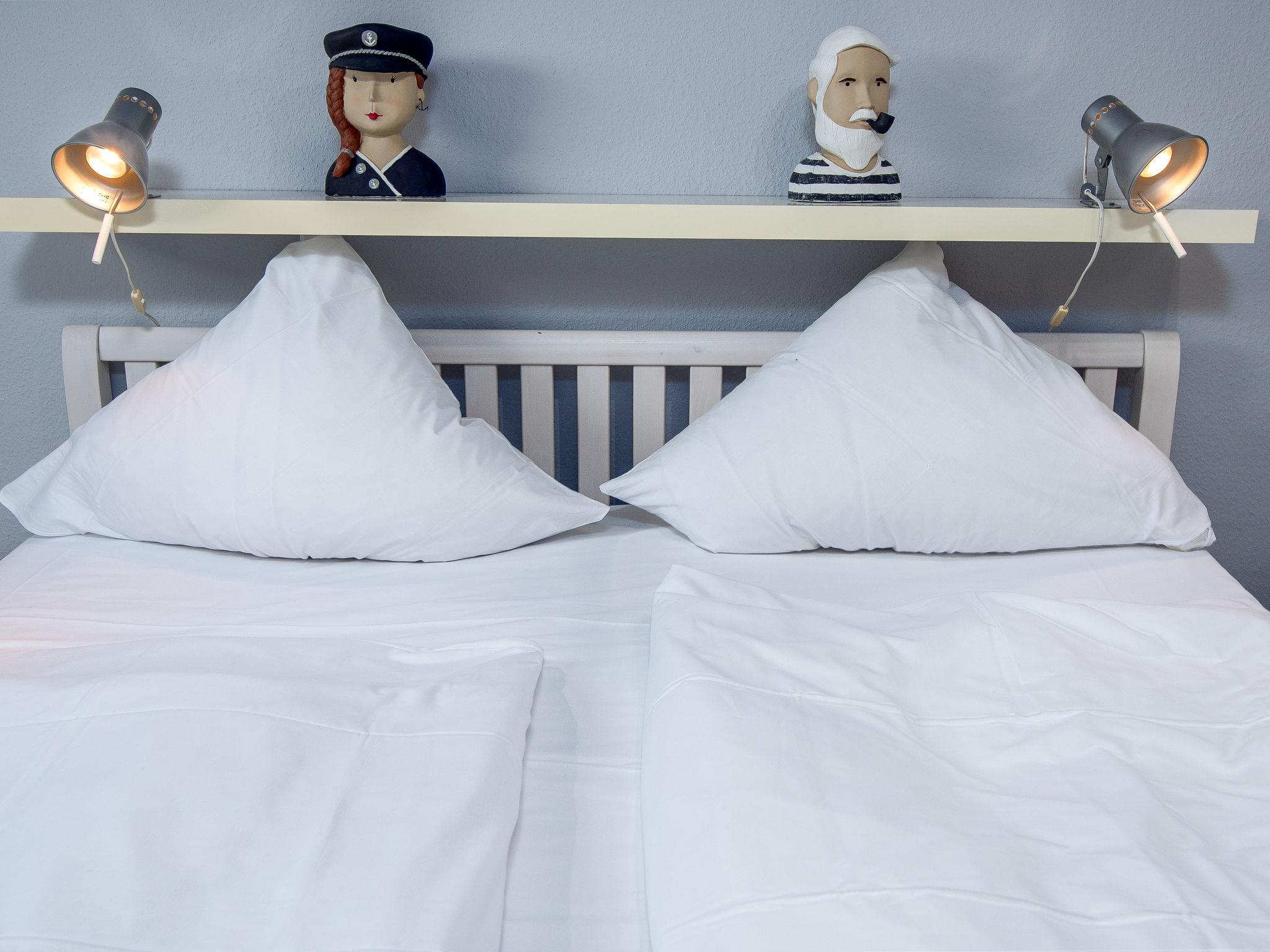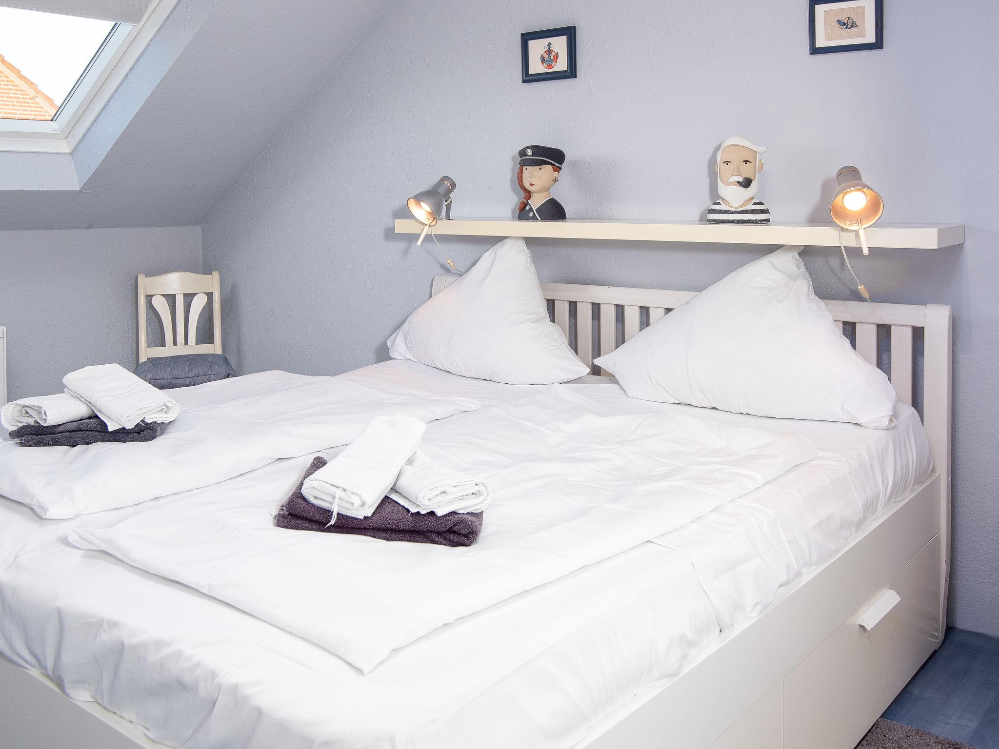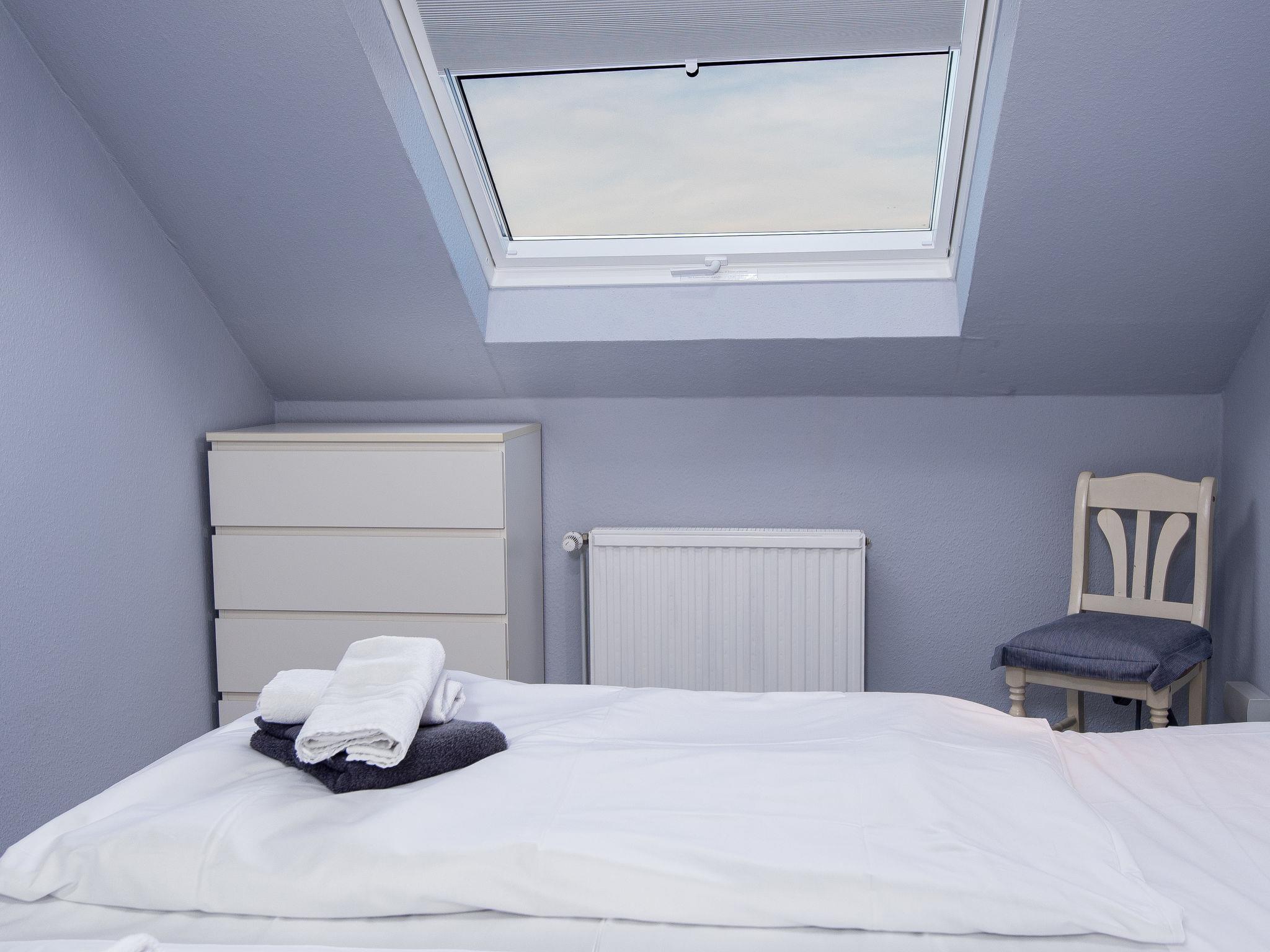 "Rollis Kate", 3-room terraced house 63 m2 on 2 levels. Tasteful and cosy furnishings: living/dining room with satellite TV (flat screen), hi-fi system. Exit to the terrace. Small kitchen (dishwasher, 4 ceramic glass hob hotplates, toaster, kettle, microwave, electric coffee machine). Shower/WC. Upper floor: 1 room with sloping ceilings with 1 double bed. 1 room with sloping ceilings with 2 beds and cable TV (flat screen). Sep. WC. Terrace. Terrace furniture, barbecue. Facilities: washing machine, children's high chair, baby cot for up to 2 year olds. Internet (WiFi, free). Please note: non-smokers only. Smoke alarm. The windows have electric shutters. The terrace is equipped with an electric awning.