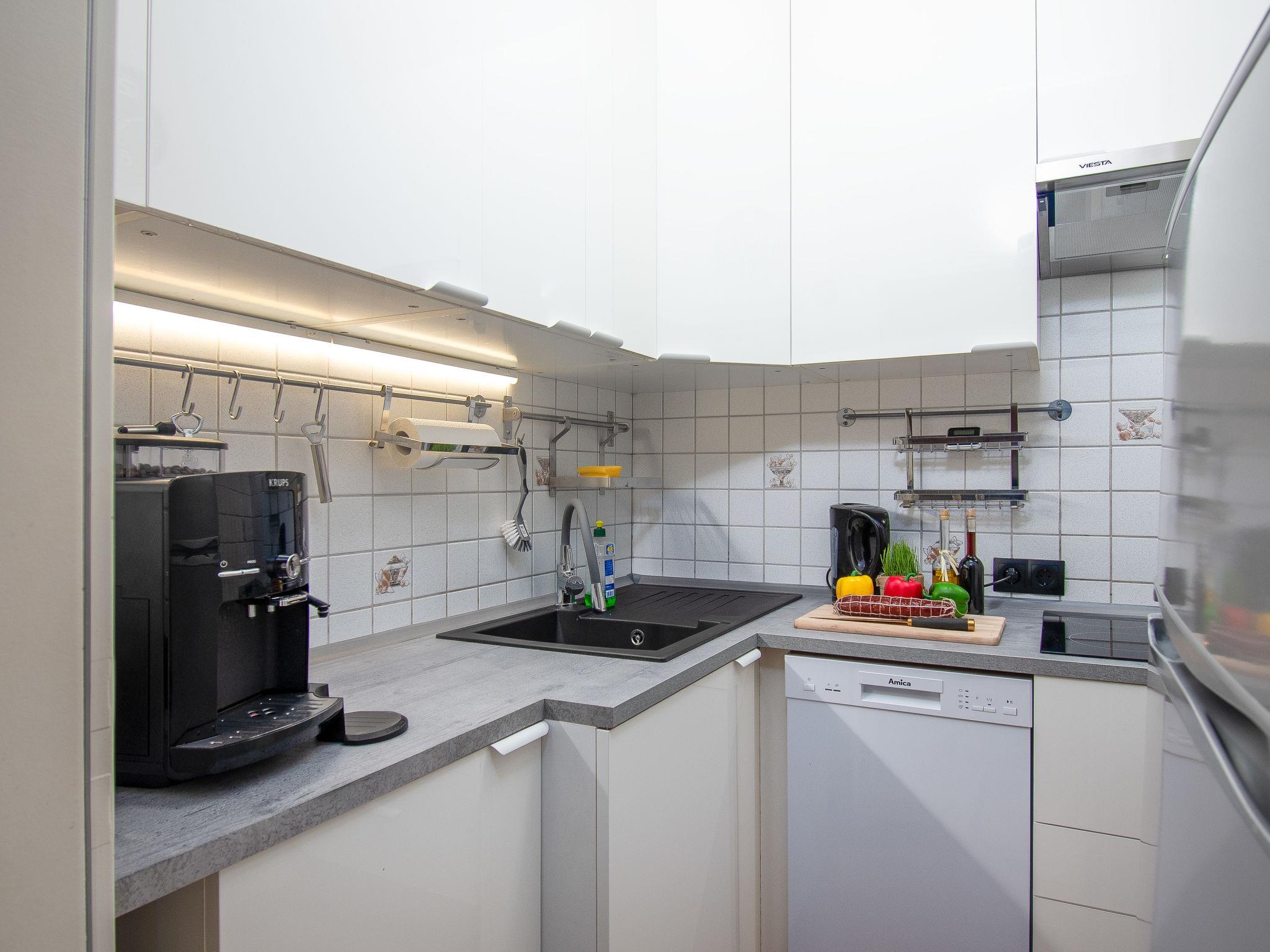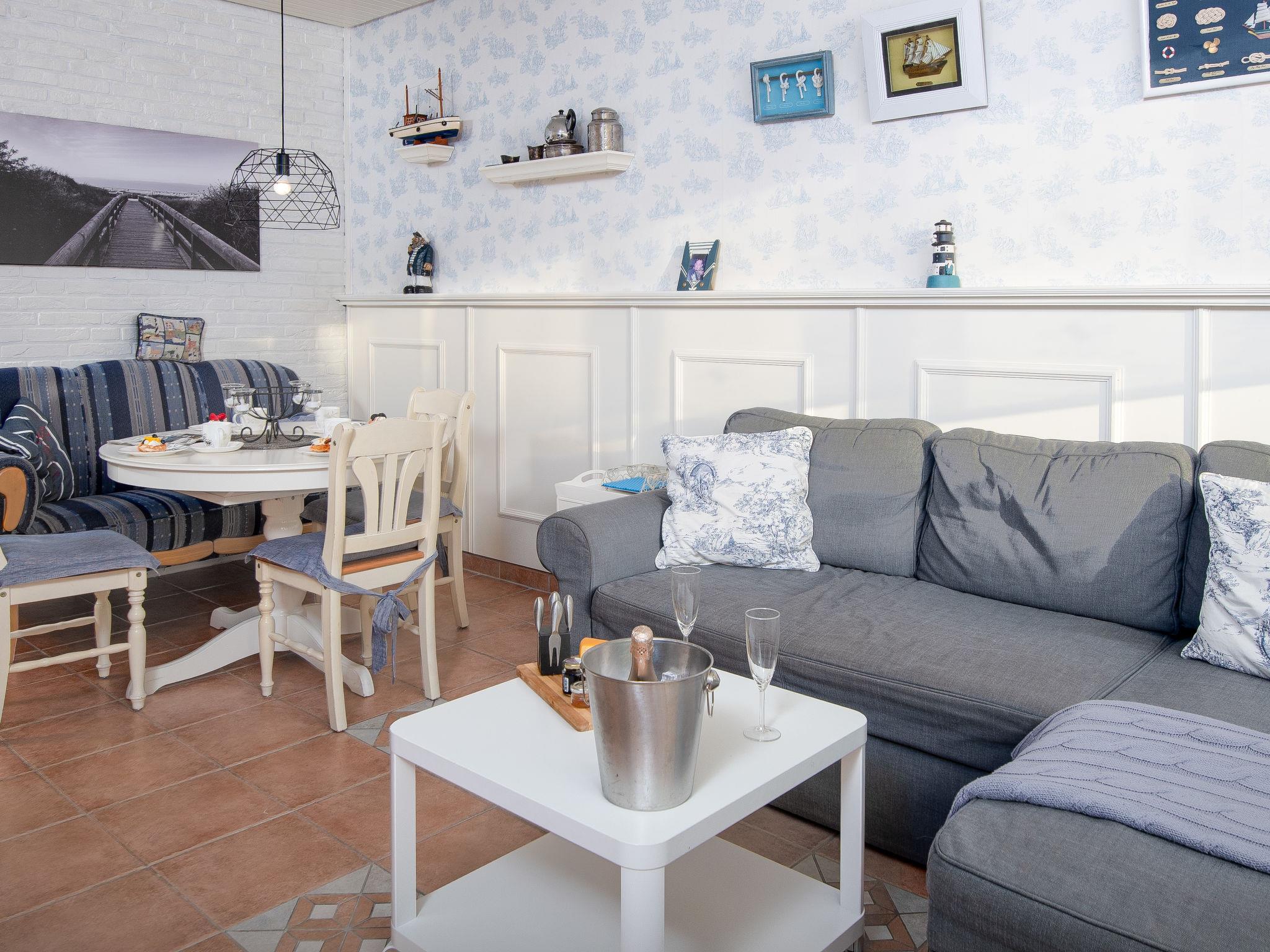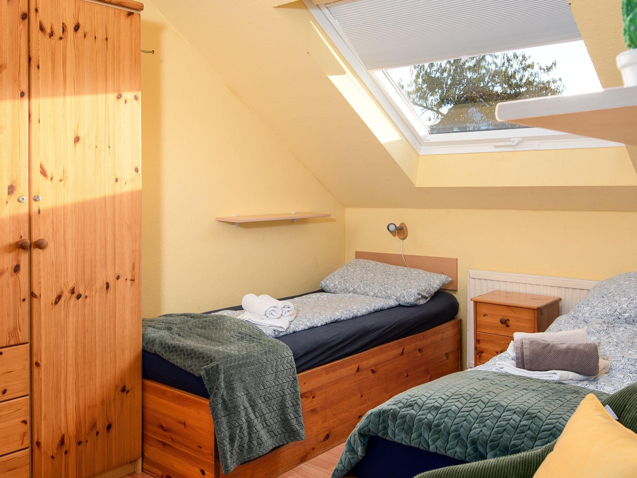 "Rollis Kate", 3-room terraced house 63 m2 on 2 levels. Tasteful and cosy furnishings: living/dining room with satellite TV (flat screen), hi-fi system. Exit to the terrace. Small kitchen (dishwasher, 4 ceramic glass hob hotplates, toaster, kettle, microwave, electric coffee machine). Shower/WC. Upper floor: 1 room with sloping ceilings with 1 double bed. 1 room with sloping ceilings with 2 beds and cable TV (flat screen). Sep. WC. Terrace. Terrace furniture, barbecue. Facilities: washing machine, children's high chair, baby cot for up to 2 year olds. Internet (WiFi, free). Please note: non-smokers only. Smoke alarm. The windows have electric shutters. The terrace is equipped with an electric awning.