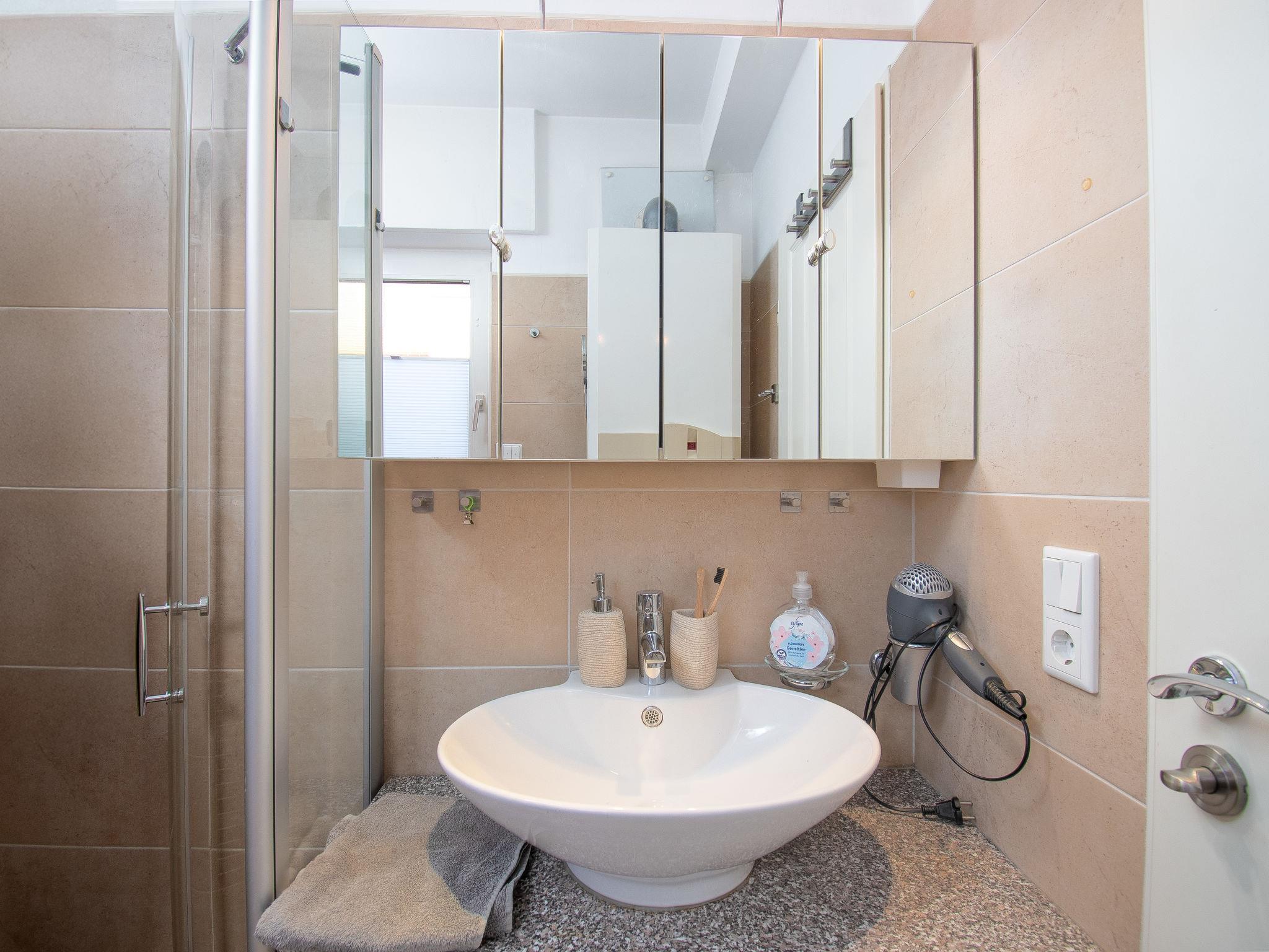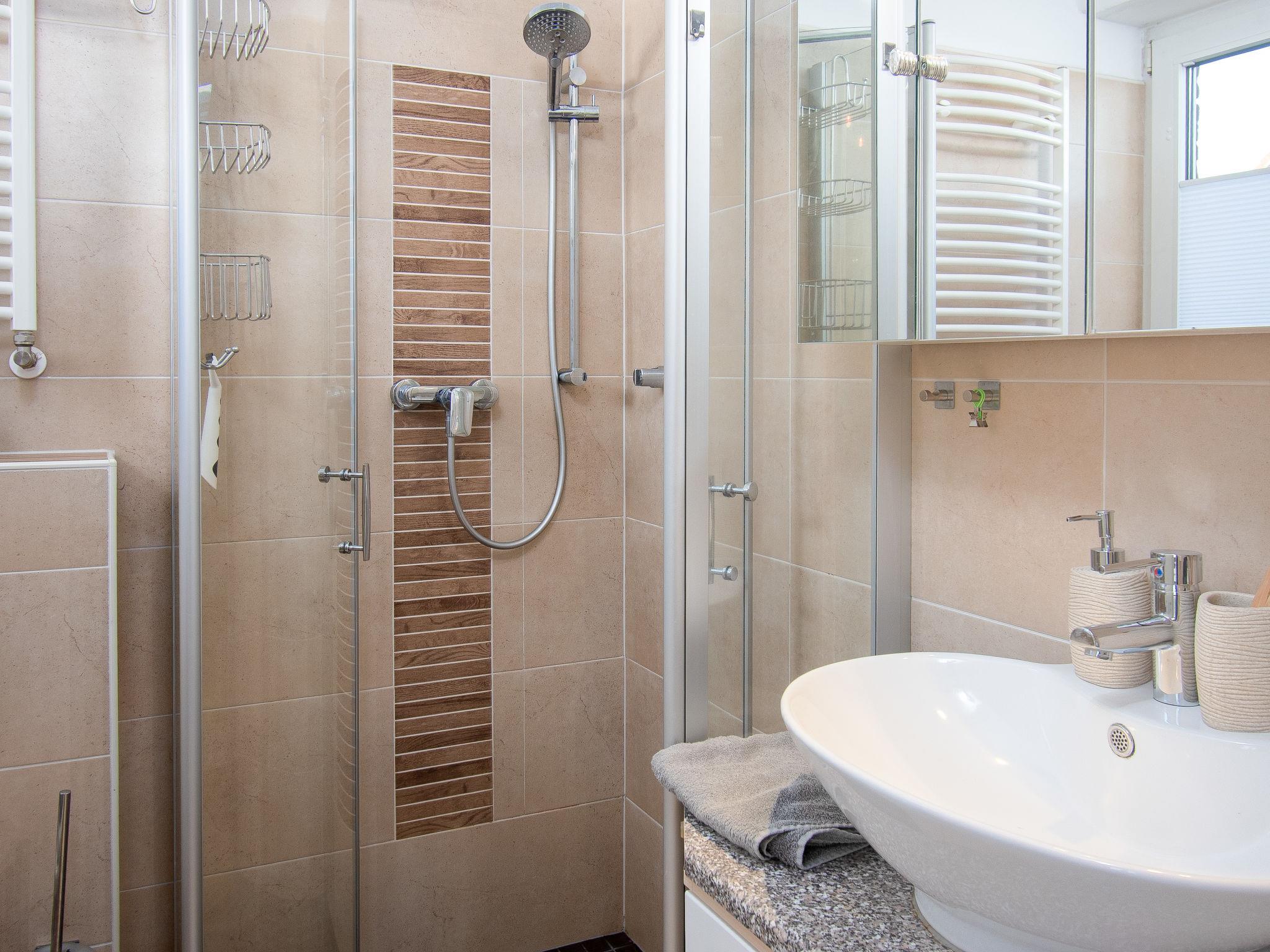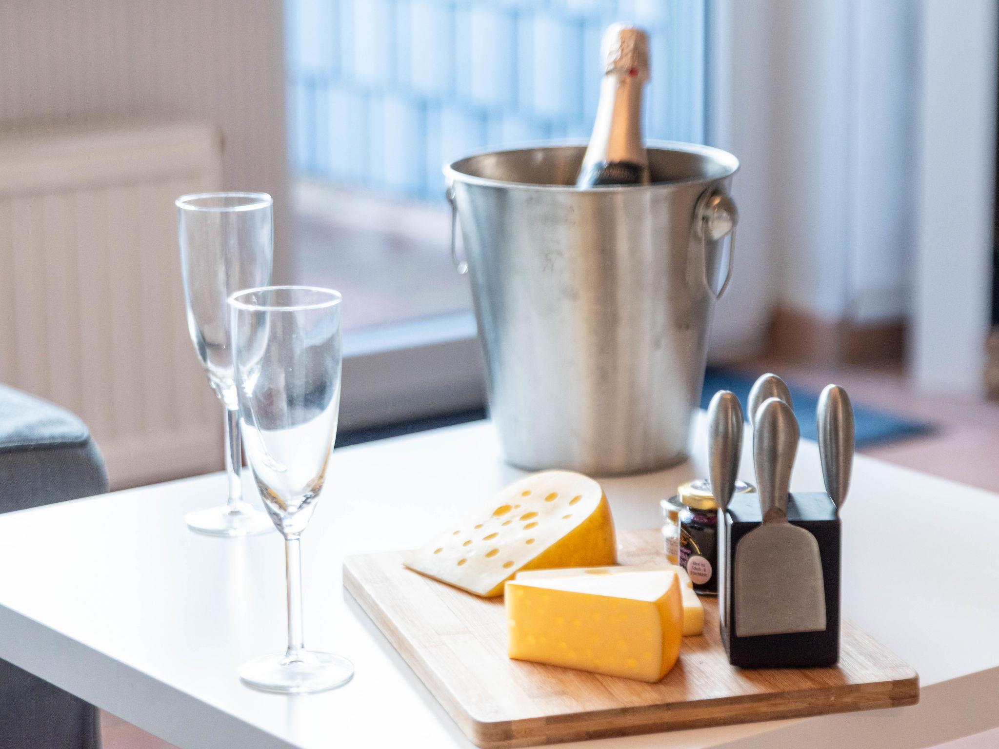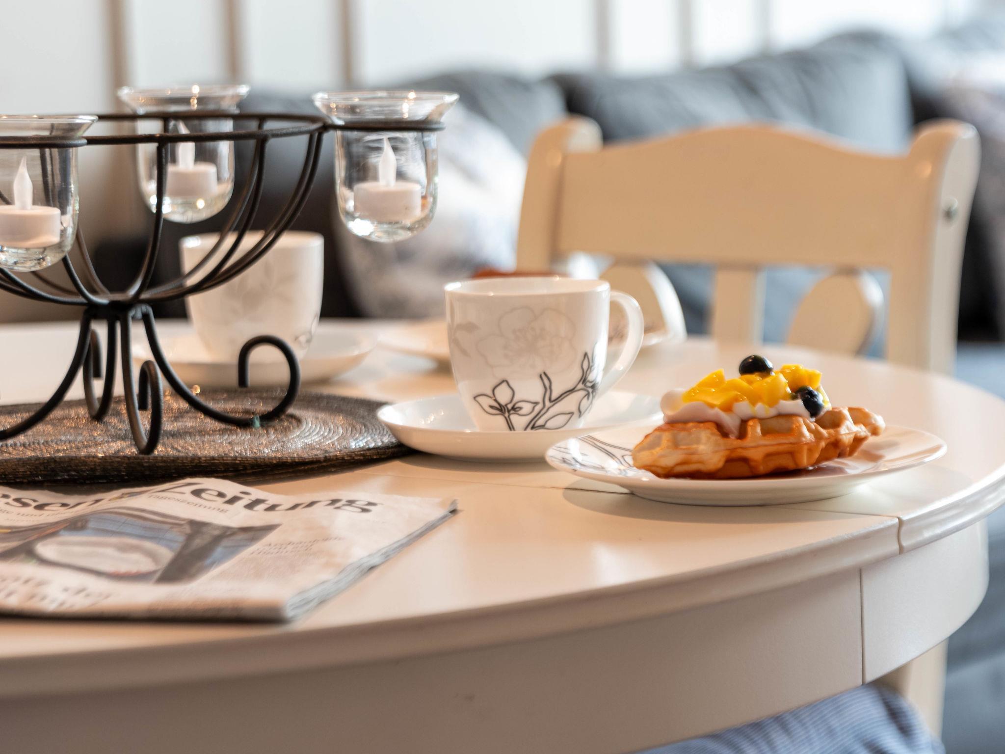 "Rollis Kate", 3-room terraced house 63 m2 on 2 levels. Tasteful and cosy furnishings: living/dining room with satellite TV (flat screen), hi-fi system. Exit to the terrace. Small kitchen (dishwasher, 4 ceramic glass hob hotplates, toaster, kettle, microwave, electric coffee machine). Shower/WC. Upper floor: 1 room with sloping ceilings with 1 double bed. 1 room with sloping ceilings with 2 beds and cable TV (flat screen). Sep. WC. Terrace. Terrace furniture, barbecue. Facilities: washing machine, children's high chair, baby cot for up to 2 year olds. Internet (WiFi, free). Please note: non-smokers only. Smoke alarm. The windows have electric shutters. The terrace is equipped with an electric awning.