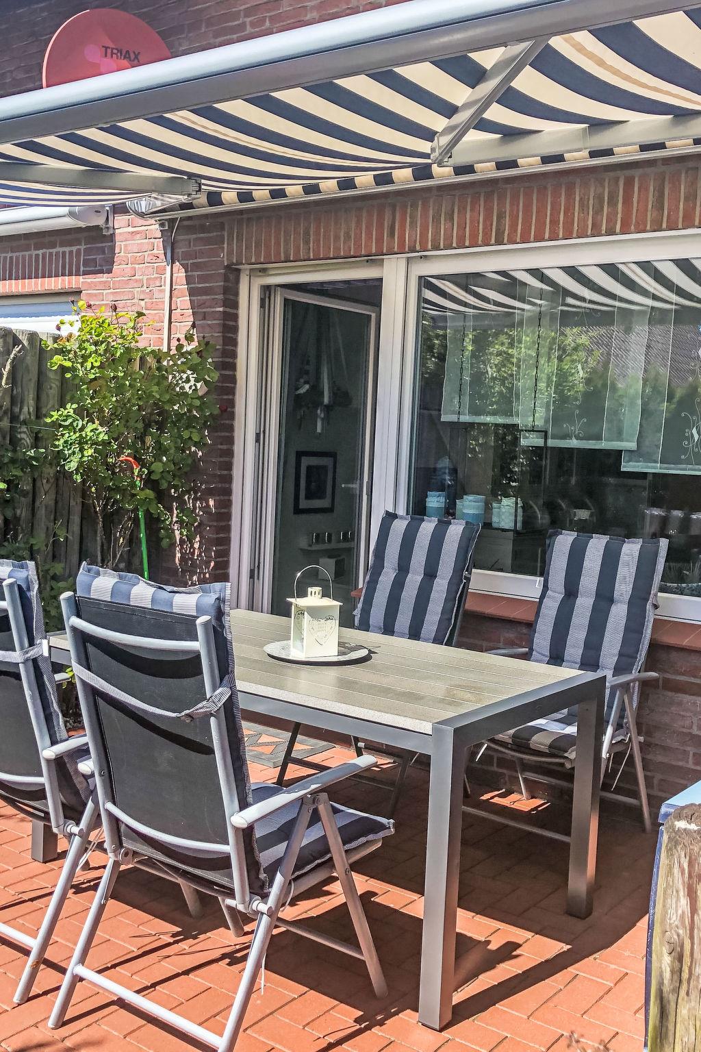 Terraced house, 2 storeys. In the centre of Norddeich, 500 m from the sea, 500 m from the beach, in a cul-de-sac. In the house: storage room for bicycles, central heating system. Parking at the house. Supermarket 1.8 km, restaurant, bakery, café 500 m, bus stop 550 m, railway station 2 km, ferry 2 km, outdoor swimming pool 15 km, indoor swimming pool 600 m. Golf course (18 hole) 9 km, surf school, minigolf 600 m, children's playground 50 m.
