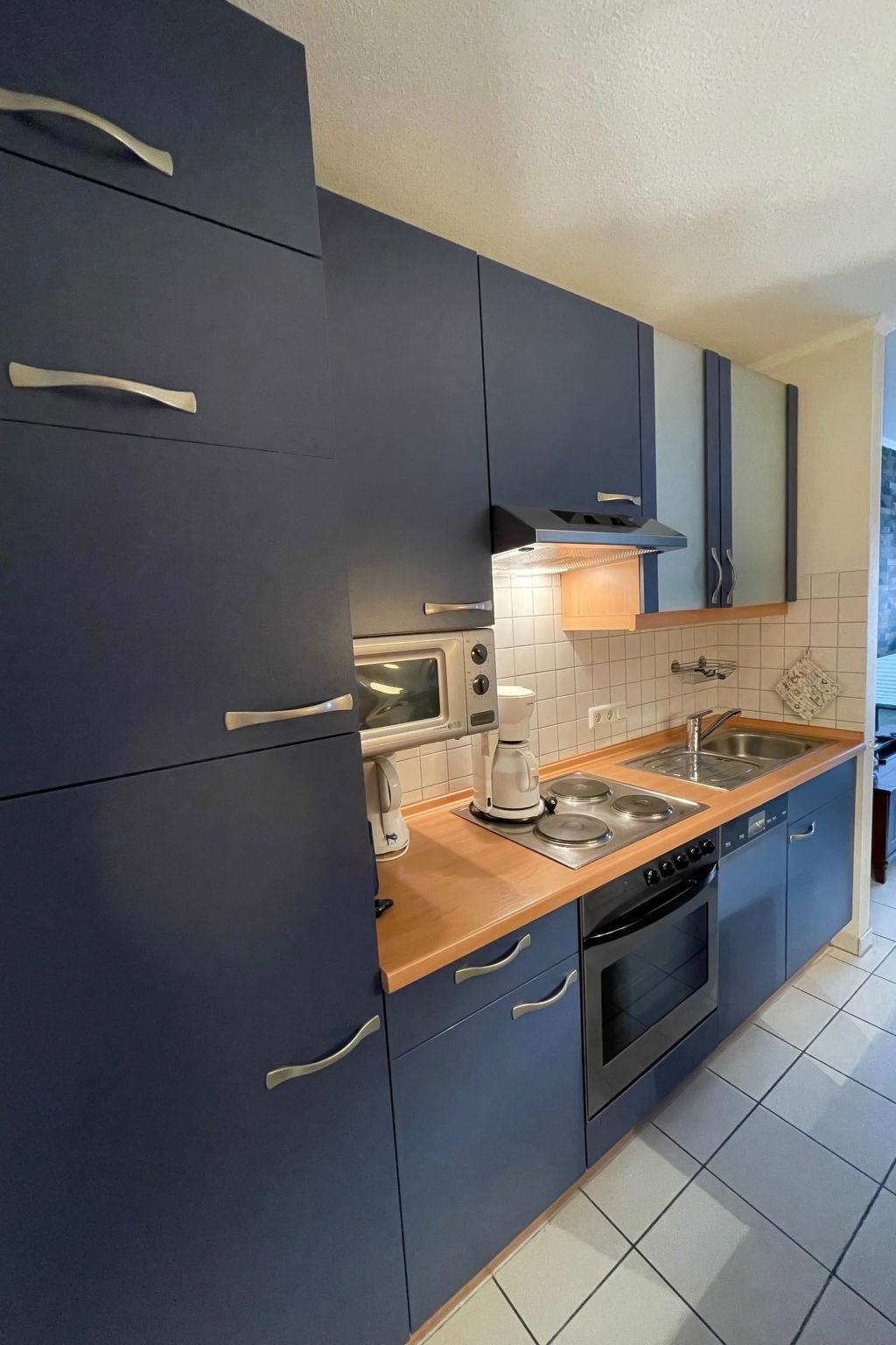 "Witthuus-Baltrum", 2-room apartment 42 m2, on the ground floor. Comfortable and stylish furnishings: living/dining room 20 m2 with satellite TV (flat screen), DVD. Exit to the terrace. 1 room 11 m2 with 1 double bed (2 x 90 cm, length 200 cm). Kitchenette (oven, dishwasher, 4 ceramic glass hob hotplates, toaster, kettle, microwave, electric coffee machine). Shower/WC. Underfloor heating. Terrace 11 m2, south-west facing position. Terrace furniture, barbecue. Facilities: children's high chair. Internet (WiFi, free). Parking at the house. Please note: non-smokers only. Beach chair on the terrace. Garden (fenced) for shared use. In case of reservation of extra beds, 1 double sofa bed (130 cm, 200 cm long ) is available in the lounge.
