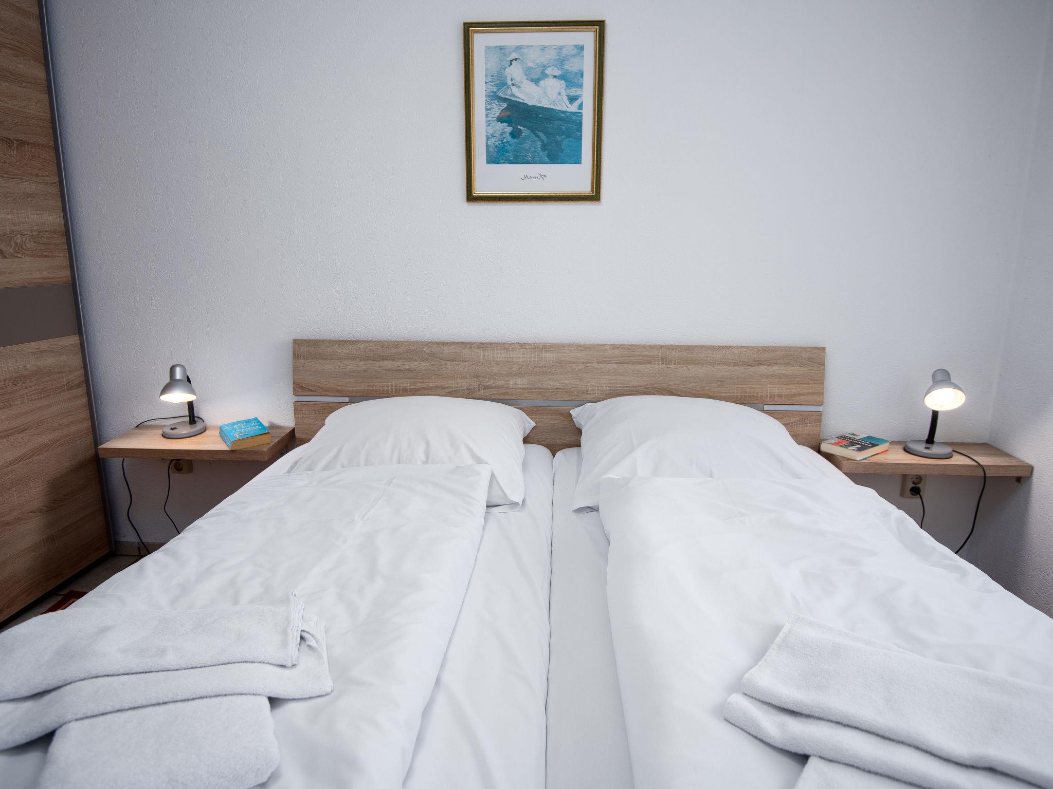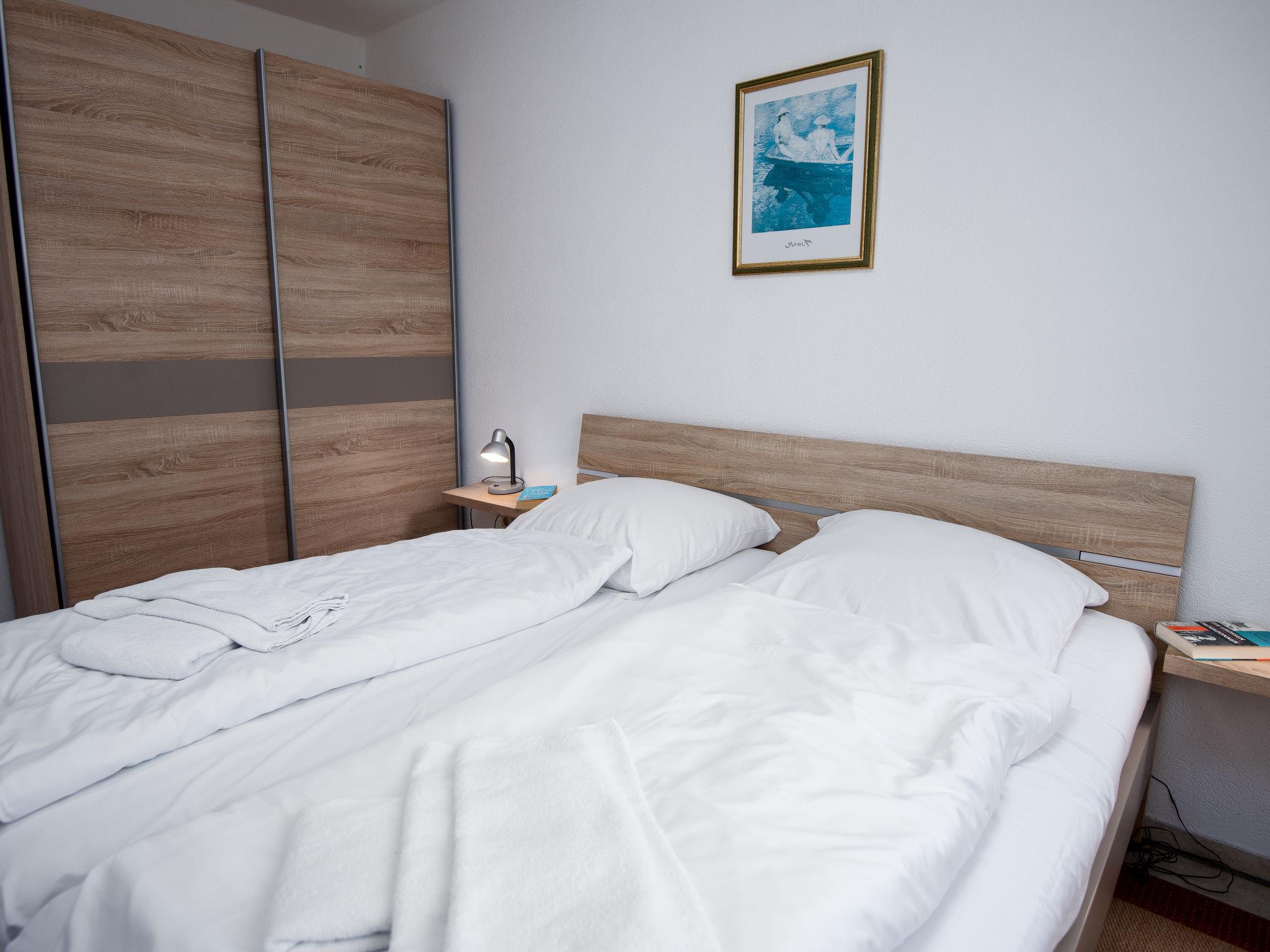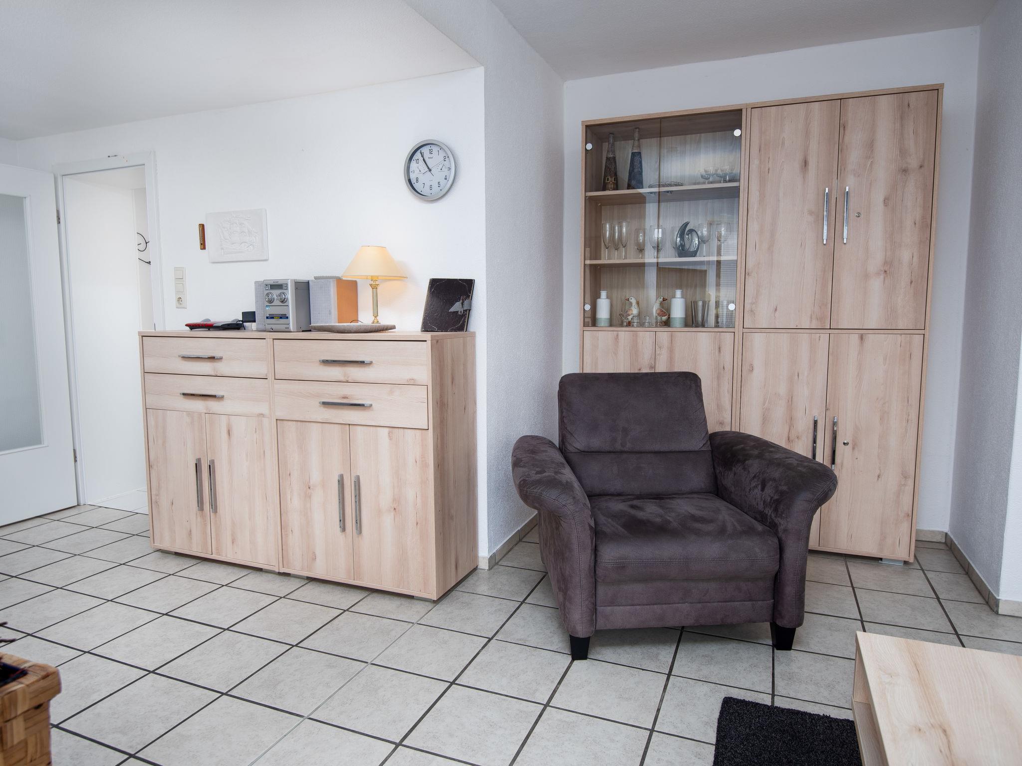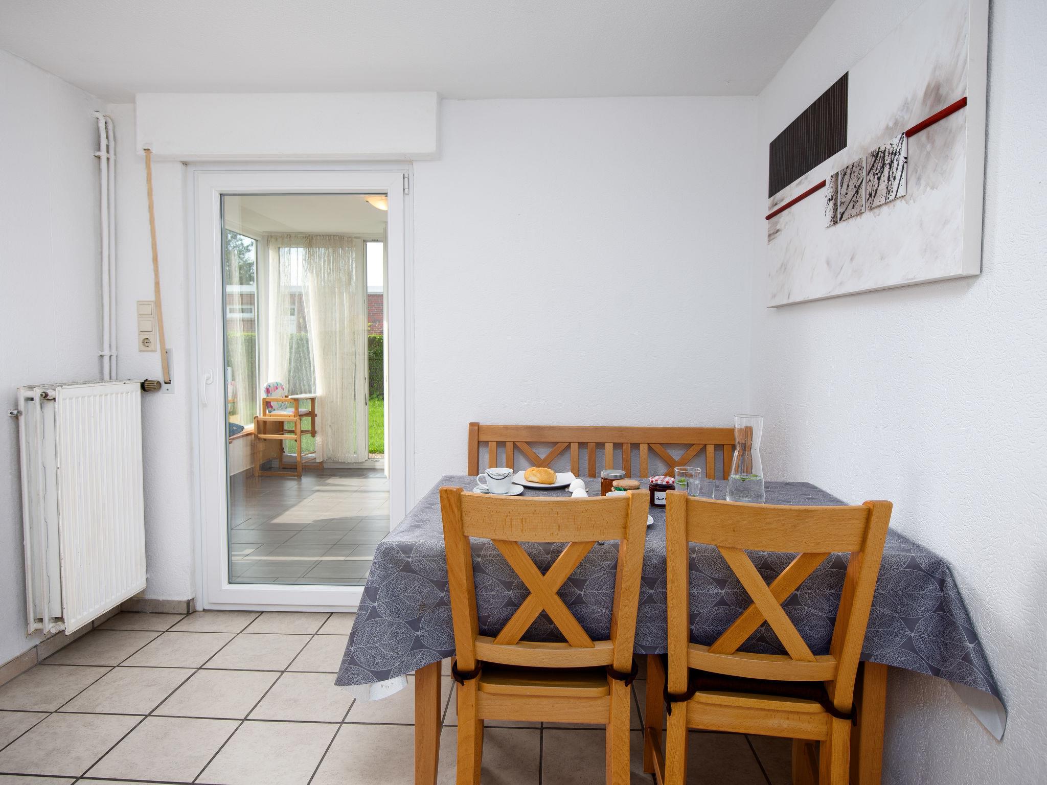 3-room terraced house 75 m2, on the ground floor. Cosy furnishings: living/dining room 27 m2 with satellite TV (flat screen), radio and CD-player. 1 room 8 m2 with 1 double bed (2 x 90 cm, length 180 cm). 1 room 6 m2 with 2 beds (90 cm, length 200 cm). Kitchen (oven, toaster, kettle, microwave, electric coffee machine). Shower/WC. Terrace 30 m2. Terrace furniture. Facilities: washing machine, children's high chair (extra), hair dryer. Internet (WiFi, free). Please note: non-smoking house. Smoke alarm. The wardrobe for the twin room is in the hall. DE1A248