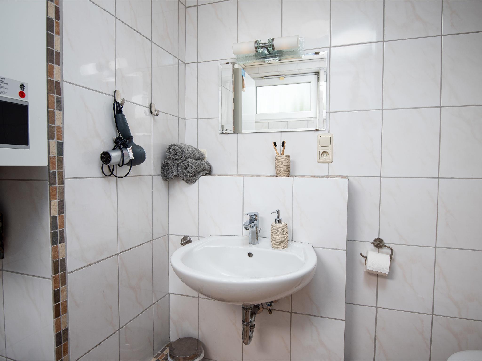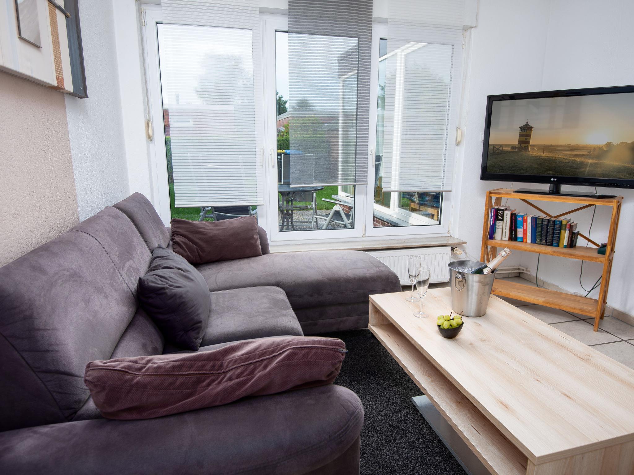Terraced house "Seefalke". In a quiet position, 300 m from the sea, 400 m from the beach, in a cul-de-sac. Private: garden (fenced). In the house: central heating system. Parking at the house. Supermarket 1.4 km, restaurant 200 m, bakery 200 m, café, bus stop 500 m, railway station "Norddeich" 1.6 km, ferry 1.6 km, sandy beach 700 m, outdoor swimming pool 14 km, indoor swimming pool 350 m. Golf course (18 hole) 8 km, surf school 700 m, tennis 2.4 km.