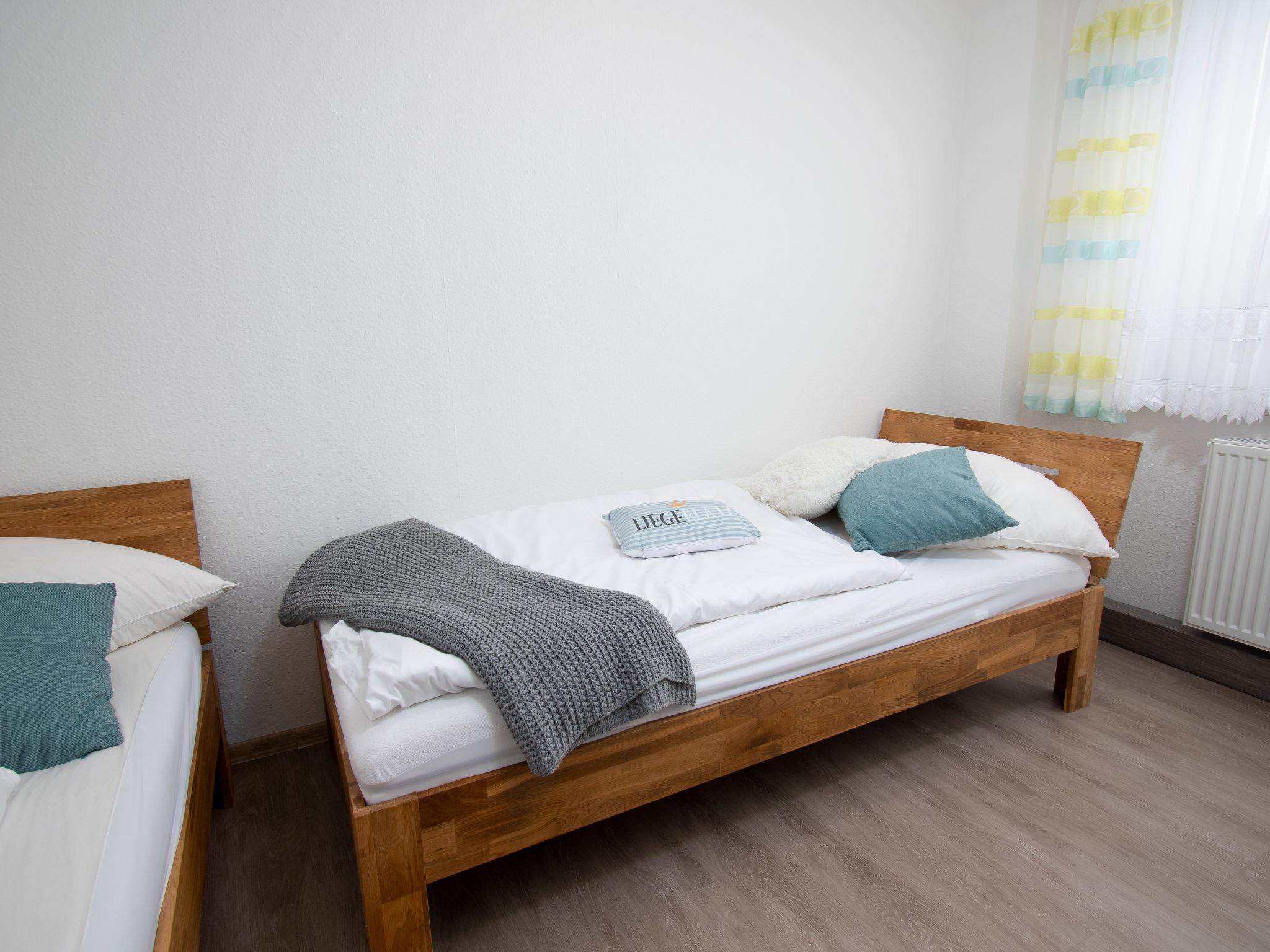 3-room bungalow 68 m2, on the ground floor. Spacious, cosy furnishings: living/dining room 25 m2 with satellite TV (flat screen), hi-fi system and DVD. Exit to the terrace. 1 room 13 m2 with 1 double bed (2 x 90 cm, length 200 cm), satellite TV. 1 room 9 m2 with 2 beds. Open kitchen (dishwasher, 4 ceramic glass hob hotplates, toaster, kettle, microwave, electric coffee machine) with dining table. Shower/WC. Terrace. Terrace furniture. Facilities: children's high chair (extra). Internet (WiFi, free). Please note: non-smoking house. Smoke alarm.