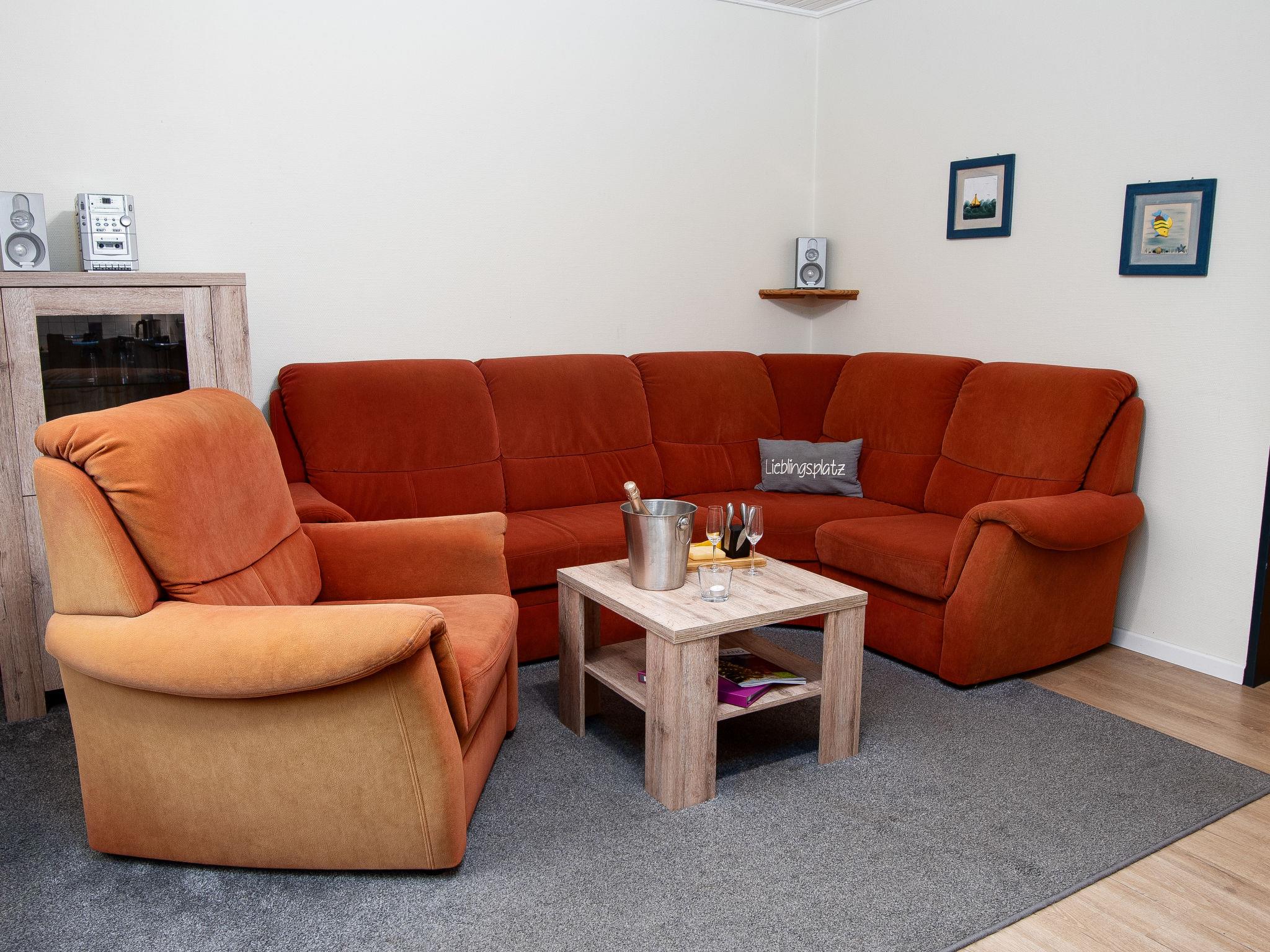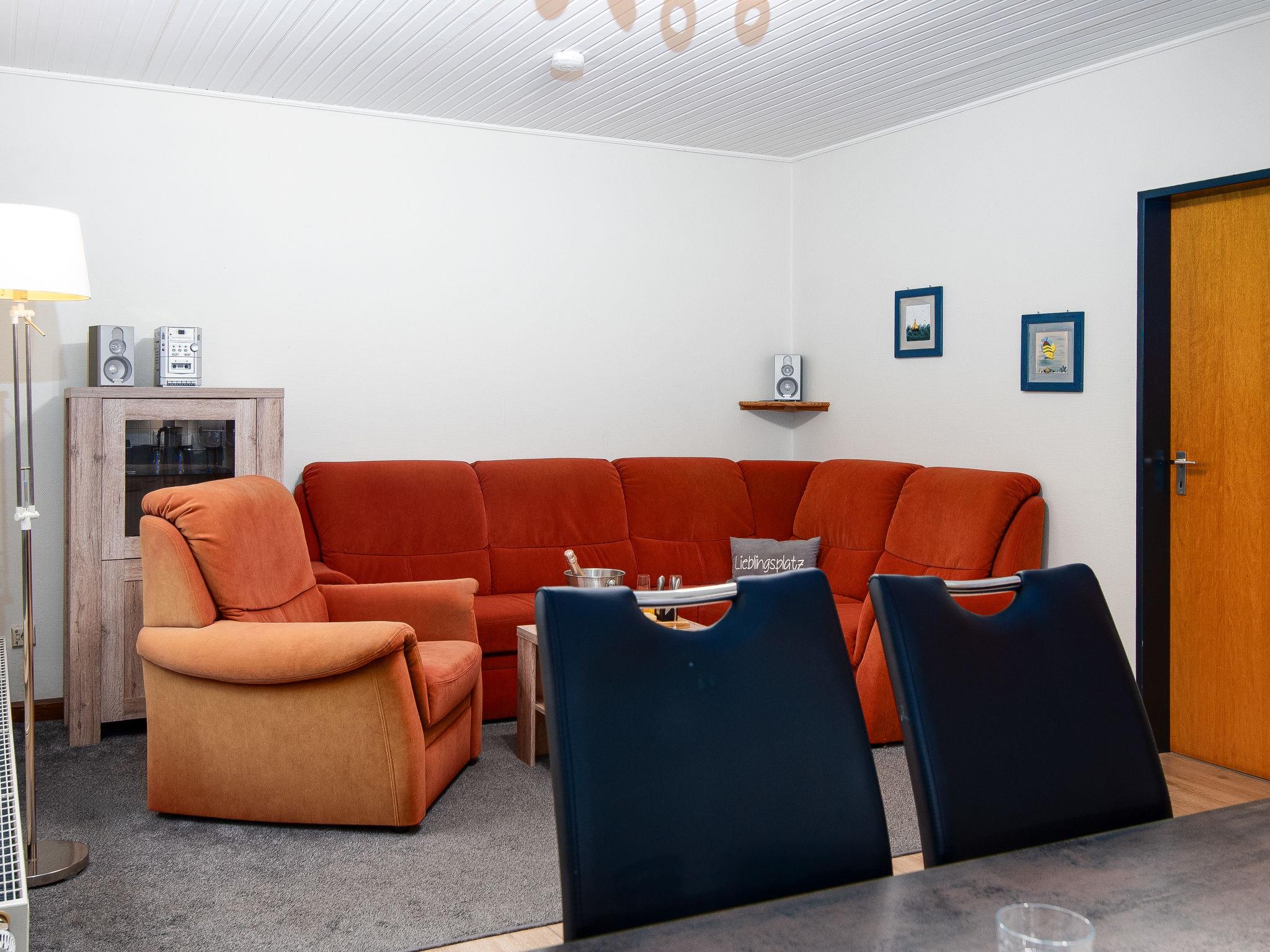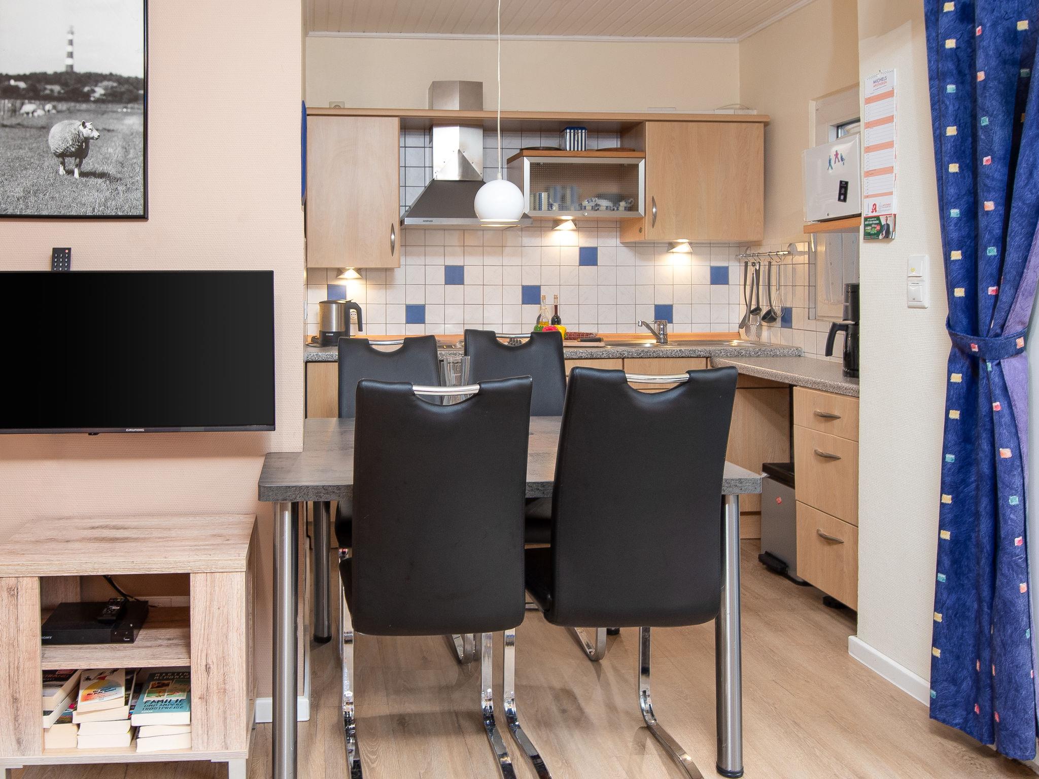 "Kiel", 4-room terraced house 55 m2, on the ground floor. Cosy furnishings: living/dining room with satellite TV (flat screen), hi-fi system and DVD. Exit to the terrace. 1 room with 1 double bed (2 x 90 cm, length 200 cm). 1 room with 1 x 2 bunk beds (90 cm, length 200 cm). 1 small room with 1 bed (90 cm, length 200 cm). Kitchenette (4 hot plates, dishwasher, toaster, kettle, electric coffee machine, combination microwave). Shower/WC. Terrace 12 m2, lawn. Terrace furniture. Facilities: children's high chair (extra). Please note: non-smokers only. Maximum 1 small pet/ dog allowed. Smoke alarm.