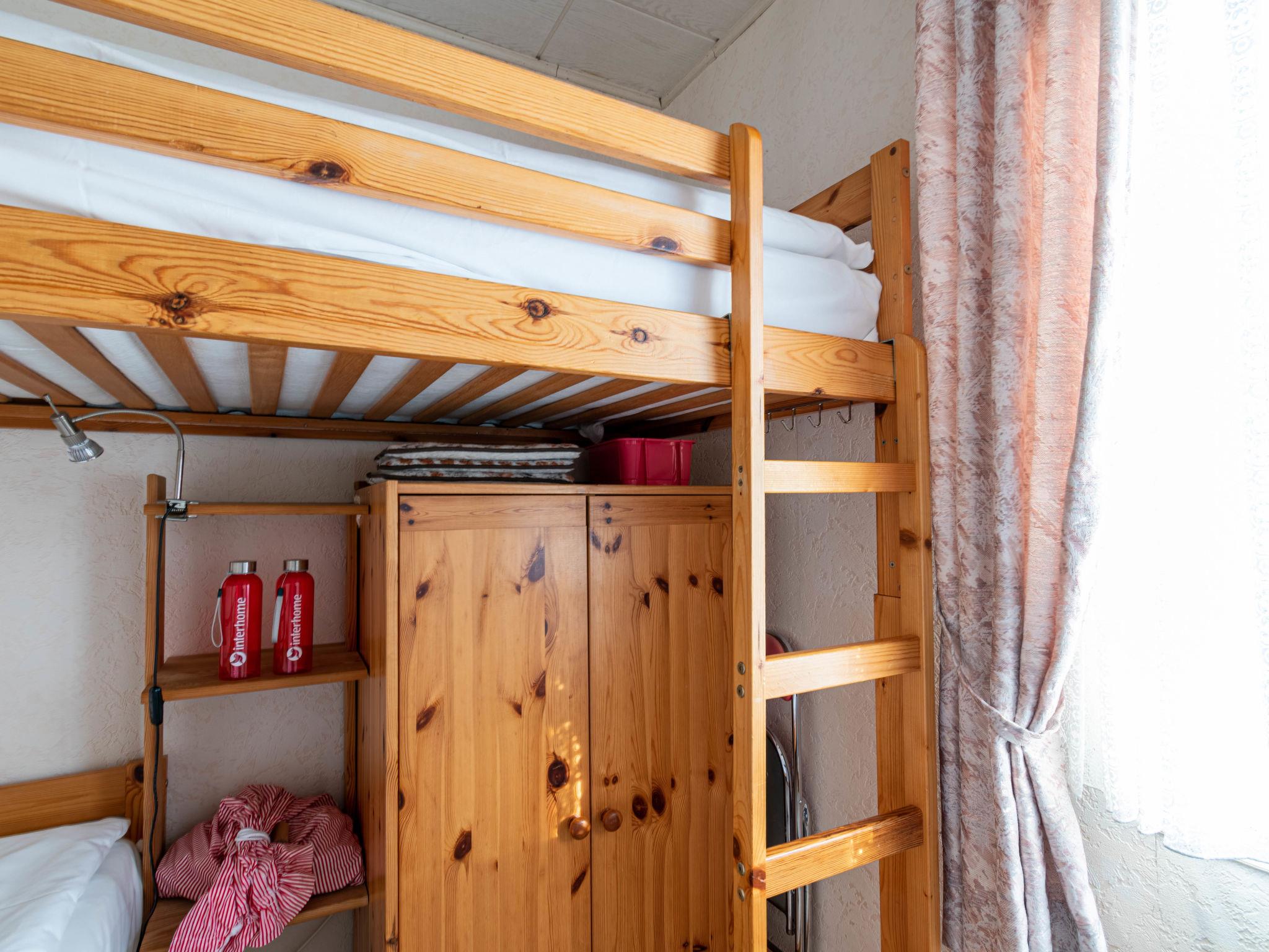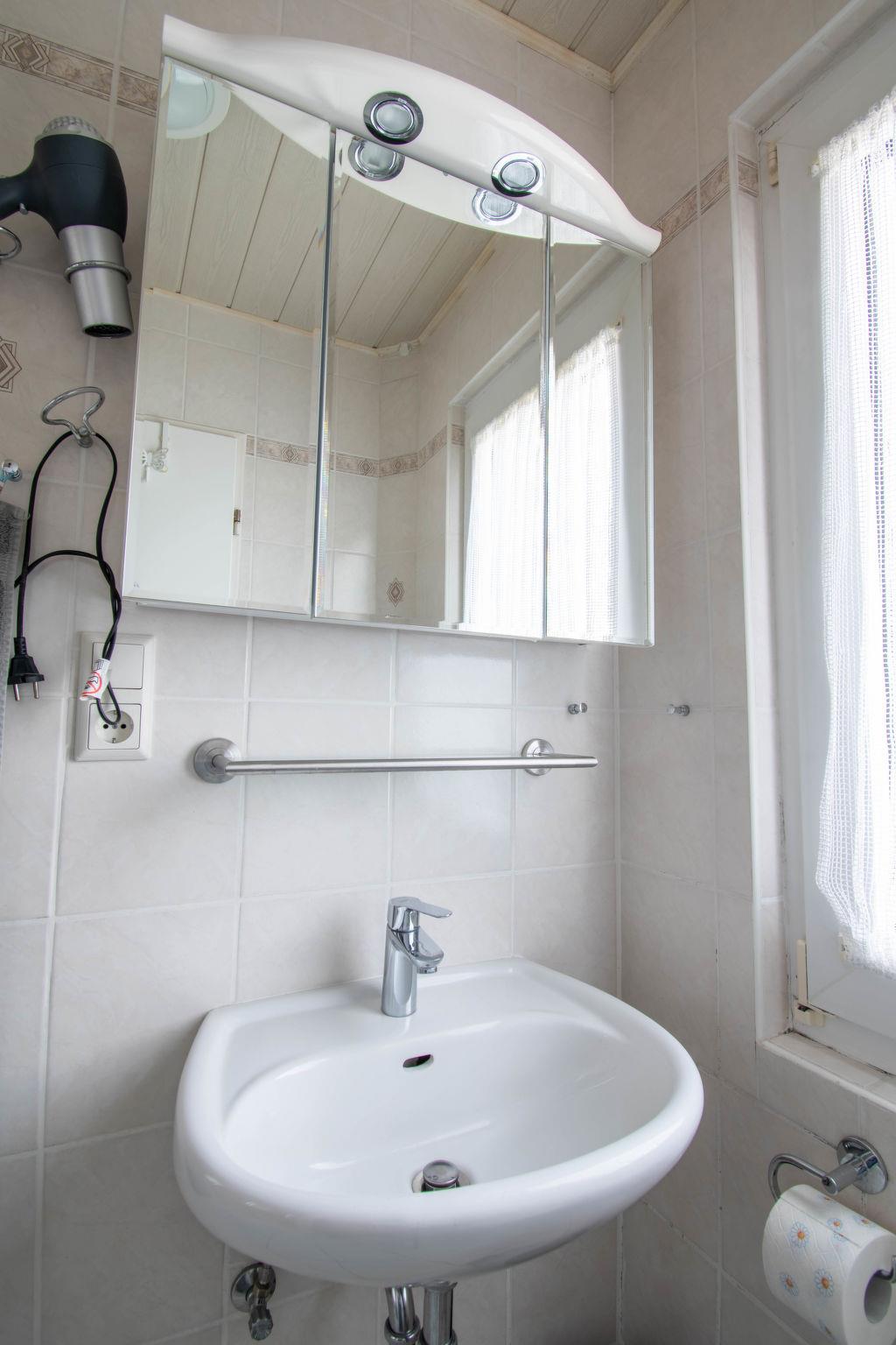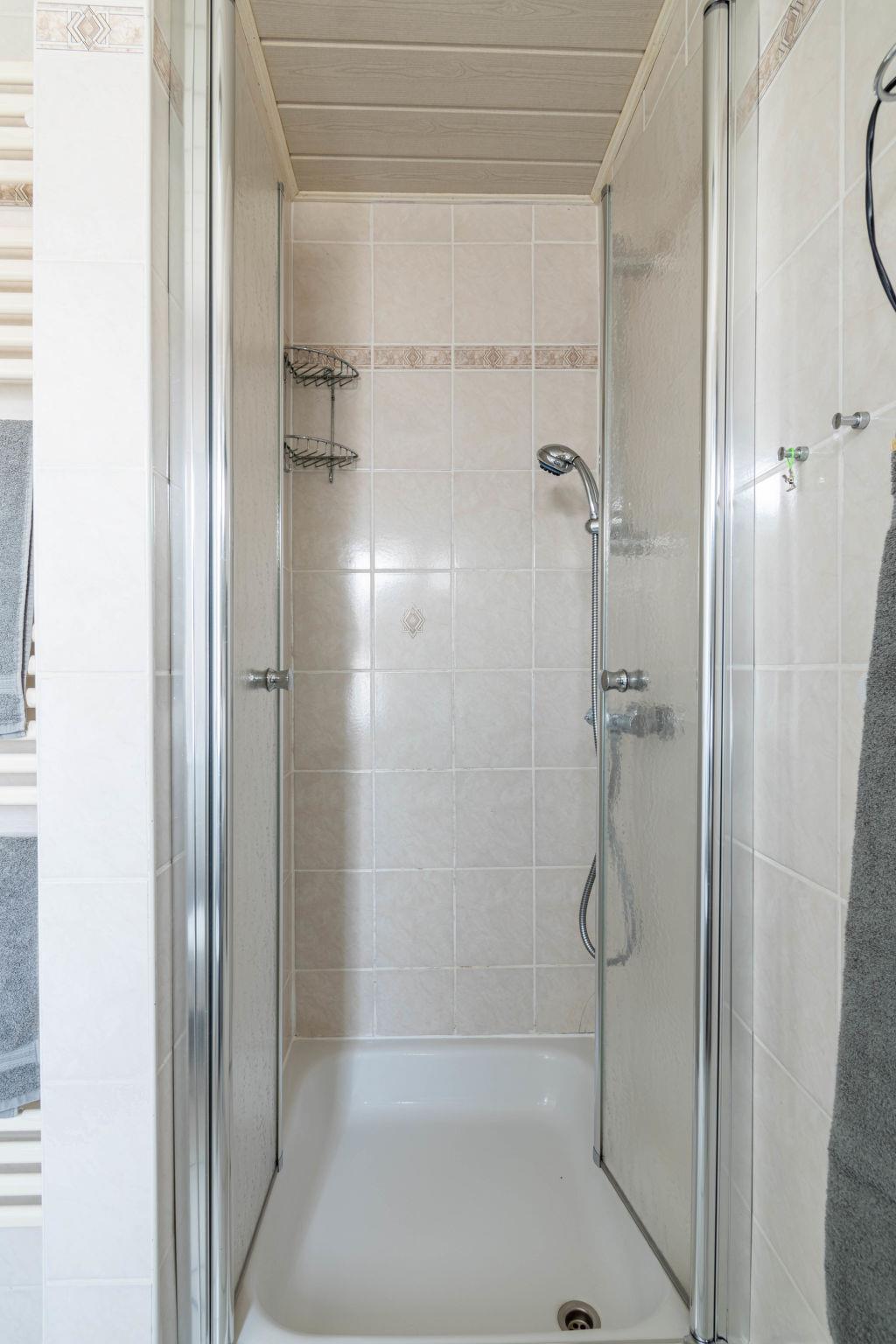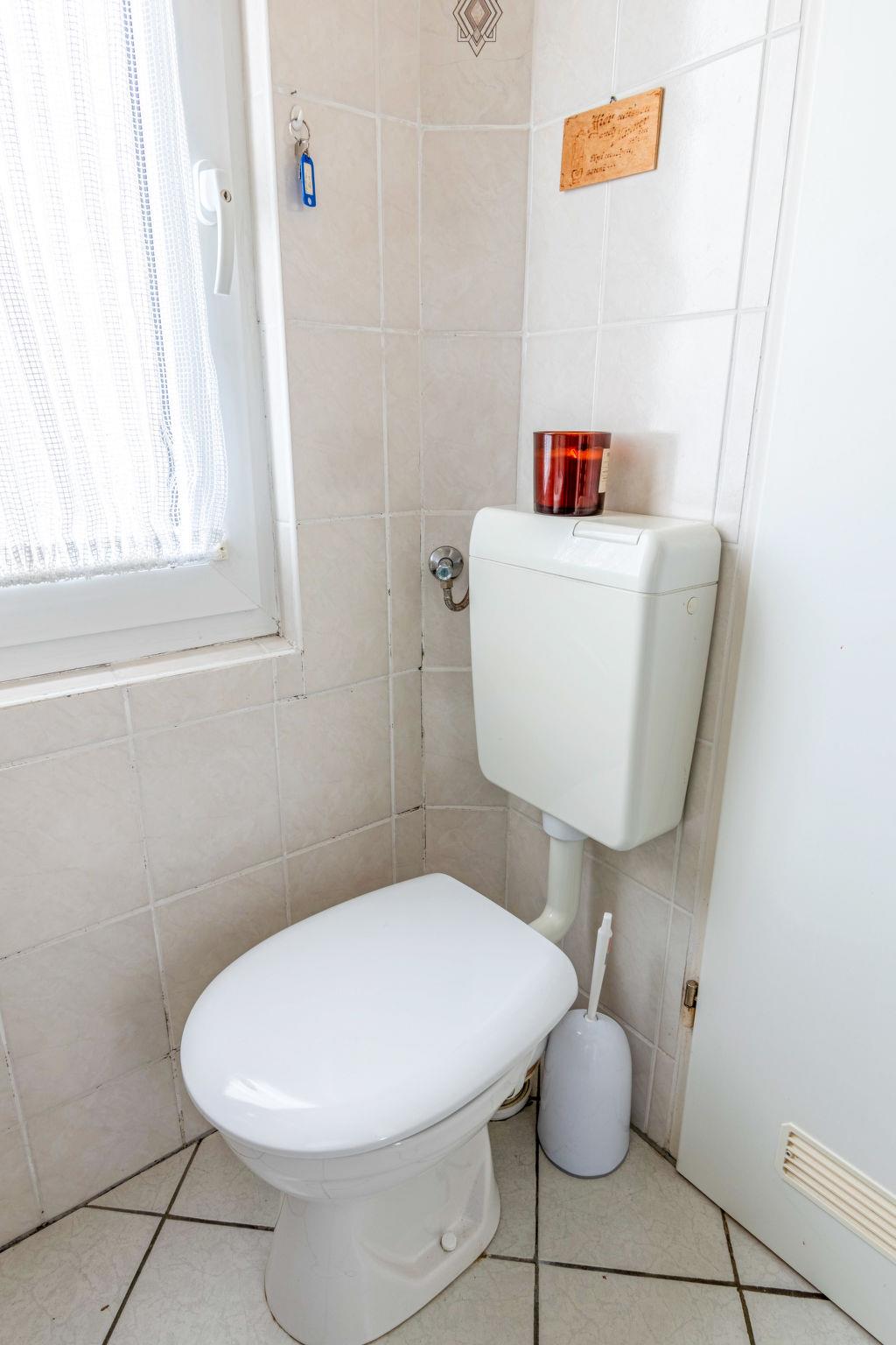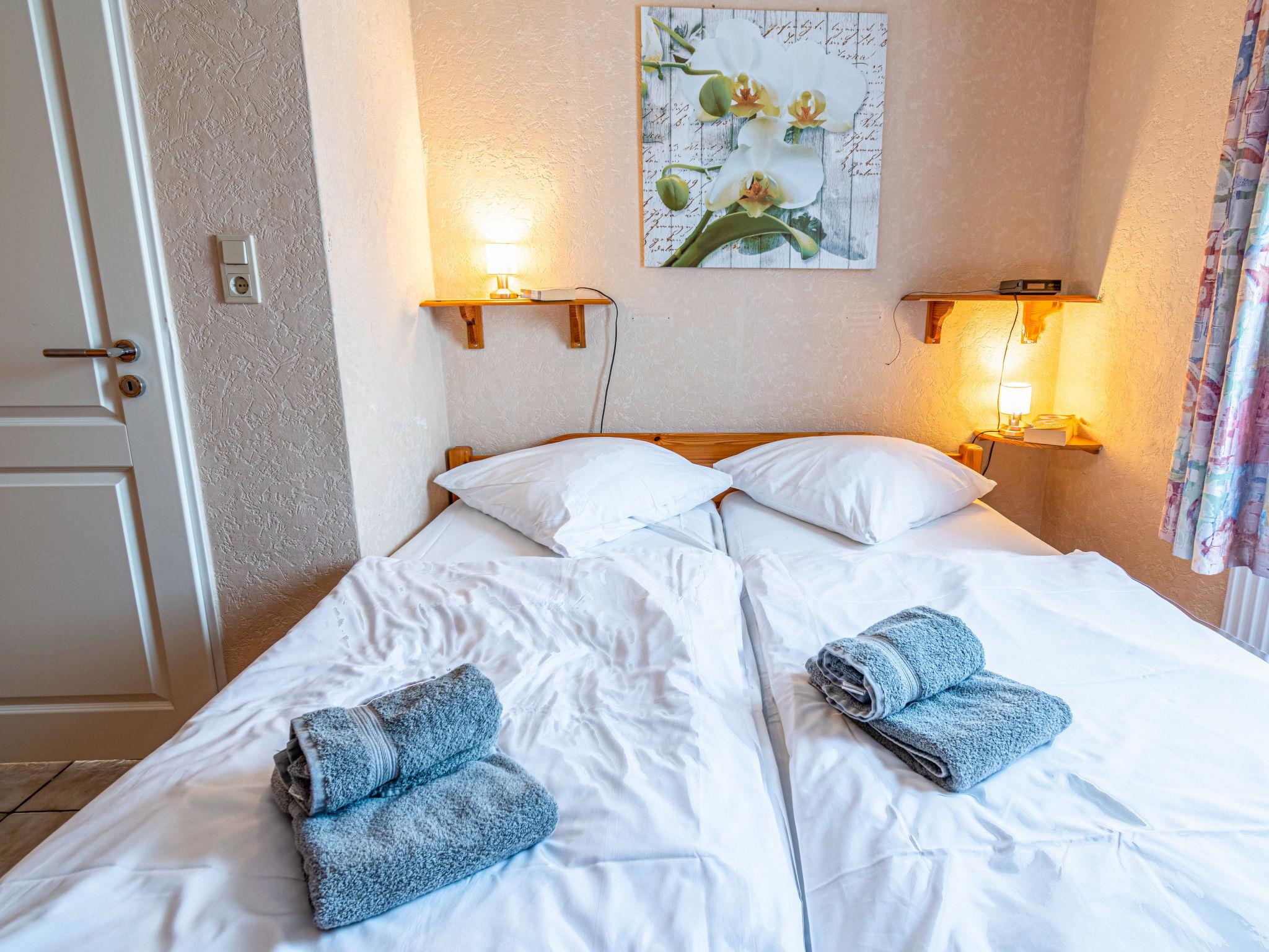 3-room terraced house 48 m2, on the ground floor. Cosy furnishings: living/dining room with satellite TV (flat screen), radio. Exit to the terrace. 1 room with 1 double bed (2 x 90 cm, length 200 cm). 1 room with 1 x 2 bunk beds (90 cm, length 200 cm). Kitchenette (oven, 4 ceramic glass hob hotplates, toaster, kettle, microwave, electric coffee machine). Shower/WC. Terrace furniture. Facilities: children's high chair (extra), hair dryer. Please note: non-smoking house. Smoke alarm.
