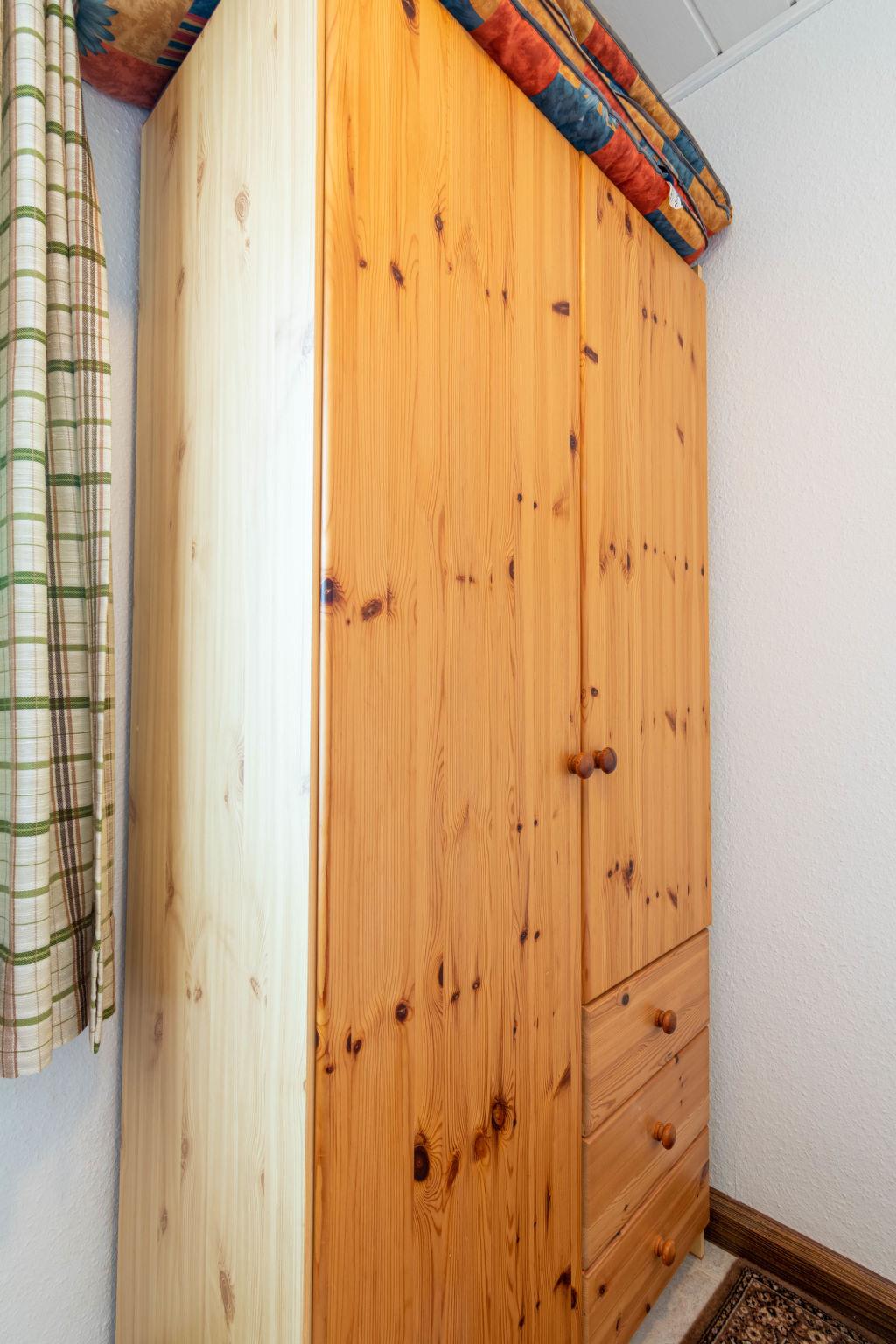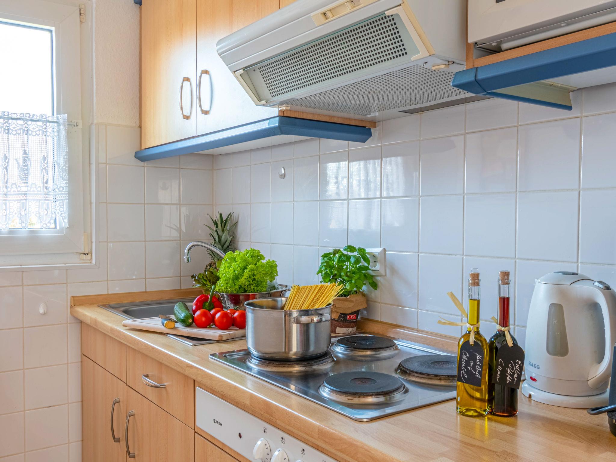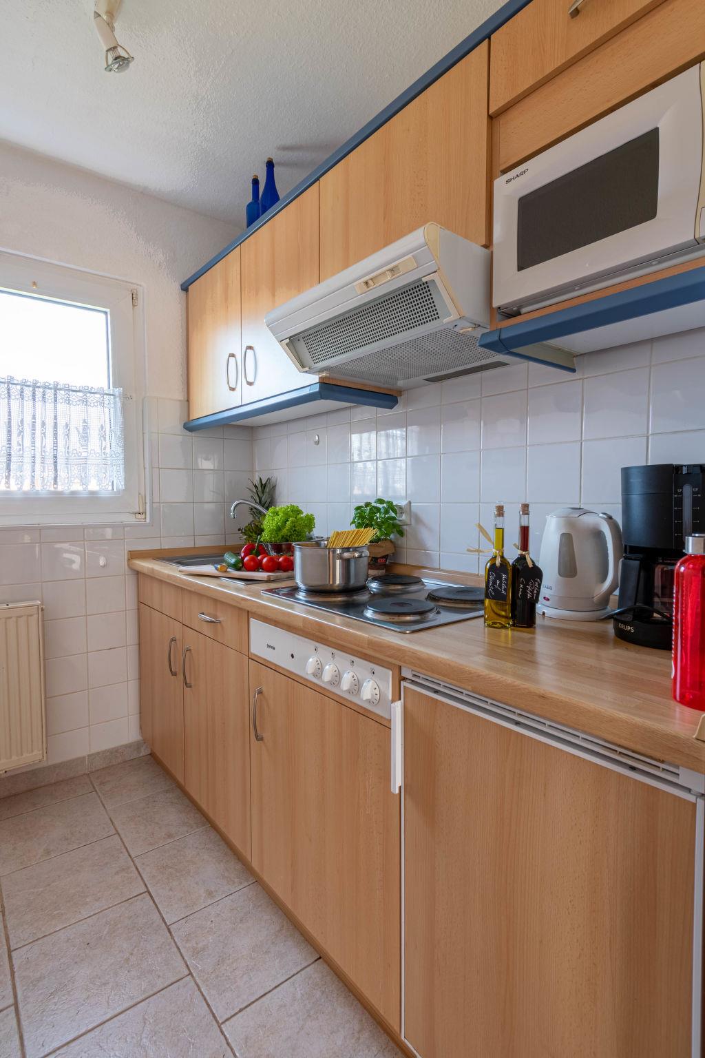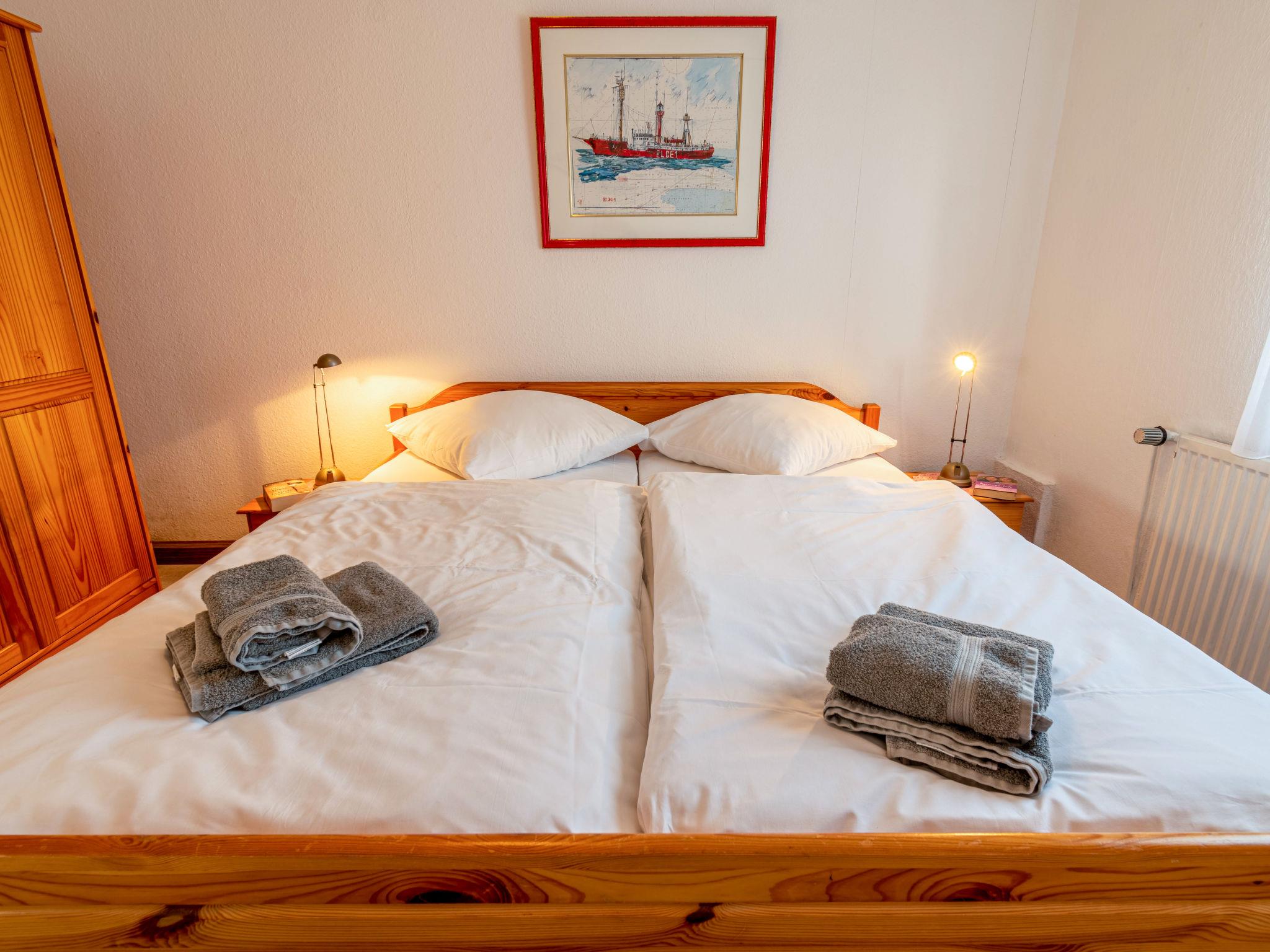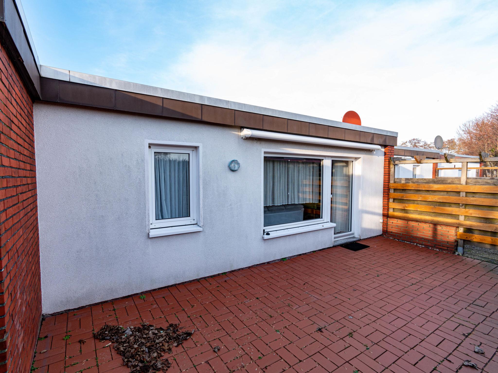 3-room terraced house 45 m2, on the ground floor. Cosy furnishings: living/dining room with satellite TV (flat screen), radio. Exit to the terrace. 1 room with 1 double bed (2 x 90 cm, length 200 cm). 1 small room with 1 bed (90 cm, length 200 cm). Small kitchen (4 hot plates, toaster, kettle, microwave, electric coffee machine). Shower/WC. Terrace furniture. Please note: non-smoking house. Smoke alarm.