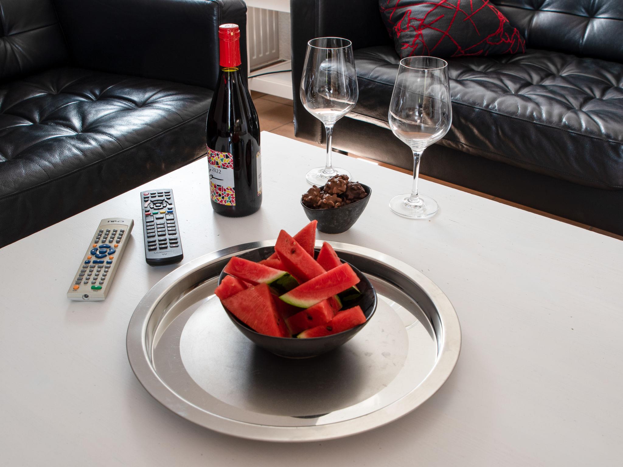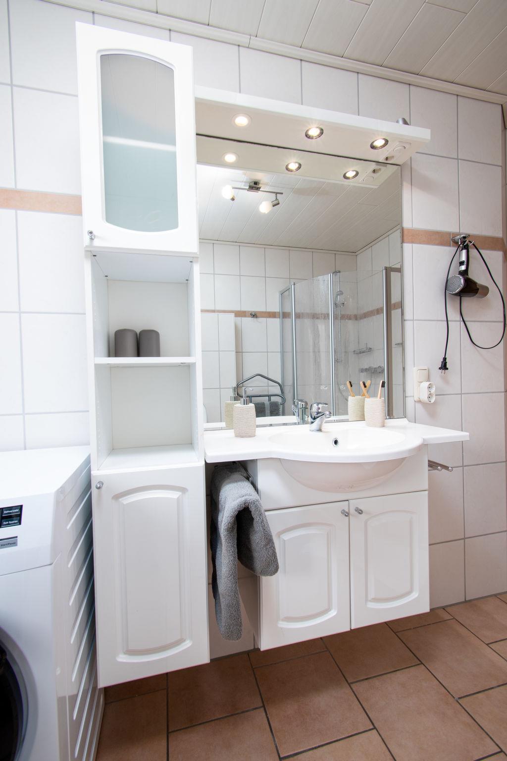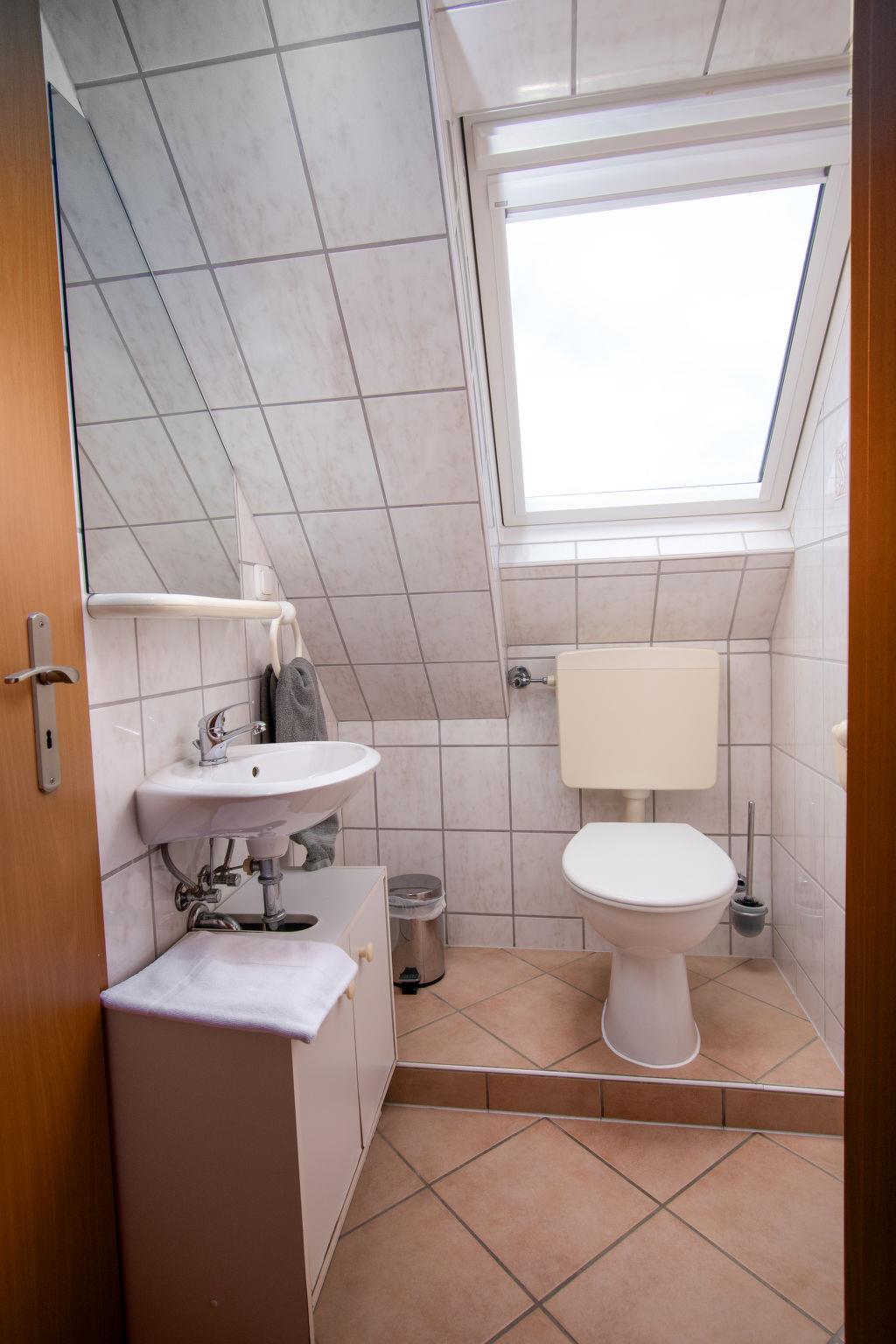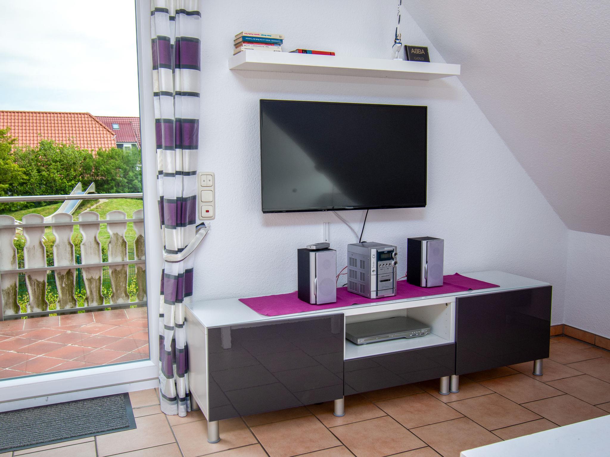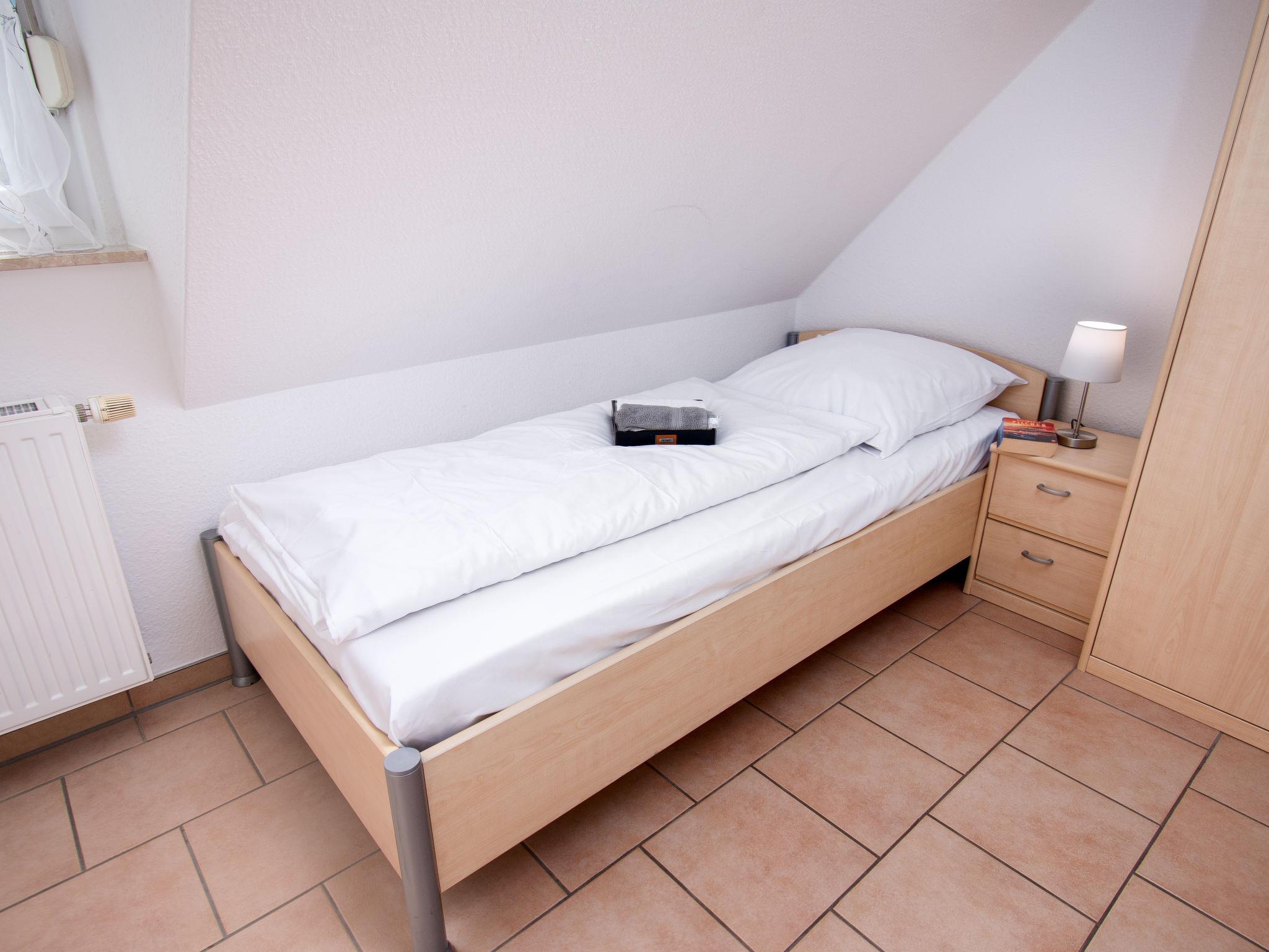 4-room apartment 78 m2 on 2 levels, on the upper floor. Beautiful and cosy furnishings: living/dining room with satellite TV (flat screen), radio, CD-player, DVD and electric shutters. Exit to the balcony. 1 room with 1 double bed (2 x 90 cm, length 200 cm). 1 room with 2 beds (90 cm, length 200 cm). Kitchenette (oven, dishwasher, 4 ceramic glass hob hotplates, toaster, kettle, electric coffee machine). Shower/WC. Top floor: 1 room with sloping ceilings with 2 beds (90 cm, length 200 cm). Sep. WC. Balcony furniture. Facilities: washing machine, children's high chair (extra). Internet (WiFi, free). Please note: non-smokers only. Smoke alarm.