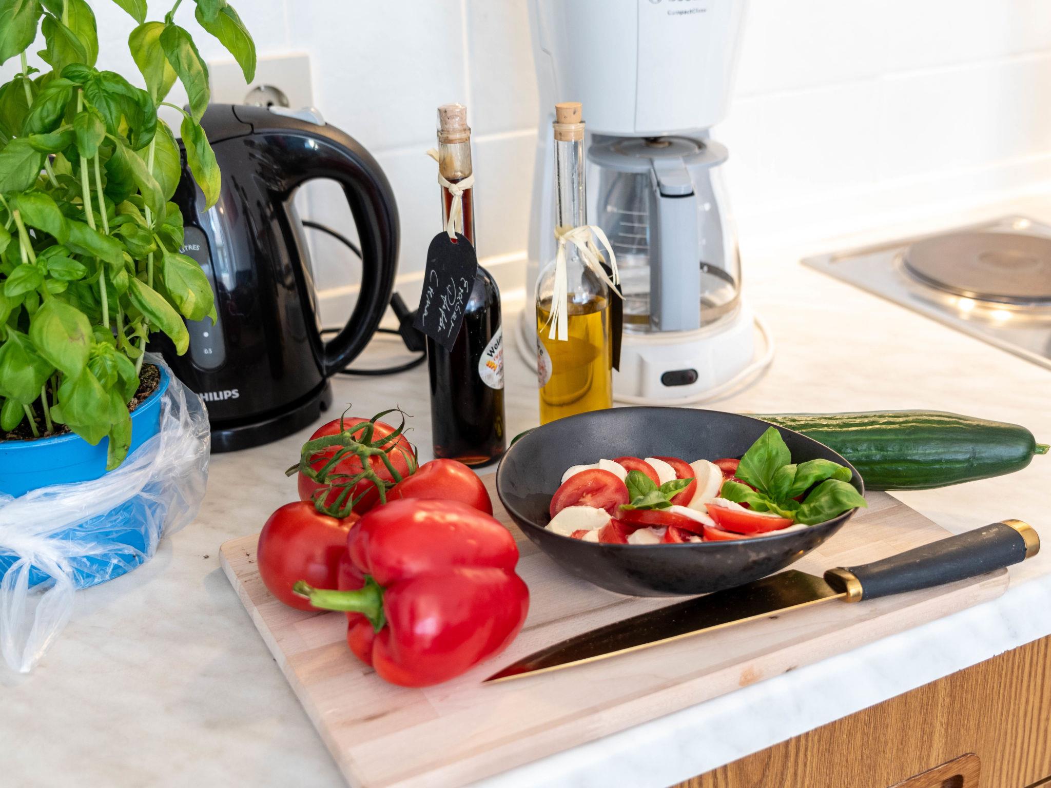 2-room apartment 40 m2 on 1st floor. Practical and cosy furnishings: living/dining room 18 m2 with 1 double sofabed (160 cm, length 195 cm), cable TV and CD-player. Exit to the balcony. 1 room 10 m2 with 2 beds (90 cm, length 200 cm). Kitchenette (2 hot plates, toaster, kettle, microwave, electric coffee machine). Shower/WC. Balcony 8 m2. Balcony furniture. Facilities: children's high chair. Please note: non-smokers only.
