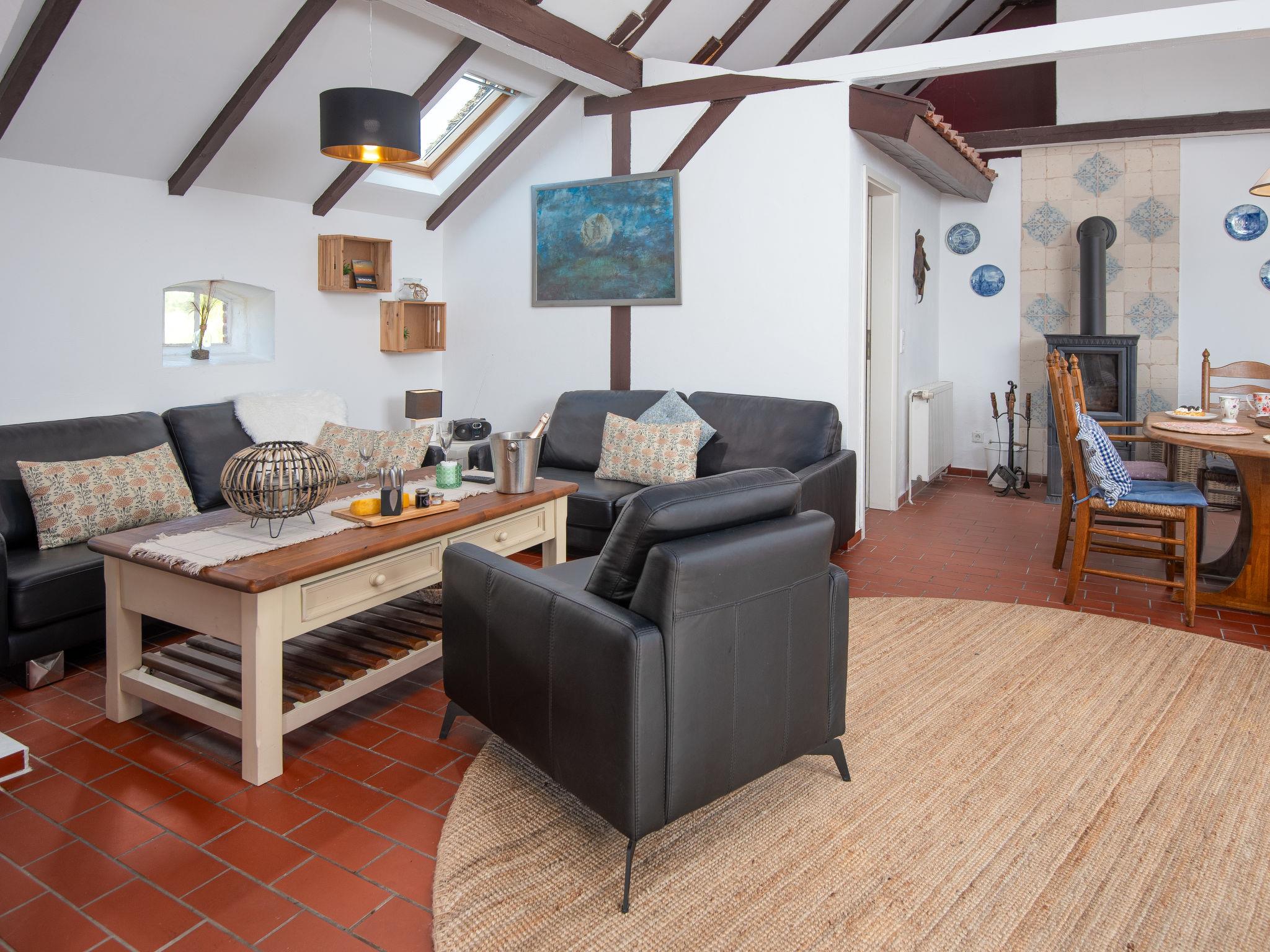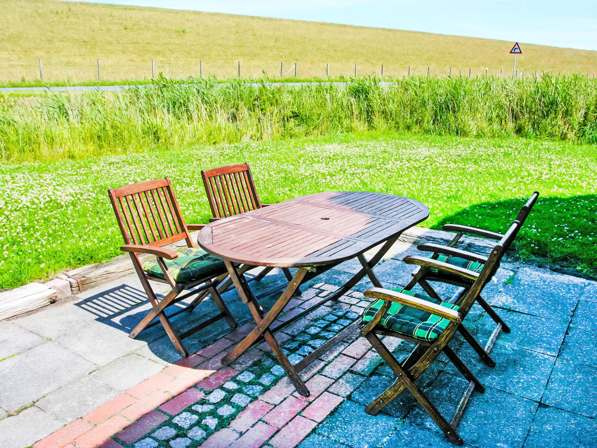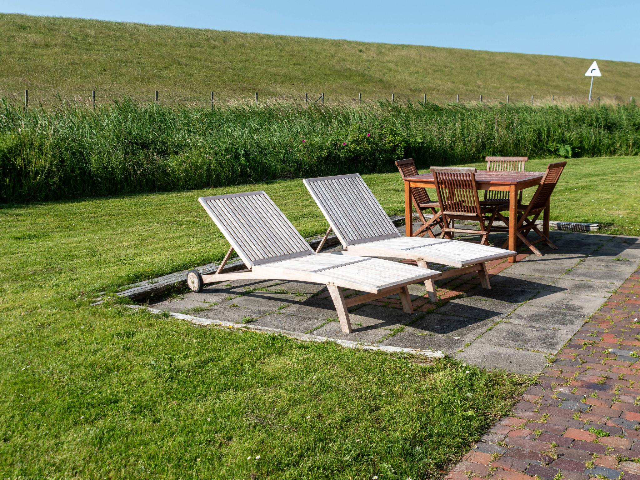 3-room semi-detached house 80 m2, on the ground floor. Cosy furnishings: open large living/dining room 45 m2 with satellite TV (flat screen), radio and CD-player. 1 room 9 m2 with 1 french bed. 1 room 10 m2 with 2 beds. Kitchenette (oven, toaster, kettle, electric coffee machine). Shower/WC. Terrace. Terrace furniture, box-room. Facilities: washing machine, children's high chair (extra), hair dryer. Internet (WiFi, free). Please note: non-smoking house. Maximum 1 pet/ dog allowed. Smoke alarm. Without dropped ceiling. The original exposed beams were lovingly restored. Nice view of the countryside and the North Sea dyke.