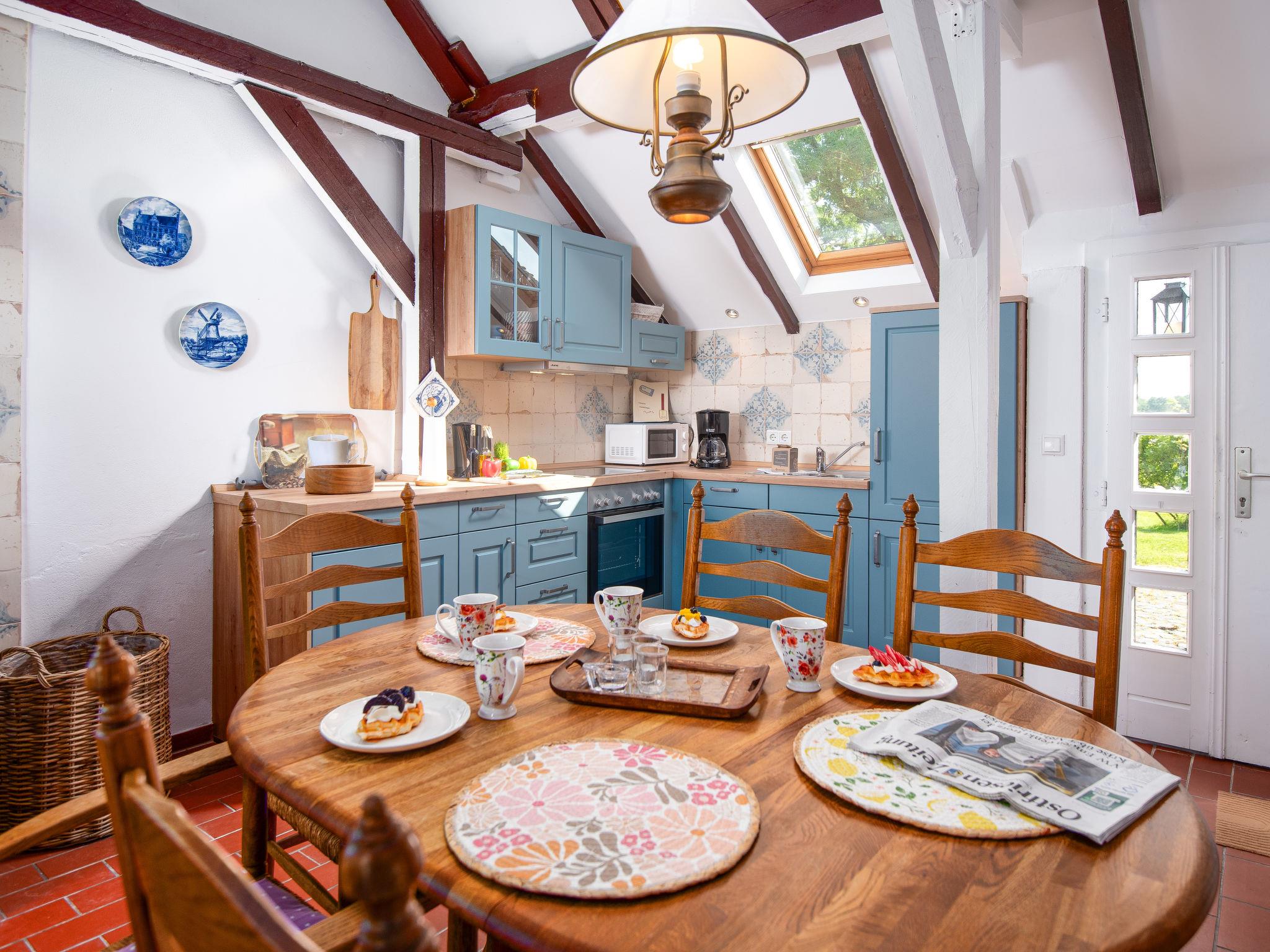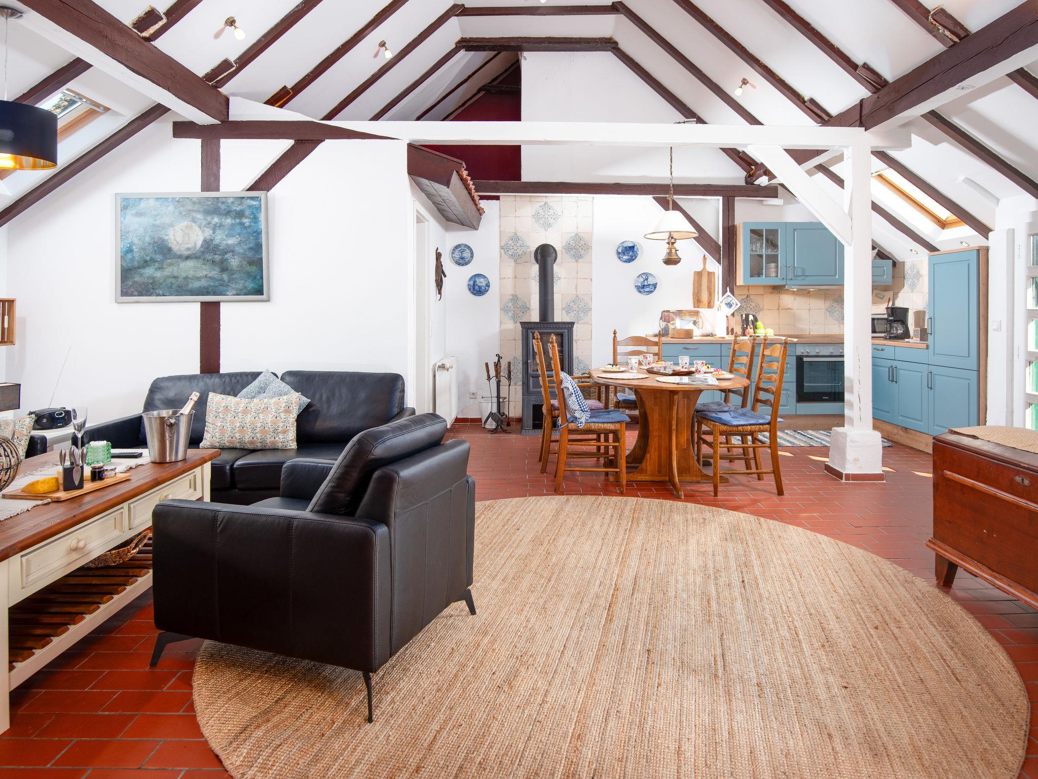 Rustic, historical semi-detached house "Itzendorfer Rott", built in 1834, surrounded by meadows and fields. On the outskirts, 2.5 km from the centre, in a quiet position, 50 m from the sea, 2.5 km from the beach, in the countryside. In the house: central heating system. Parking at the house. Supermarket 3.5 km, restaurant 500 m, bakery 2.5 km, café 100 m, bus stop "Itzendorf Deichstraße" 450 m, railway station "Norddeich Mole" 3.5 km, ferry 3.5 km, sandy beach 2.5 km, outdoor swimming pool 14 km, indoor swimming pool 2.5 km. Golf course (18 hole) 8 km, surf school 2.5 km, tennis 4 km. The holiday house is a rustic, partly thatched farmhouse (under a preservation order) .