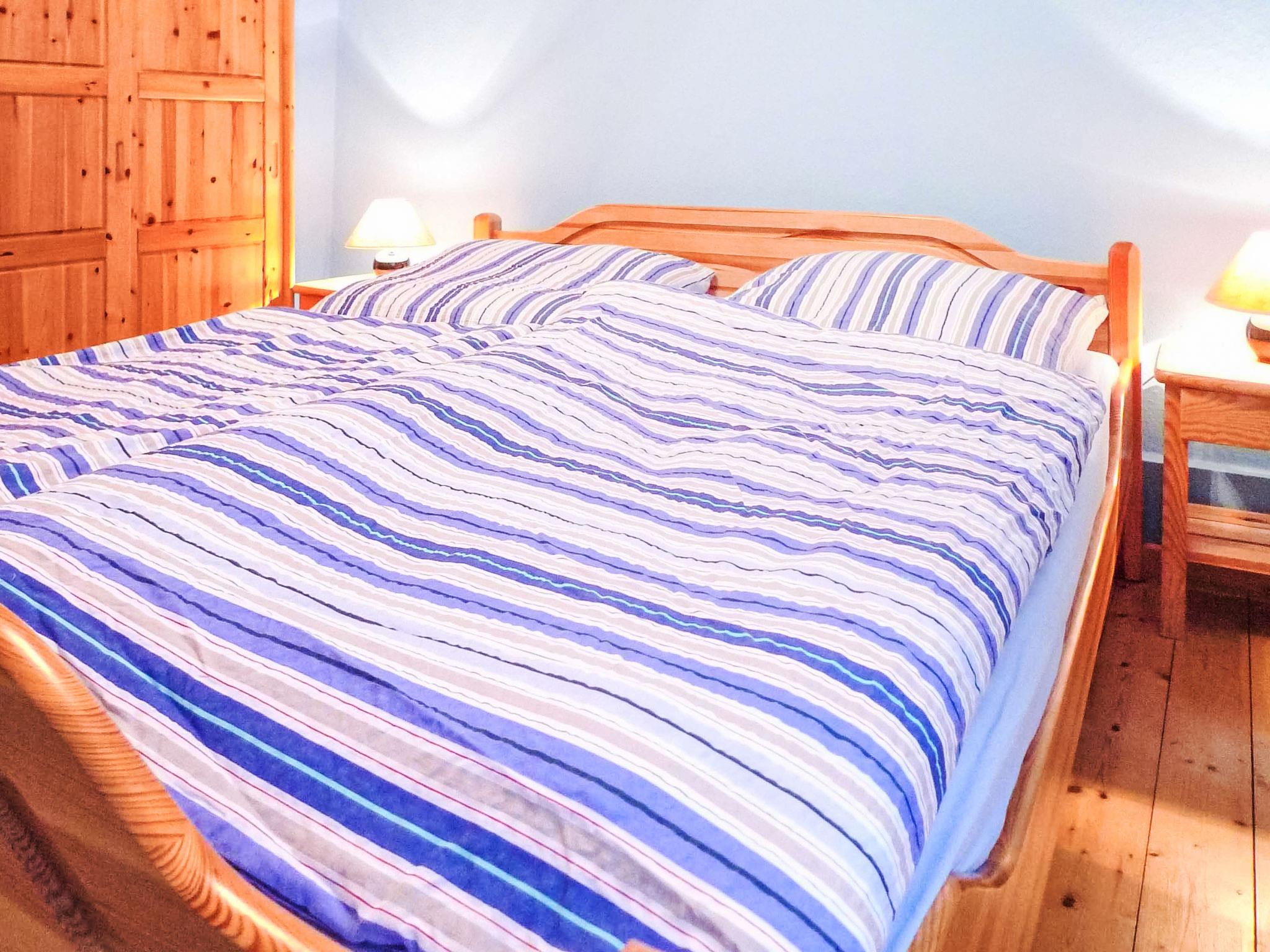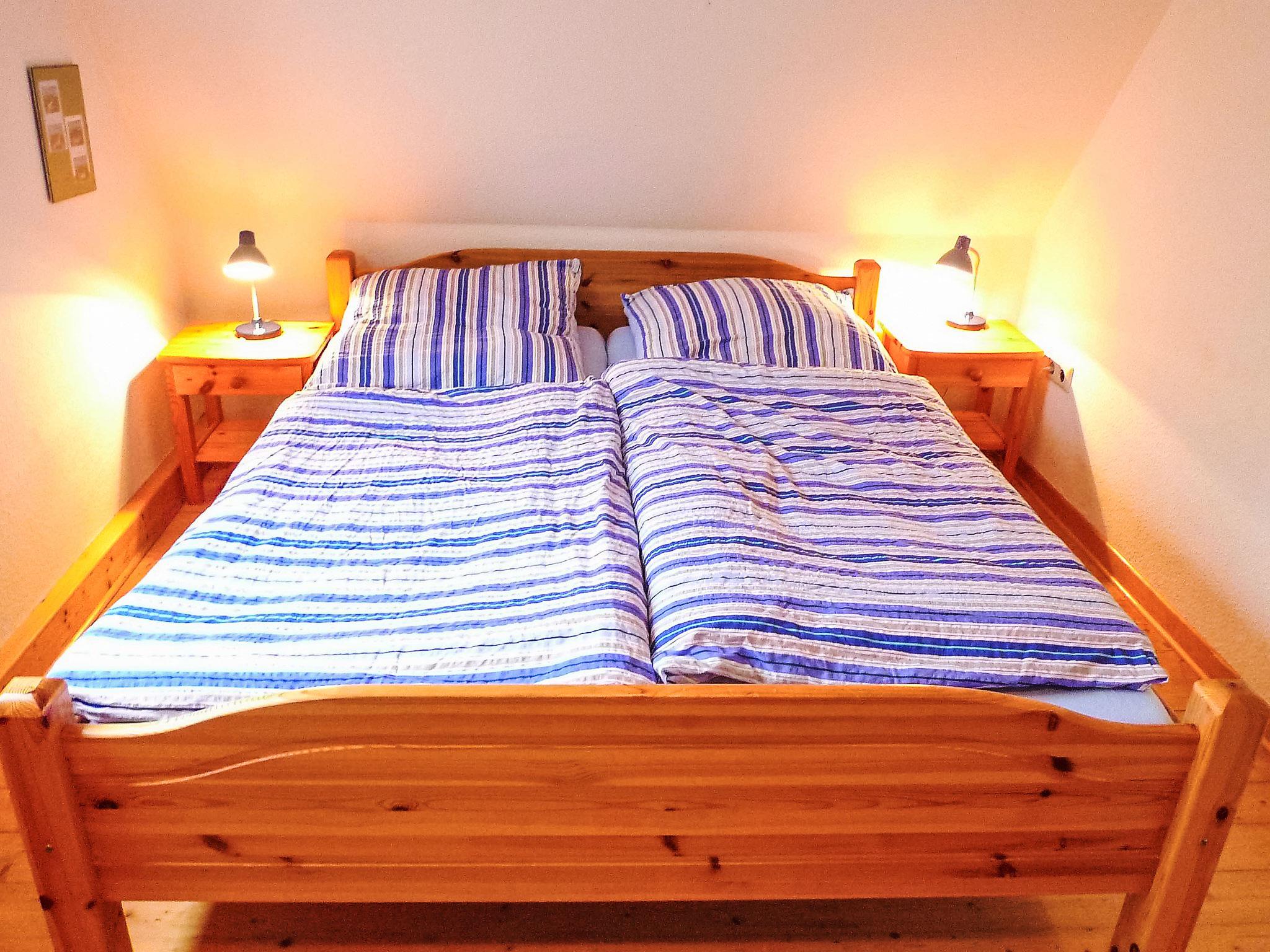 4-room house 110 m2 on 2 levels, on the ground floor. Simple and practical furnishings: living/dining room 32 m2 with satellite TV, hi-fi system and DVD. Exit to the terrace. 1 room 10 m2 with 1 double bed (2 x 80 cm, length 200 cm). Kitchen 8 m2 (oven, dishwasher, 4 ceramic glass hob hotplates, microwave, electric coffee machine) with dining table. Bathroom, sep. WC. Upper floor: 1 room 15 m2, with sloping ceilings with 2 beds (90 cm, length 200 cm). 1 room 17 m2, with sloping ceilings with 1 double bed (2 x 80 cm, length 200 cm). Shower/WC. Wooden floors. Box-room. Facilities: washing machine, telephone. Parking. Please note: telephone for incoming calls only, non-smoking house. Smoke alarm.
