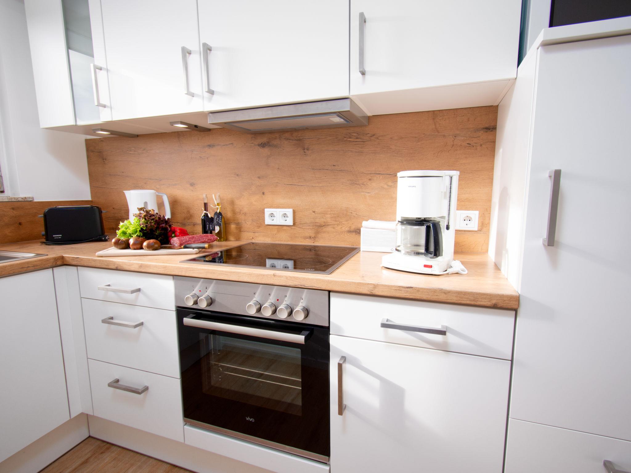 "Gezeiten", 3-room apartment 55 m2 on 1st floor. Tasteful furnishings: living/dining room 16 m2 with satellite TV (flat screen). Exit to the balcony. 1 room 8 m2 with 1 double bed (160 cm, length 200 cm), satellite TV (flat screen). 1 room 3 m2, without window with 1 bed (90 cm, length 180 cm). Kitchenette (oven, dishwasher, 4 ceramic glass hob hotplates, toaster, kettle, microwave, electric coffee machine). Shower/WC. Balcony furniture, electric barbecue. Facilities: children's high chair (extra). Internet (WiFi, free). Please note: non-smokers only. Smoke alarm.