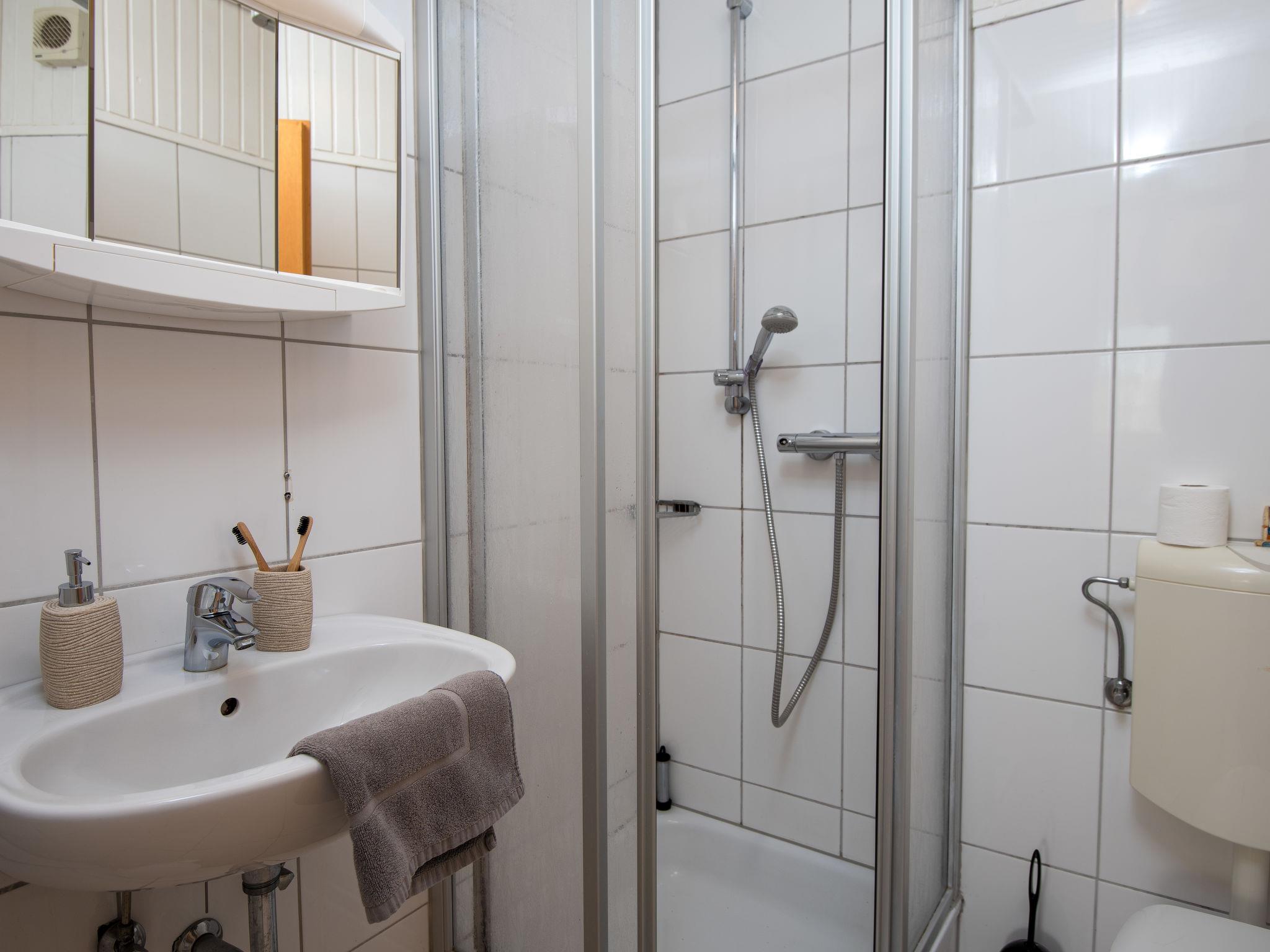 "Schwalbennest V", 1-room apartment 15 m2, on the ground floor. Very simple furnishings: living/sleeping room 10 m2 with 1 sofabed (120 cm, length 190 cm), digital TV and radio. Small kitchenette 2 m2 (2 hot plates, dishwasher, toaster, kettle, microwave, electric coffee machine). Shower/WC. Sitting area. Facilities: children's high chair (extra). Parking at 20 m. Please note: fridge without freezer, non-smokers only. Maximum 1 small pet/ dog allowed. Smoke alarm. Il divano letto è un divano letto in soggiorno. Non c'è una camera da letto. Questo appartamento molto piccolo non è adatto ad anziani o persone con mobilità ridotta.