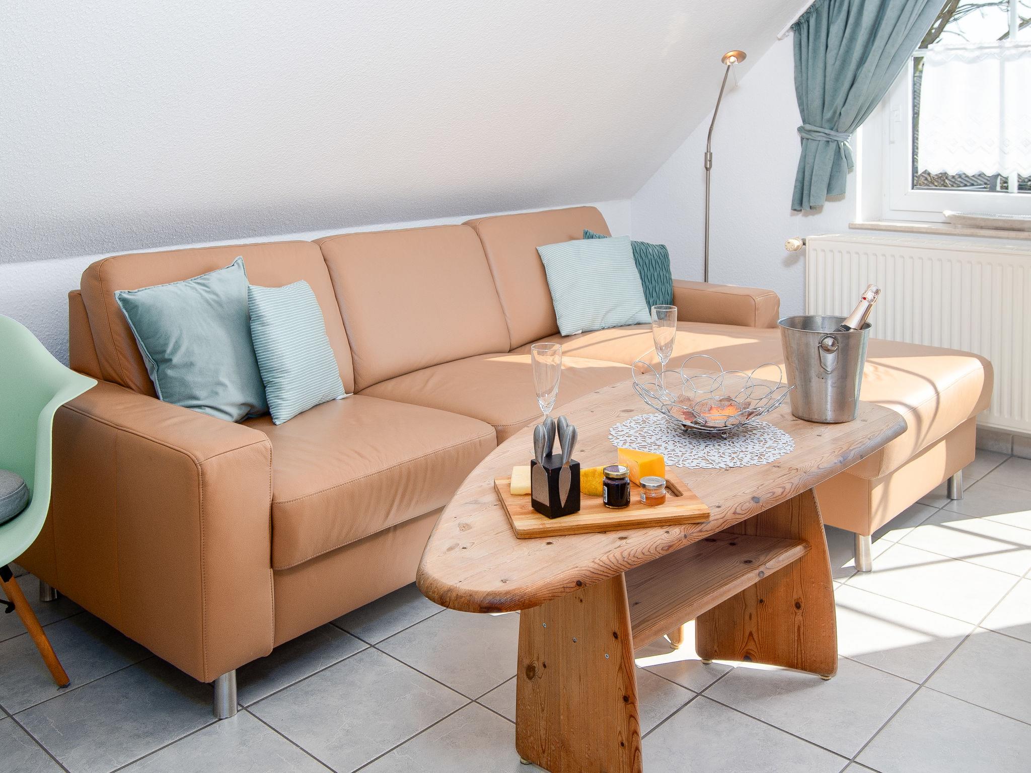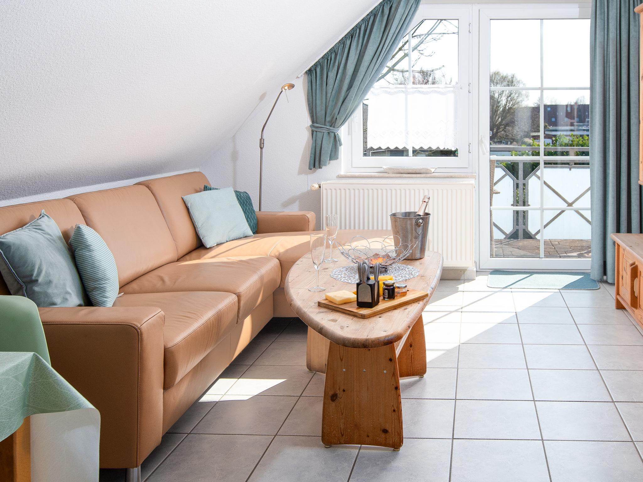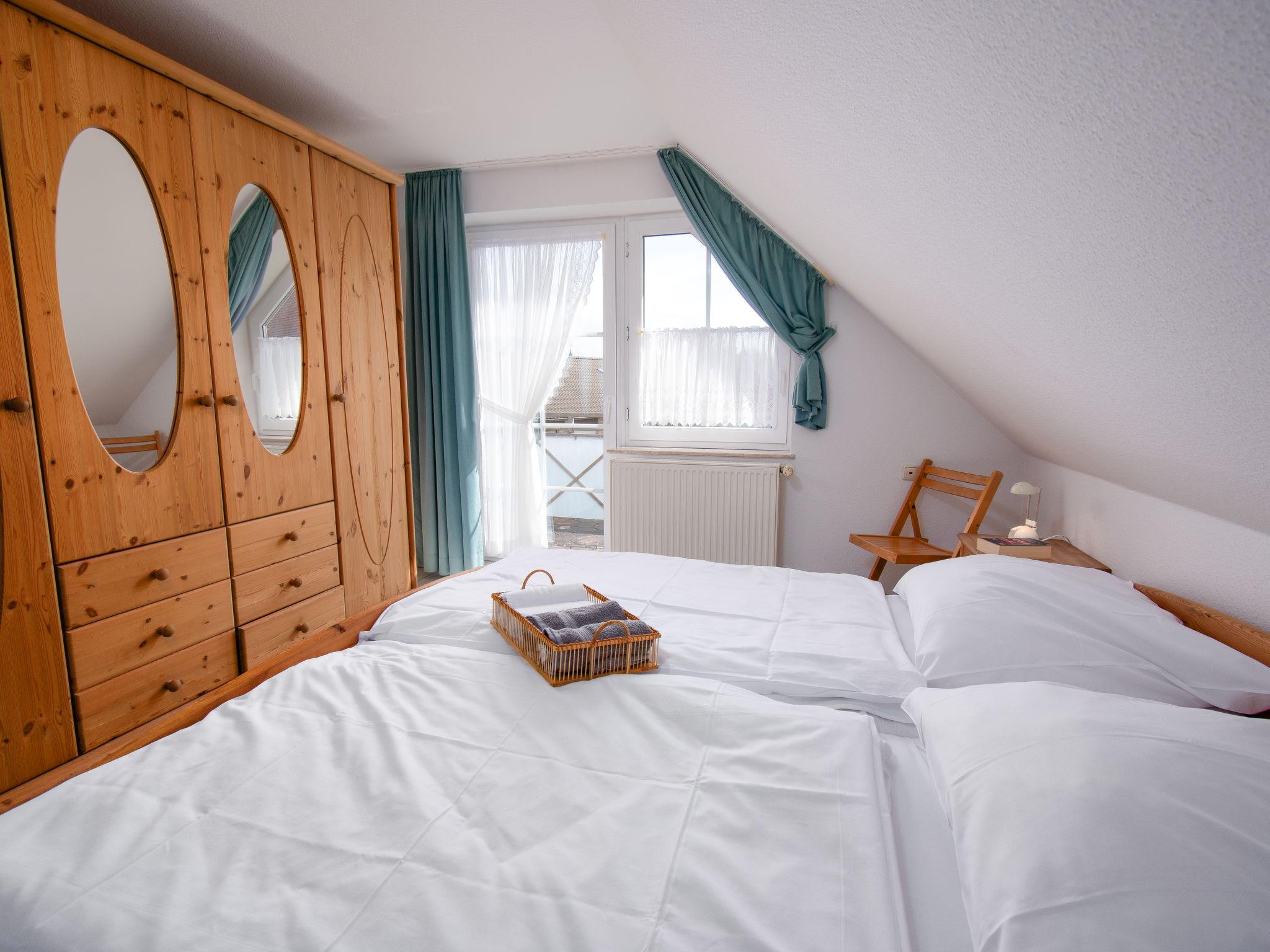 "Leuchtturm", 2-room apartment 40 m2 on 1st floor. With sloping ceilings, beautiful and tasteful furnishings: living/dining room 16 m2 with satellite TV (flat screen), hi-fi system and DVD. Exit to the balcony. 1 room 13 m2 with 1 double bed (2 x 90 cm, length 200 cm). Kitchenette (4 hot plates, oven, toaster, kettle, microwave, freezer, electric coffee machine). Shower/WC. Small balcony 6 m2. Balcony furniture. Facilities: children's high chair (extra). Internet (WiFi, free). Please note: non-smokers only. Smoke alarm.