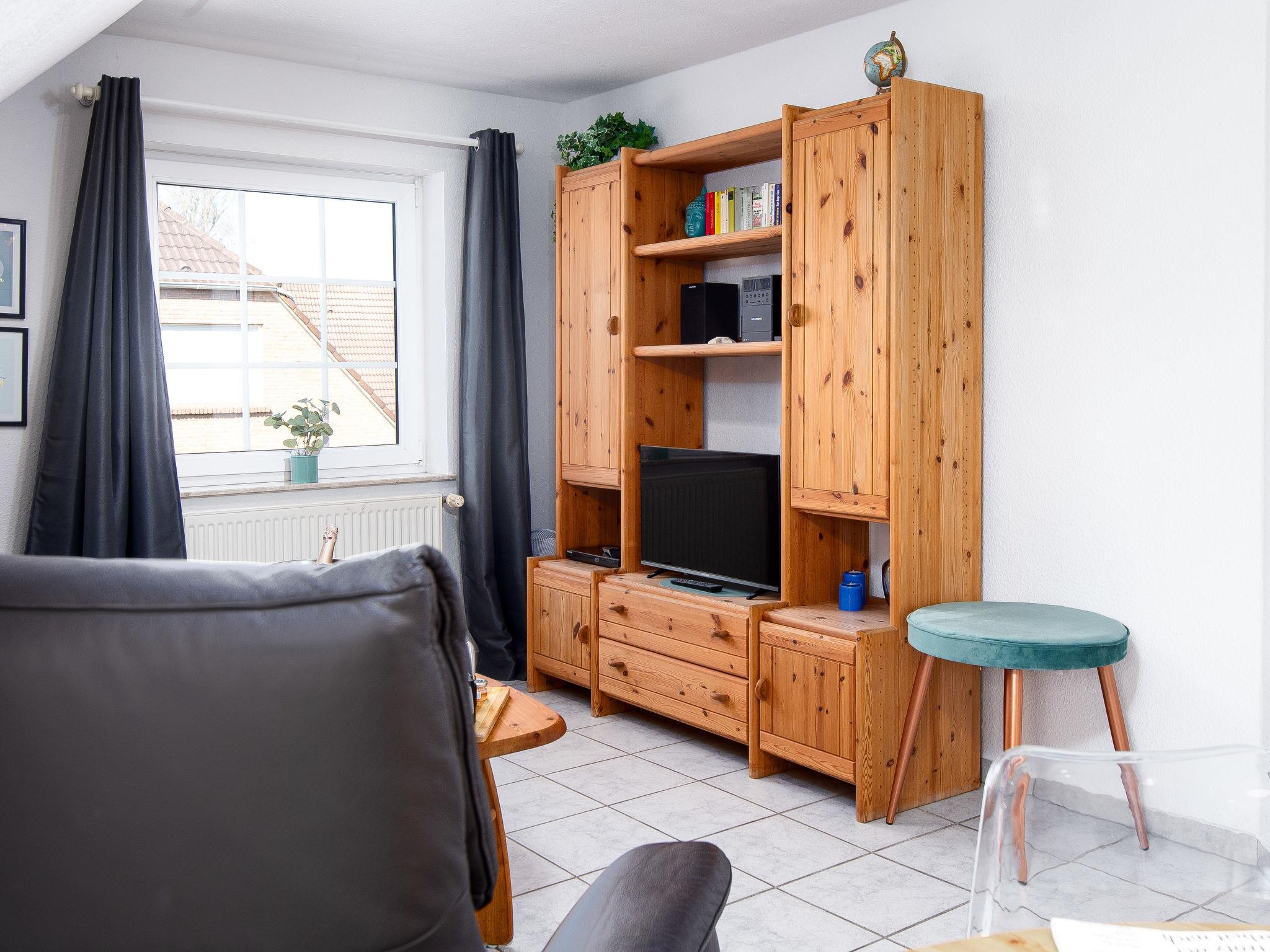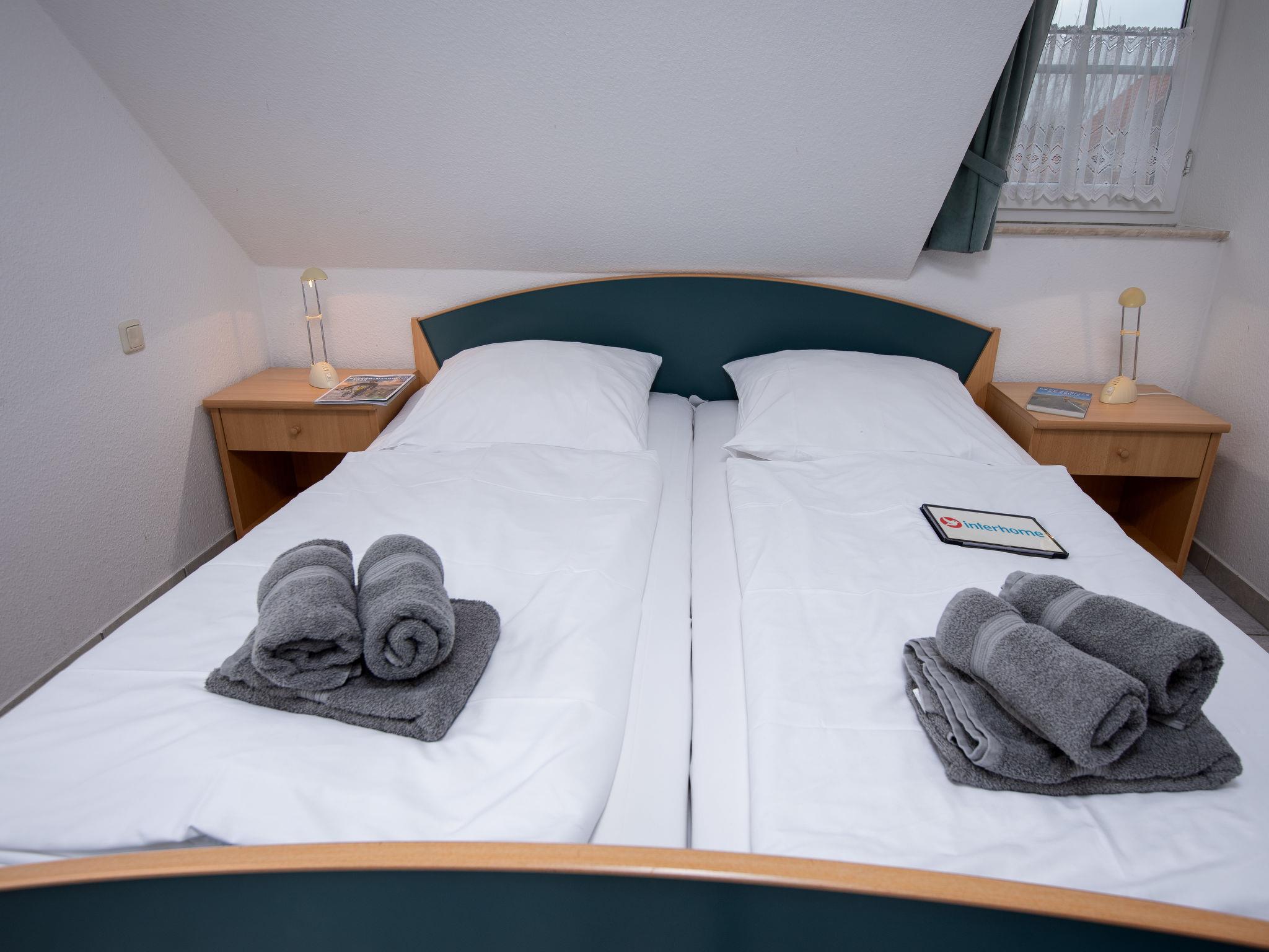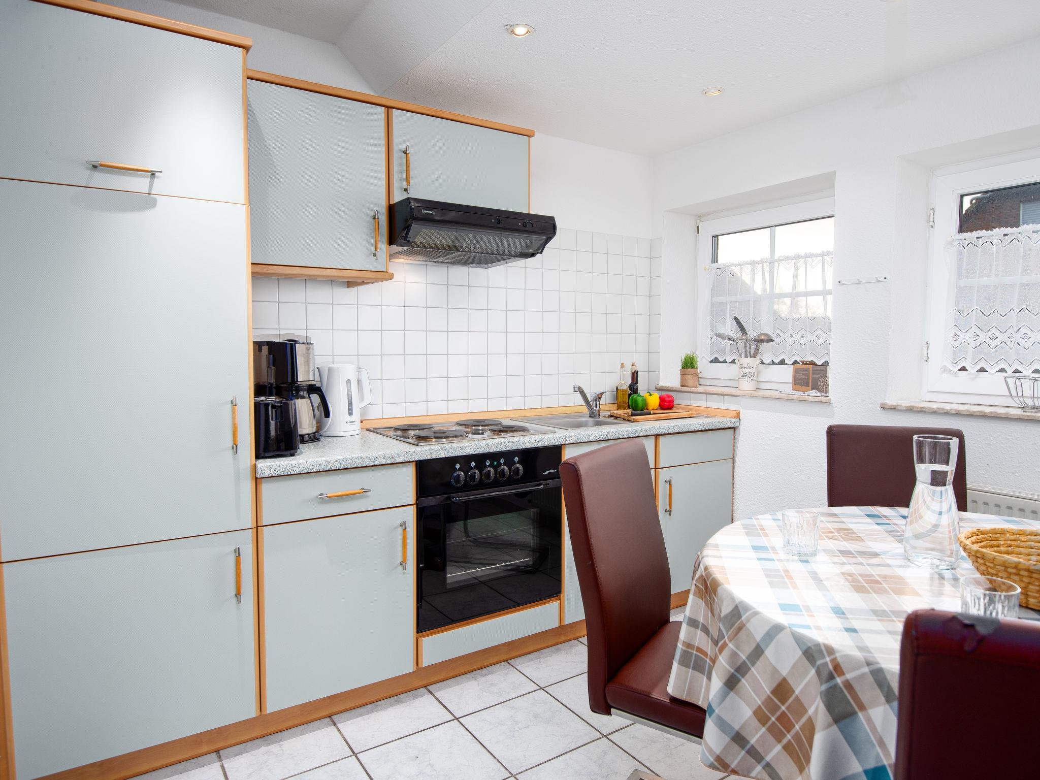 "Möwe", 2-room apartment 40 m2 on 1st floor. Beautiful and tasteful furnishings: living/dining room 16 m2 with satellite TV (flat screen), hi-fi system and DVD. 1 room 10 m2 with 1 double bed (2 x 90 cm, length 200 cm). Open kitchen (4 hot plates, oven, toaster, kettle, microwave, freezer, electric coffee machine). Shower/WC. Terrace furniture, sitting area. Facilities: children's high chair (extra). Internet (WiFi, free). Please note: fridge without freezer, non-smokers only. Smoke alarm.