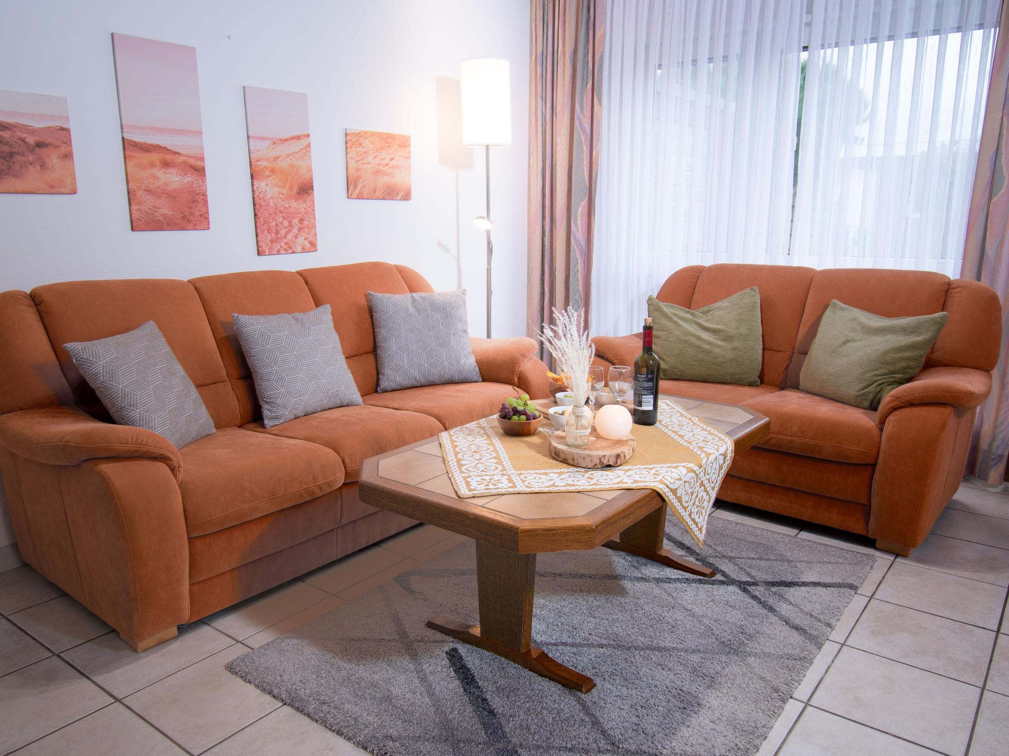 "Störtebeker", 3-room terraced house 56 m2, on the ground floor. Living/dining room 20 m2 with satellite TV (flat screen), radio. 1 room 10 m2 with 1 double bed (2 x 90 cm, length 200 cm). 1 room 7 m2 with 2 beds (90 cm, length 190 cm). Small kitchen 4 m2 (oven, 4 ceramic glass hob hotplates, toaster, kettle, microwave, electric coffee machine). Exit to the terrace. Shower/WC. Terrace 17 m2. Terrace furniture. Facilities: washing machine (extra), children's high chair (extra). Internet (WiFi, free). Please note: non-smoking house. Maximum 1 pet/ dog allowed. Smoke alarm.