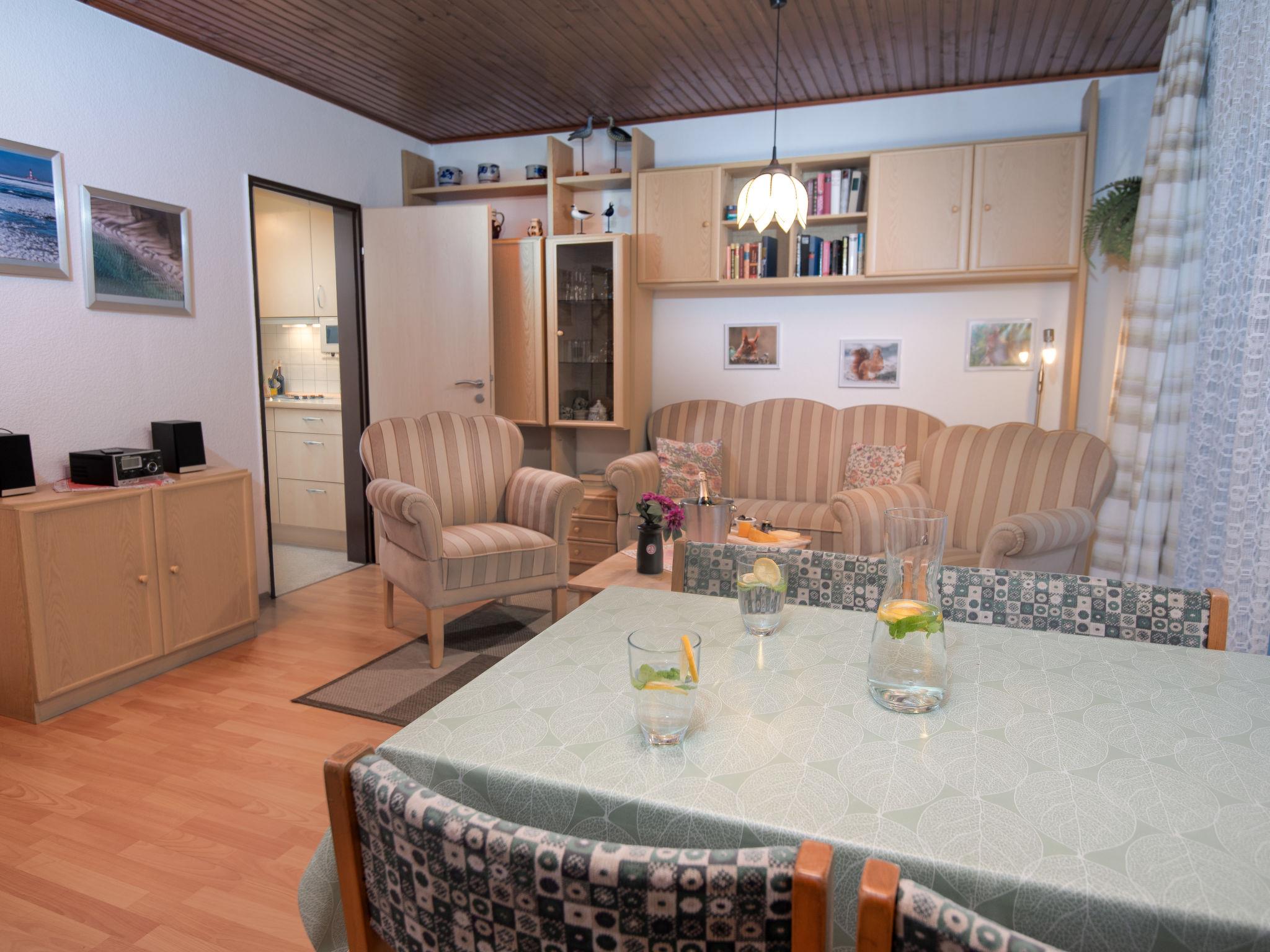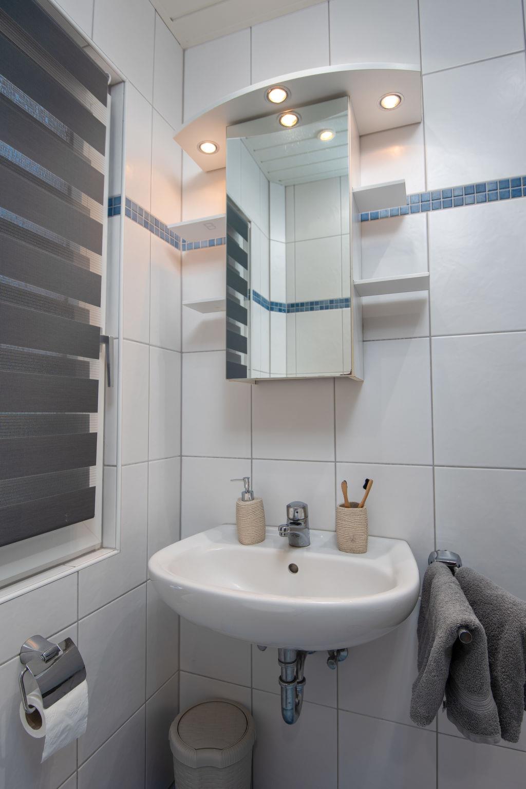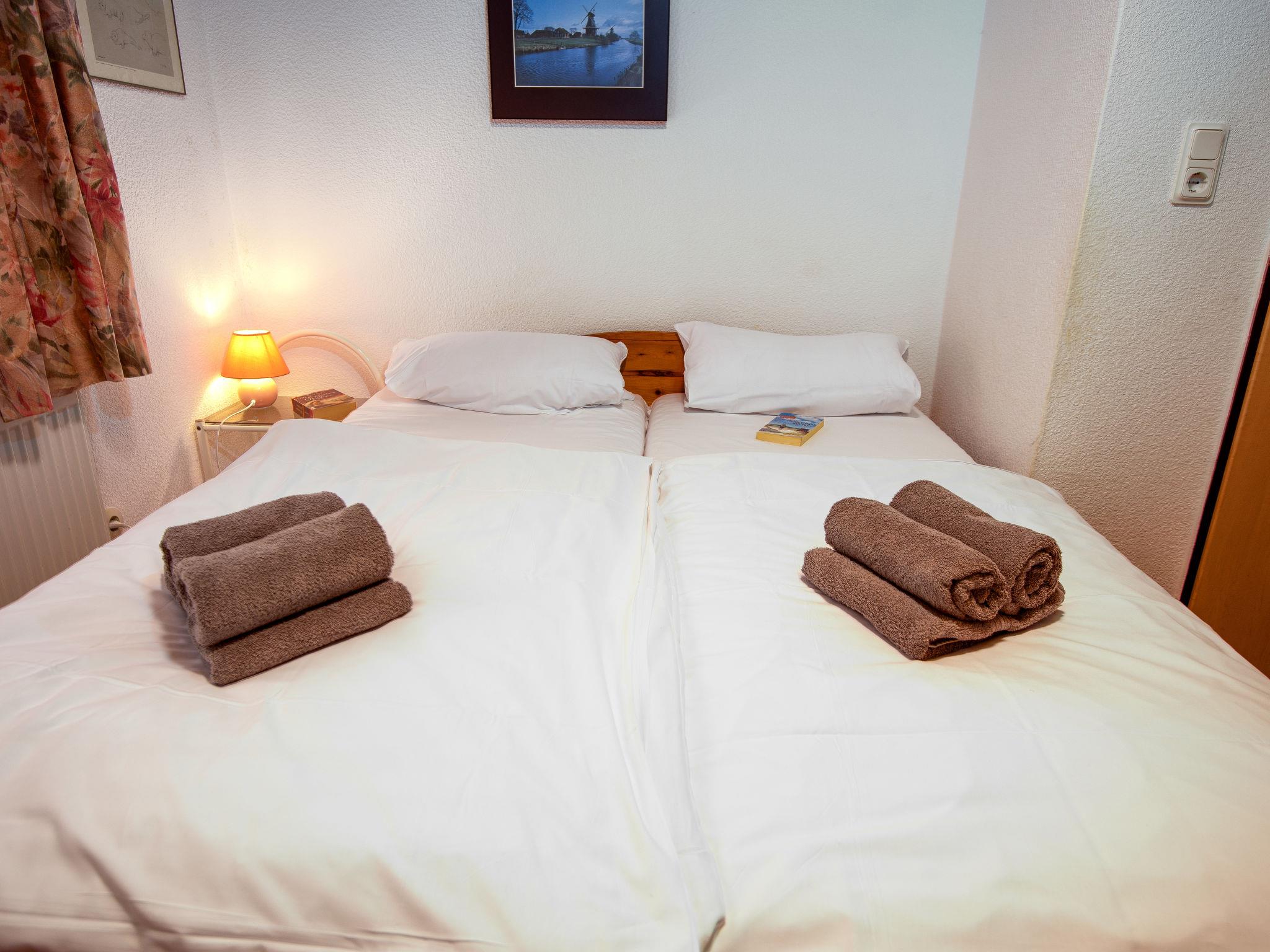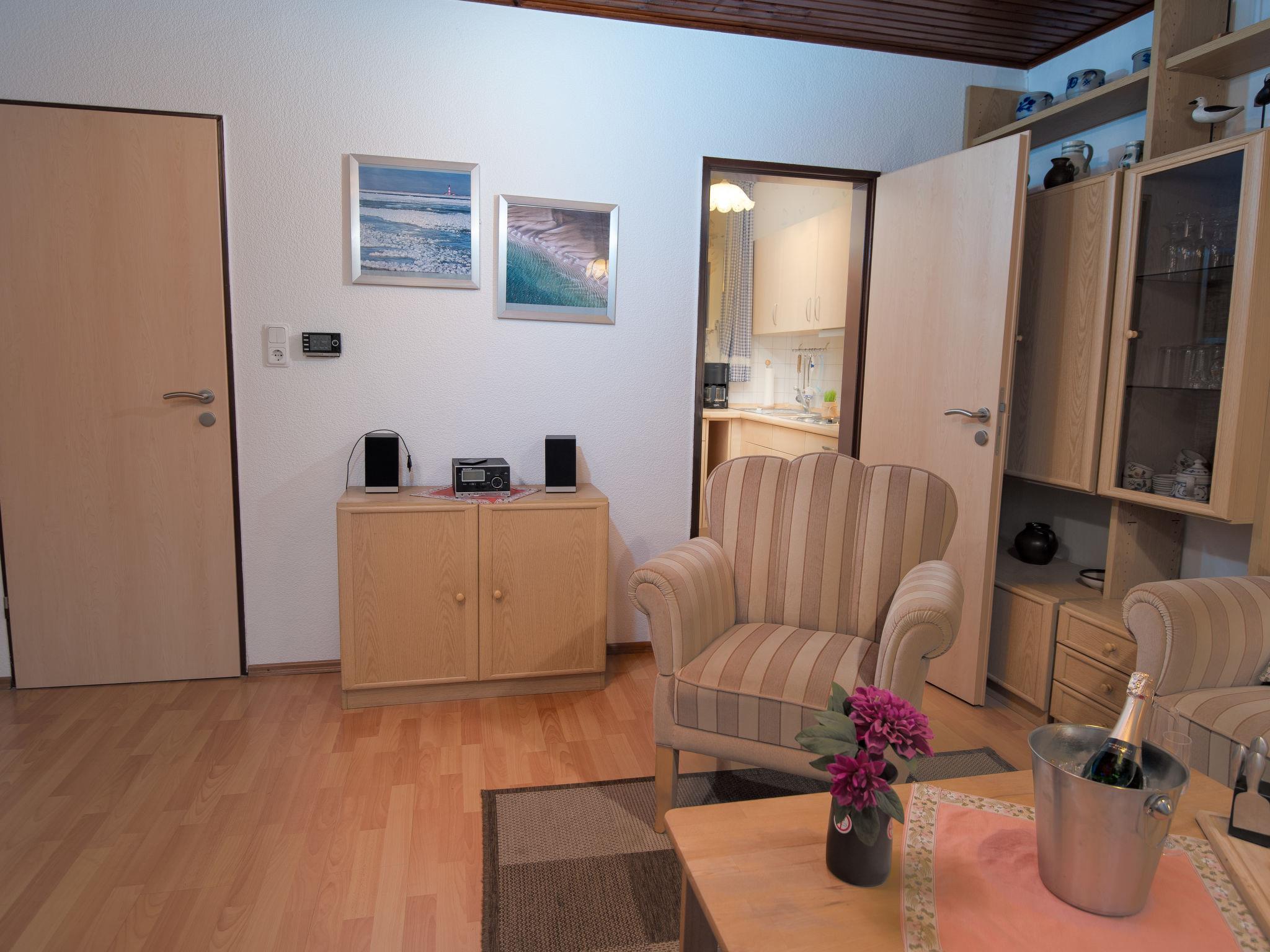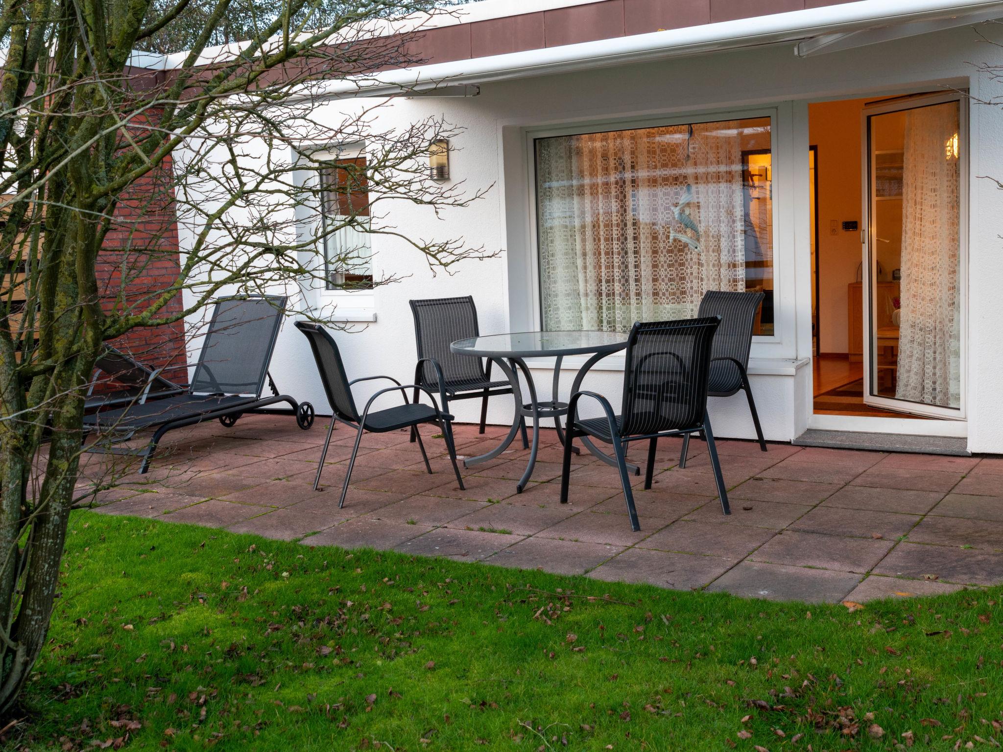 "Windrad", 3-room terraced house 48 m2, on the ground floor. Spacious, cosy furnishings: living/dining room 19 m2 with satellite TV and hi-fi system. 1 room 9 m2 with 1 double bed (2 x 80 cm, length 200 cm). 1 room 4 m2 with 1 x 2 bunk beds (80 cm, length 200 cm). Kitchen (4 hot plates, toaster, kettle, microwave, electric coffee machine). Shower/WC. Terrace 20 m2. Terrace furniture. Facilities: children's high chair (extra). Please note: non-smoking house. Smoke alarm.