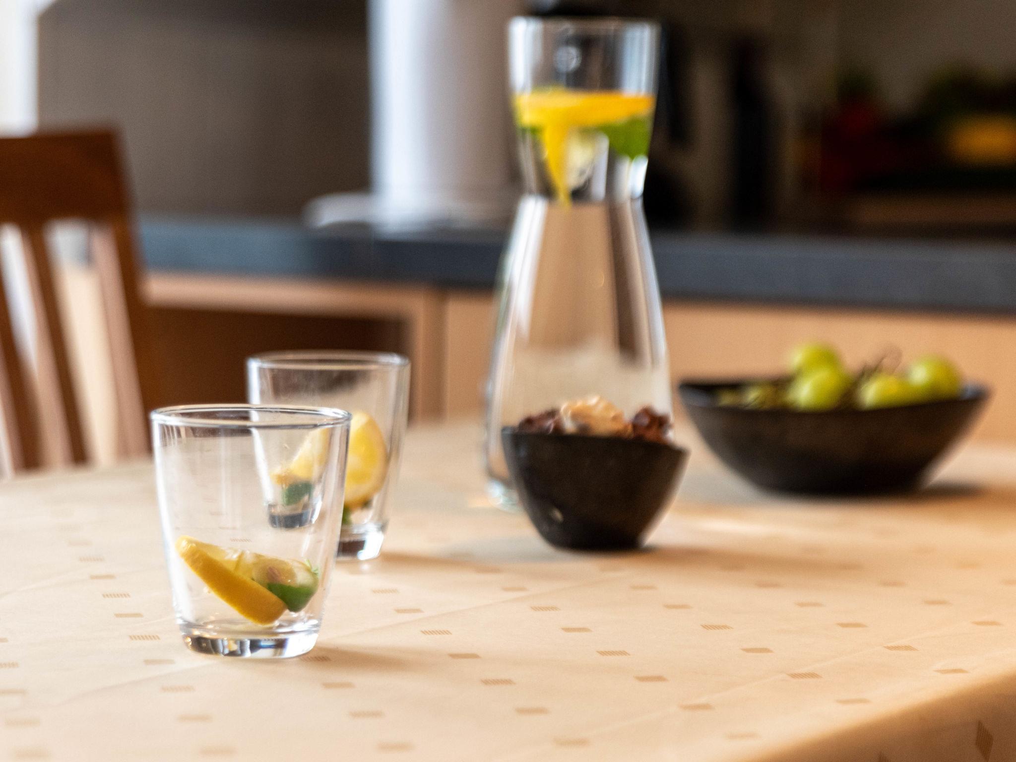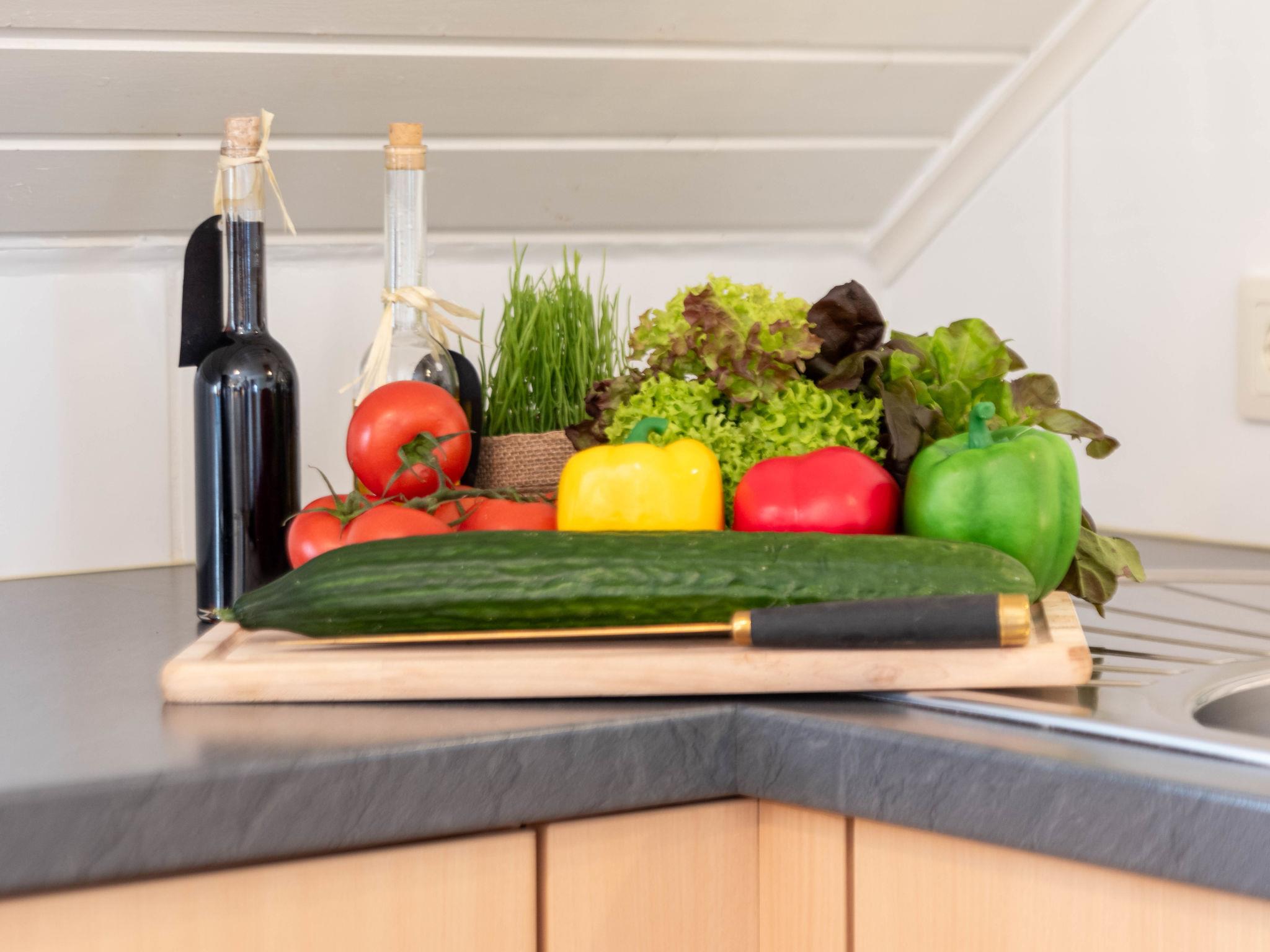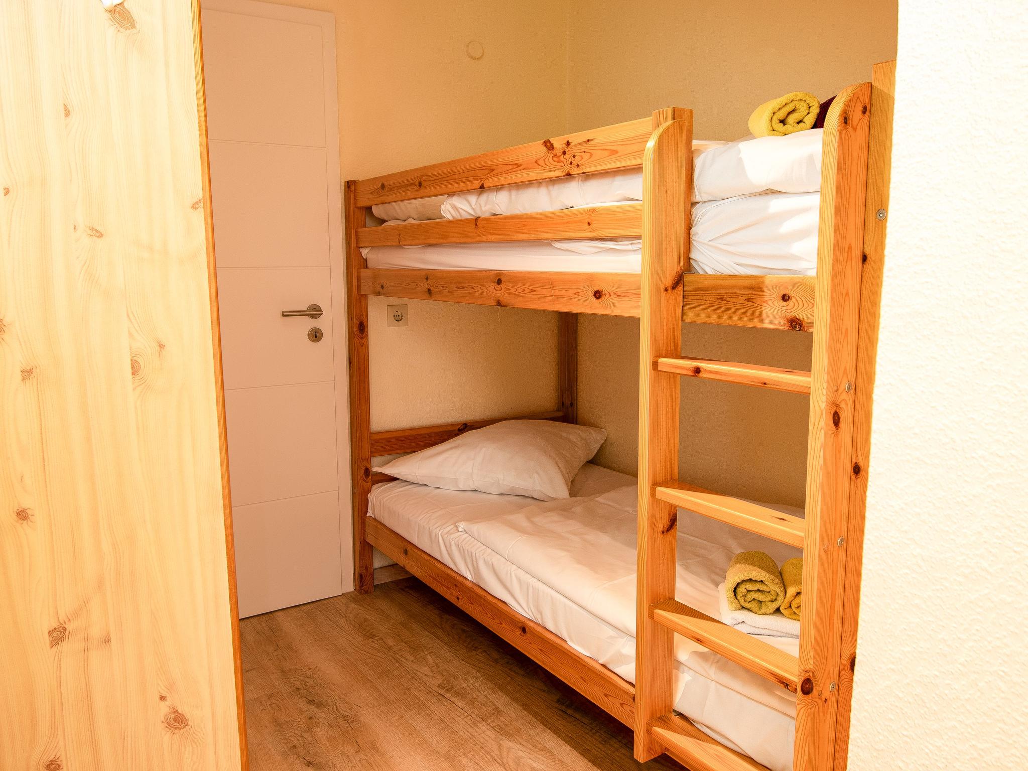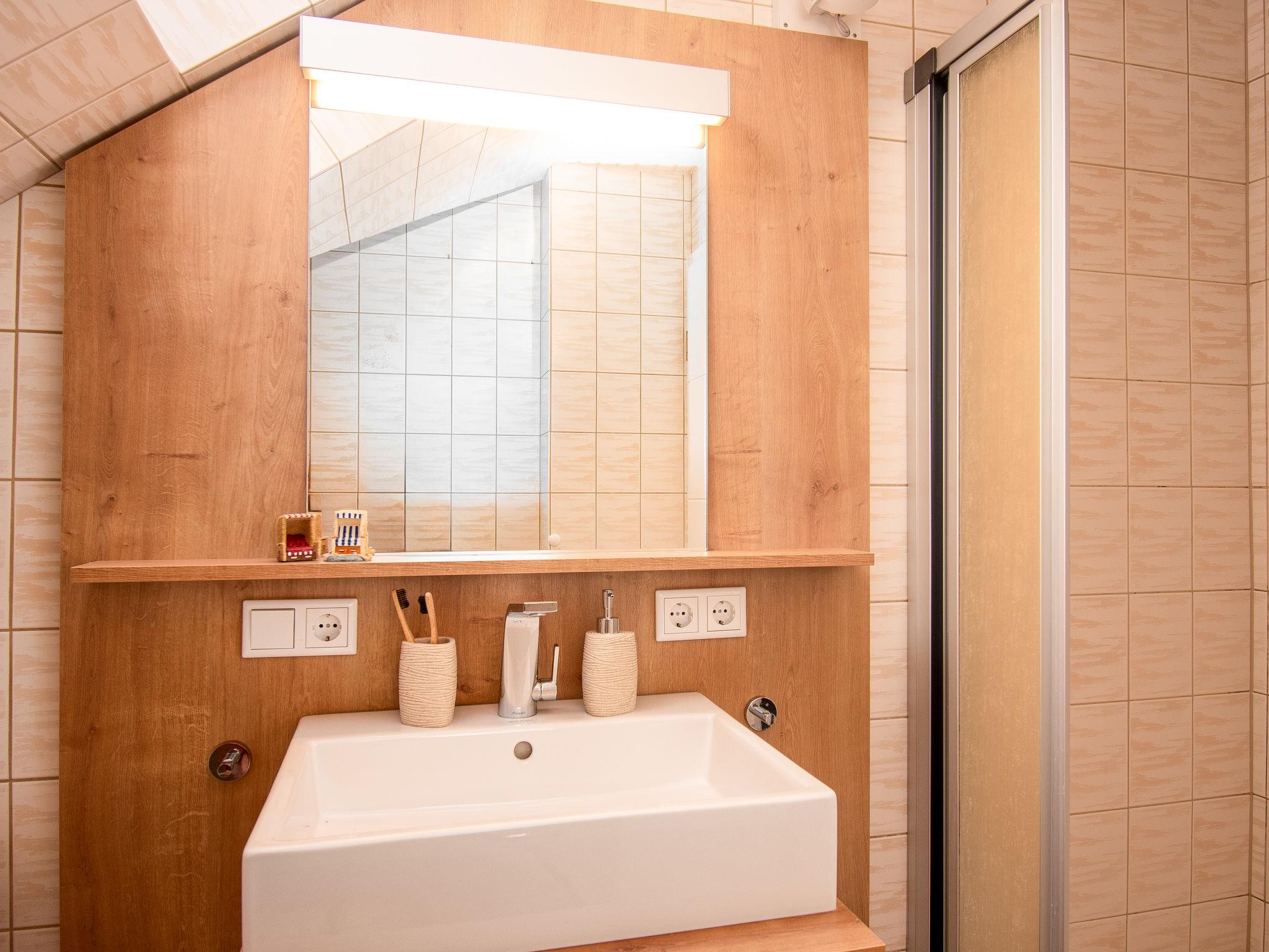 "Strandläufer", 3-room apartment 45 m2, on the upper floor. Partly with sloping ceilings, cosy furnishings: living/dining room 13 m2 with cable TV, hi-fi system and DVD. 1 room 9 m2 with 1 double bed (2 x 90 cm, length 200 cm). 1 room 6 m2 with 1 x 2 bunk beds (90 cm, length 200 cm). Kitchenette (4 ceramic glass hob hotplates, toaster, kettle, microwave, electric coffee machine). Shower/WC. Small balcony. Balcony furniture. Facilities: children's high chair (extra). Internet (WiFi, free). Please note: fridge without freezer, non-smokers only. Smoke alarm.