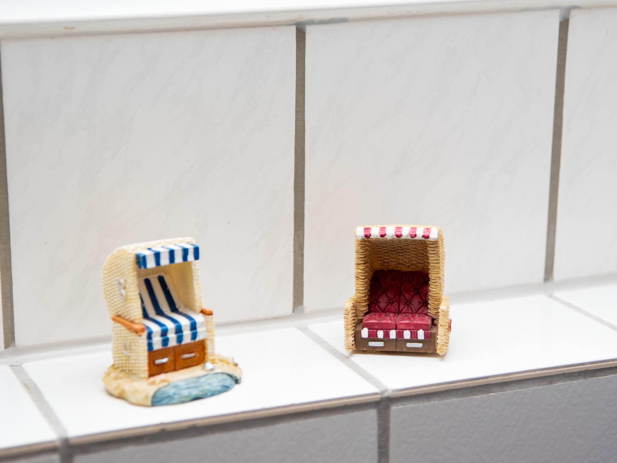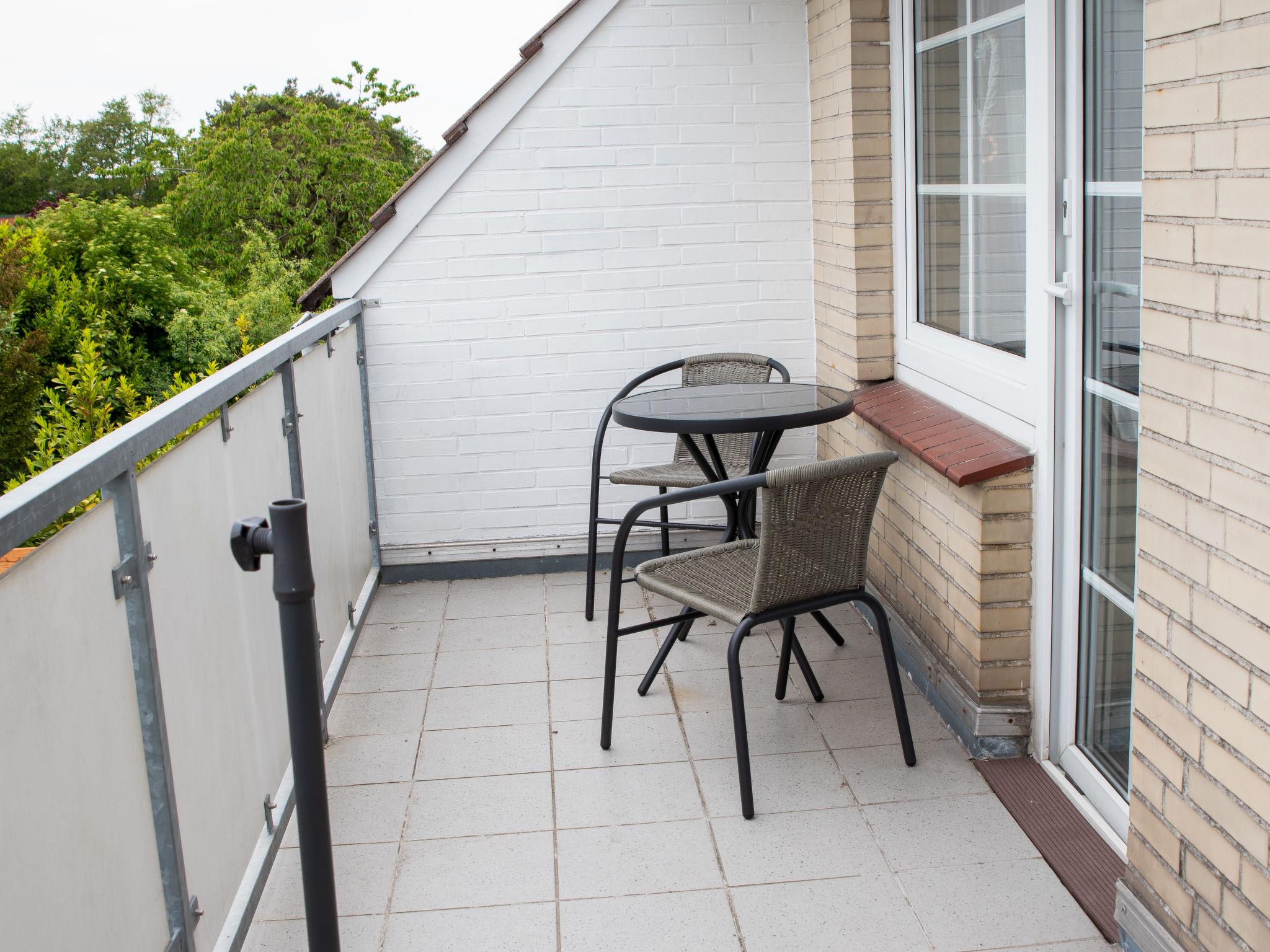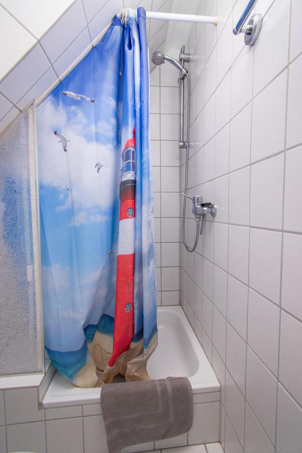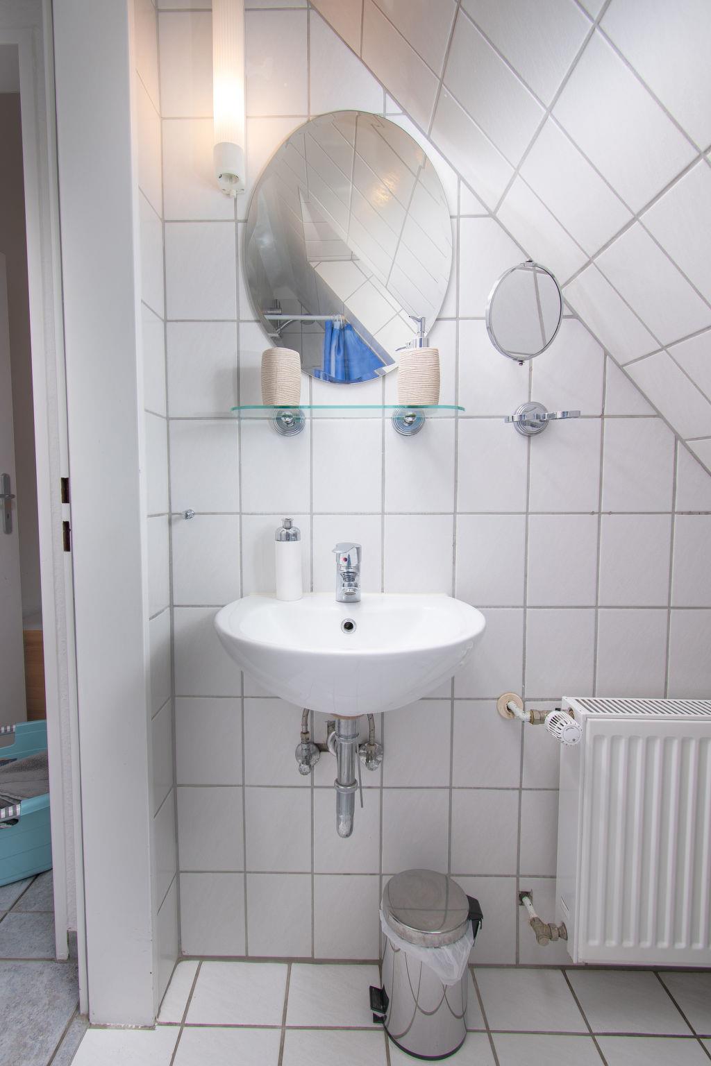 "Krabbe", 3-room apartment 40 m2 on 1st floor. Partly with sloping ceilings: living/dining room with satellite TV (flat screen). 1 room with 1 double bed (2 x 90 cm, length 190 cm). 1 room with 2 beds (90 cm, length 200 cm). Kitchen (4 hot plates, oven, dishwasher, microwave, electric coffee machine, Capsules for coffee machine (Senseo) extra). Shower/WC. Balcony 8 m2. Balcony furniture. Facilities: children's high chair (extra). Internet (WiFi, free). Please note: fridge without freezer, non-smokers only. Maximum 1 pet/ dog allowed. Smoke alarm. The apartment is accessed via an outside staircase.