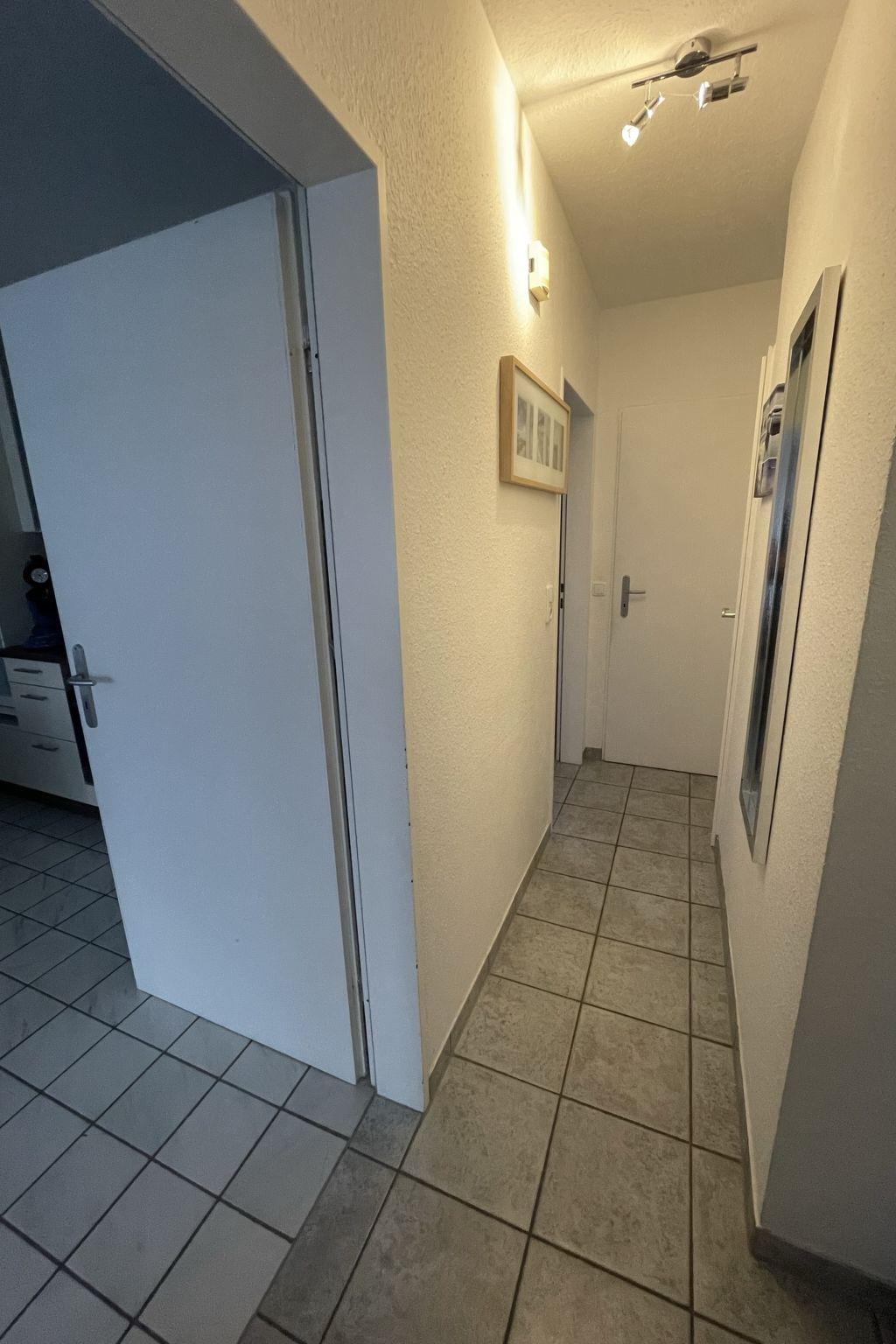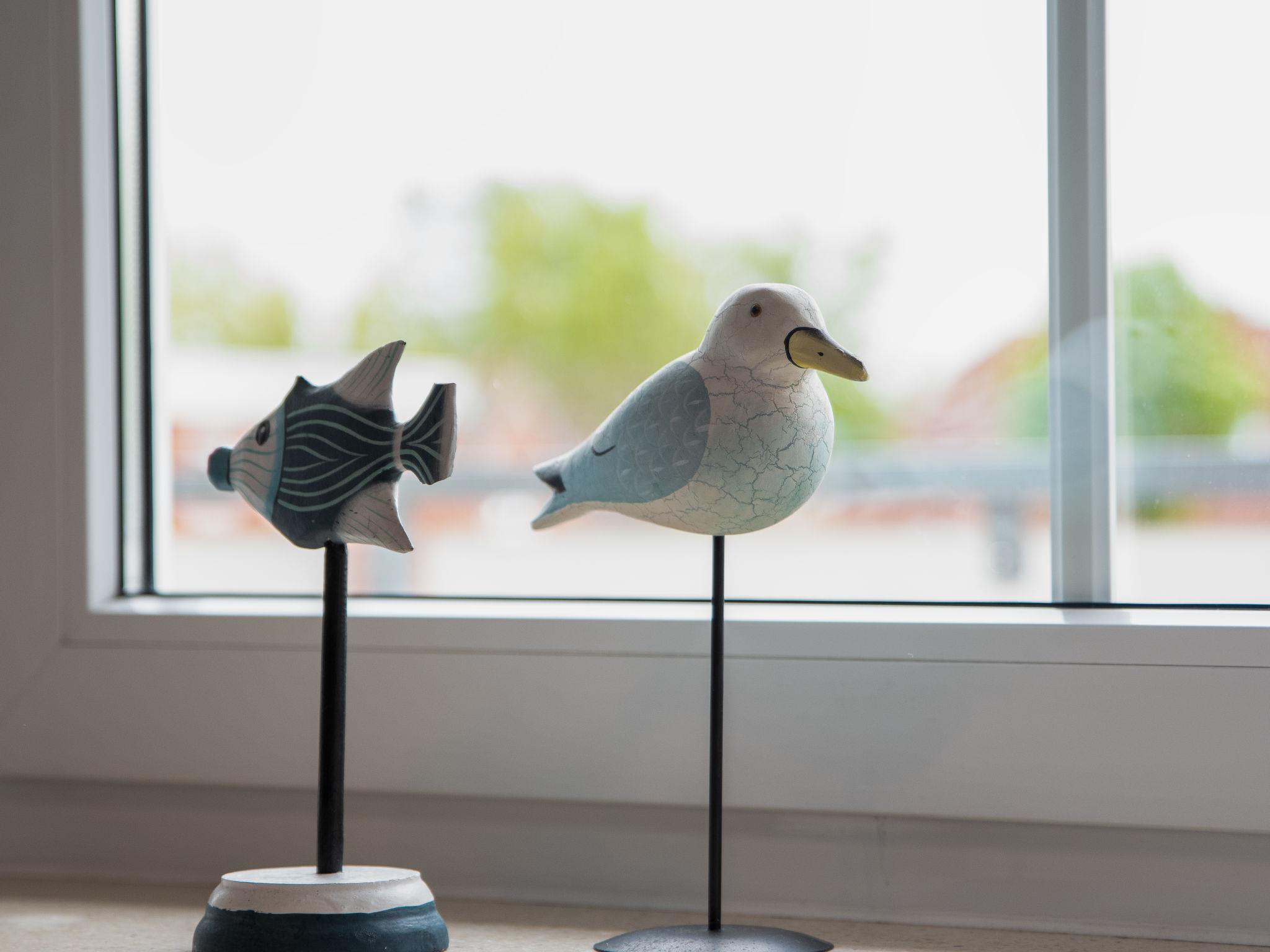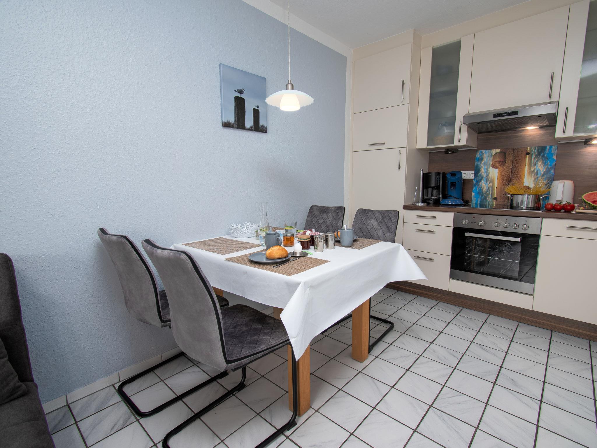 "Krabbe", 3-room apartment 40 m2 on 1st floor. Partly with sloping ceilings: living/dining room with satellite TV (flat screen). 1 room with 1 double bed (2 x 90 cm, length 190 cm). 1 room with 2 beds (90 cm, length 200 cm). Kitchen (4 hot plates, oven, dishwasher, microwave, electric coffee machine, Capsules for coffee machine (Senseo) extra). Shower/WC. Balcony 8 m2. Balcony furniture. Facilities: children's high chair (extra). Internet (WiFi, free). Please note: fridge without freezer, non-smokers only. Maximum 1 pet/ dog allowed. Smoke alarm. The apartment is accessed via an outside staircase.