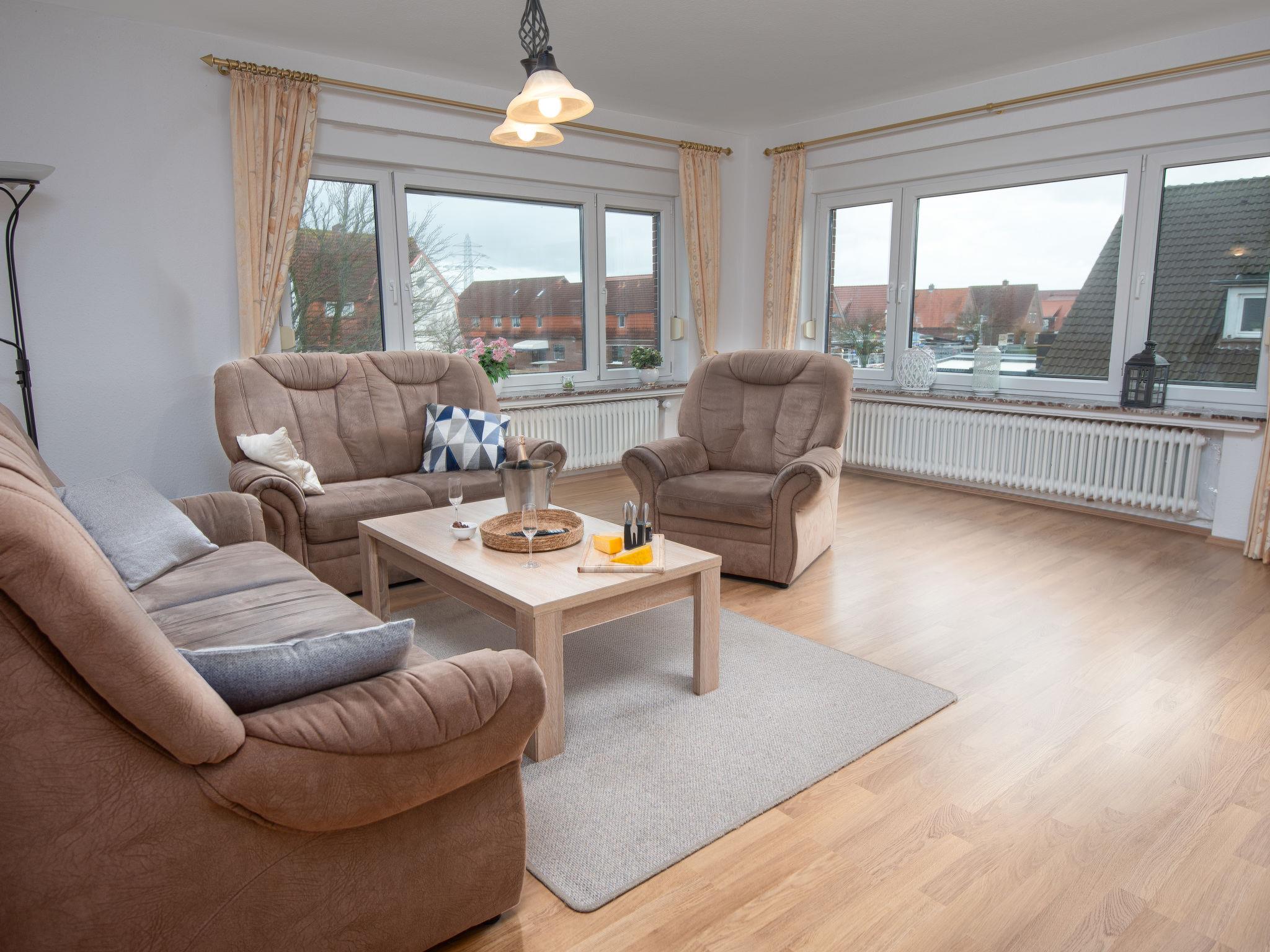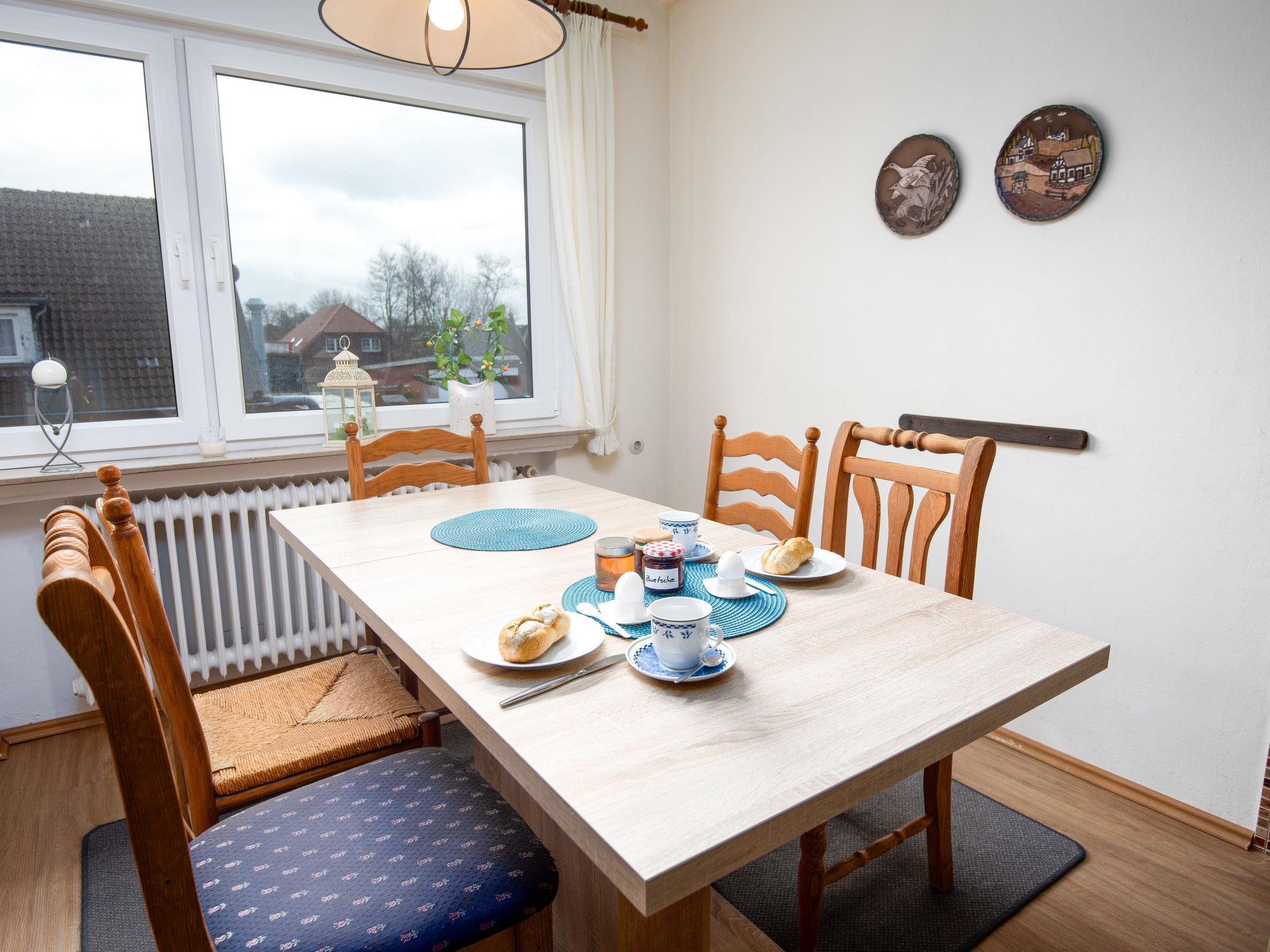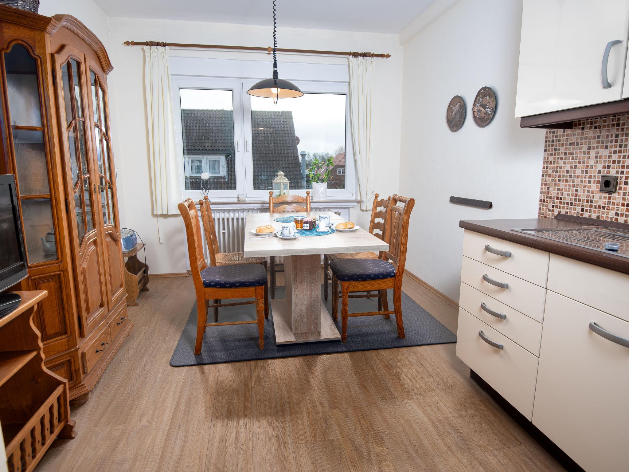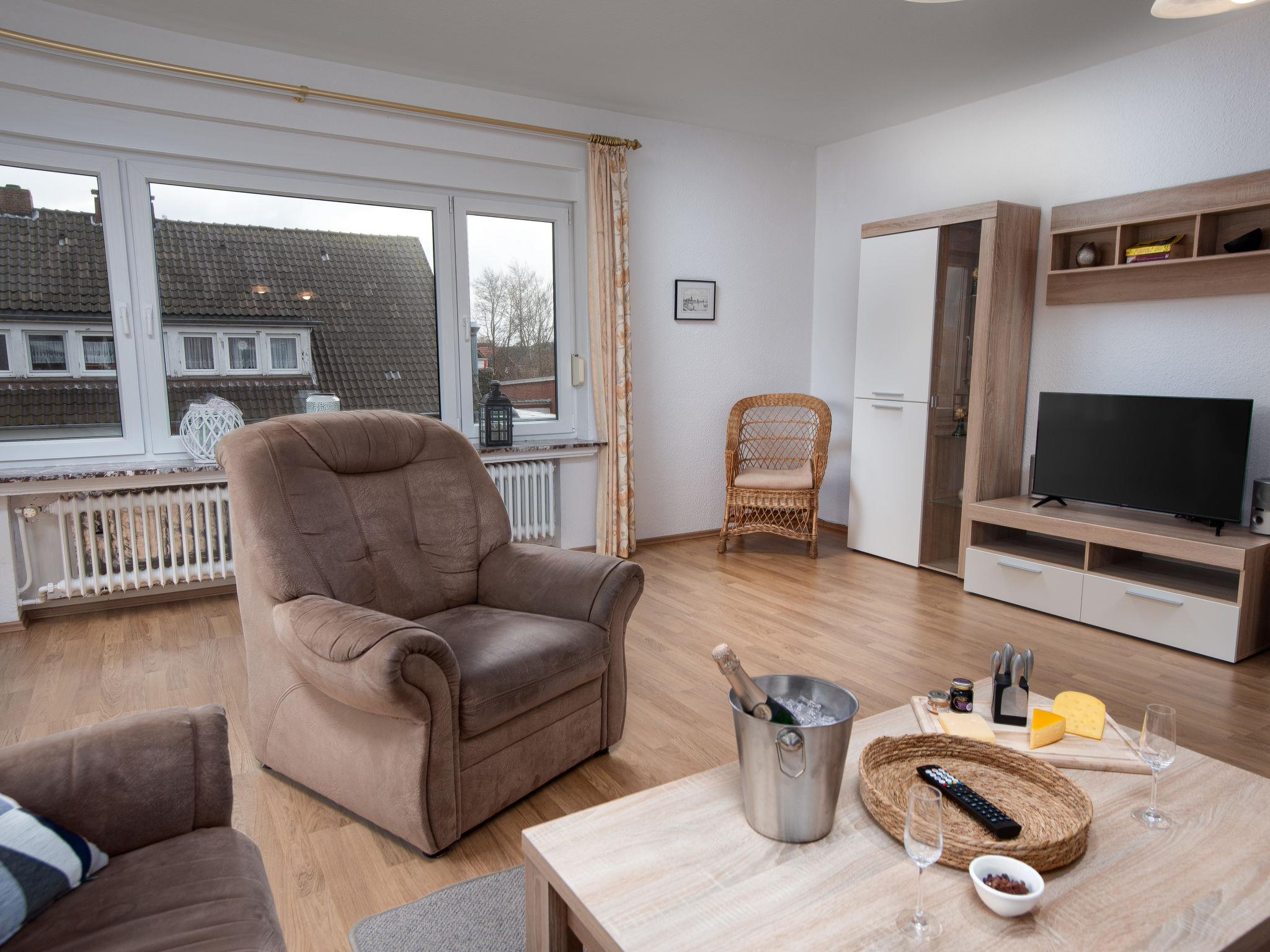 Apartment house. In the centre of Norddeich, 500 m from the sea, 650 m from the beach, in a cul-de-sac. In the house: storage room for bicycles, central heating system. Parking at the house. Grocery 700 m, supermarket 800 m, restaurant 50 m, bakery 10 m, bus stop 150 m, railway station 900 m, ferry 950 m, sandy beach 650 m, outdoor swimming pool 14 km, indoor swimming pool. Golf course (18 hole) 8 km, surf school 900 m. Post office on the ground floor of the house.