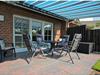 Ground floor: (hallway, Living room(TV, DVD player), Kitchen(electric kettle, toaster, cooker, coffee machine, oven, microwave, dishwasher, fridge, freezer), bedroom(double bed), bathroom(shower, toilet, hairdryer)) Internet Access DSL, Vacuum Cleaner, Internet access, washing machine, terrace, garden(Lawn, garden furniture, awning), iron, drying cabinet