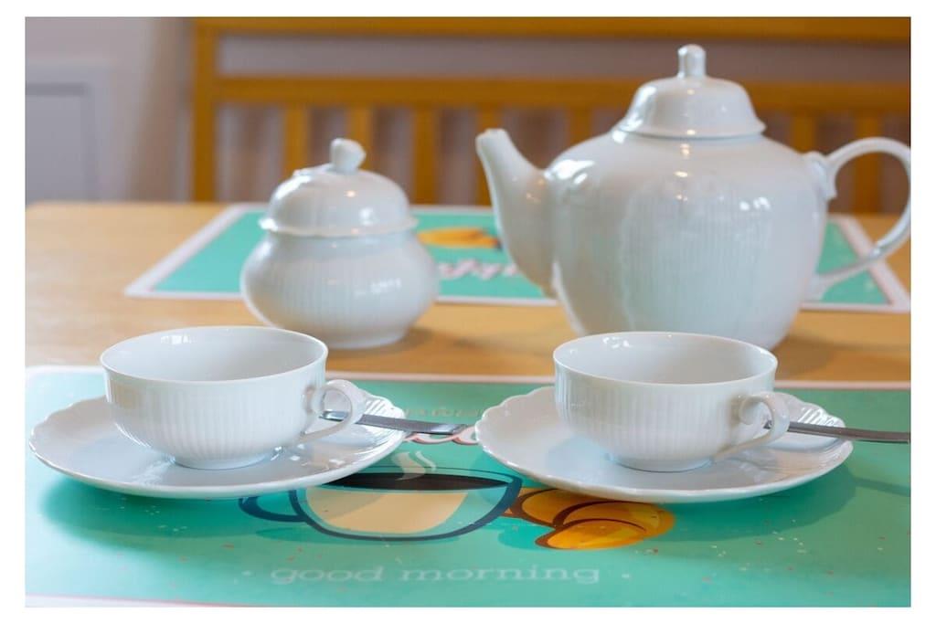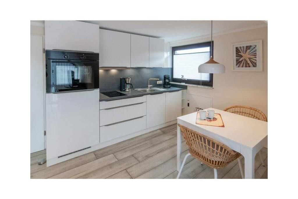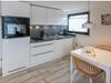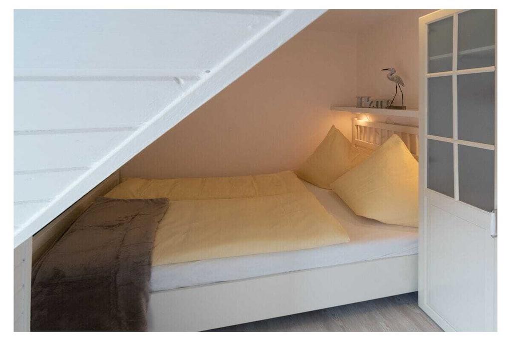 Holiday home Am Koper Sand 15, house "Ekke Nekkepenn" (Apartment 3, first floor, right, Gyde) In this holiday apartment in the holiday home Ekke Nekkepenn, nothing stands in the way of a relaxing holiday in the beautiful Norddeich. The Ekke Nekkepenn house consists of four residential units. Thanks to its detached location in a quiet side street, you can look forward to a peaceful time, far away from the usual tourist activity. Nevertheless, you live centrally: In just ten minutes on foot you can reach the dike and let your gaze wander over the North Sea. It is also only a few minutes to Dörper Weg. The holiday apartment The holiday apartment is optimally designed for two people and has an open living and dining area with an integrated kitchen. Cooking, eating and living form a unit here, so that you can look forward to evenings together. The kitchen area has been furnished compactly and functionally. Here you will find everything you need to prepare a meal. The equipment includes a stove with 2 hotplates, a coffee machine and a pad machine, a refrigerator and even a dishwasher as well as a toaster, egg cooker and mixer. Sufficient dishes, glasses, cups, etc. are of course also available. There is a corner seating area directly attached. In the evening, guests can make themselves comfortable in the living area. The holiday apartment also has a comfortable 2-seater couch with a coffee table. A television and stereo are of course available, so you can look forward to one or two TV evenings. A door leads directly from the living area out onto the balcony facing south-west. In the comfortable seating area, you can enjoy sunny, warm days well into the evening. The apartment also has a bedroom, which is equipped with a 140 x 200 cm double bed with a full-length mattress and another small closet. Additional wardrobe and utensils are in the closet.