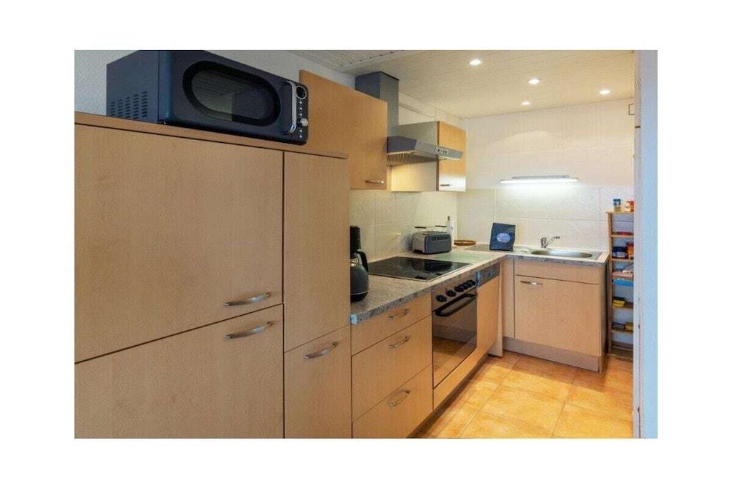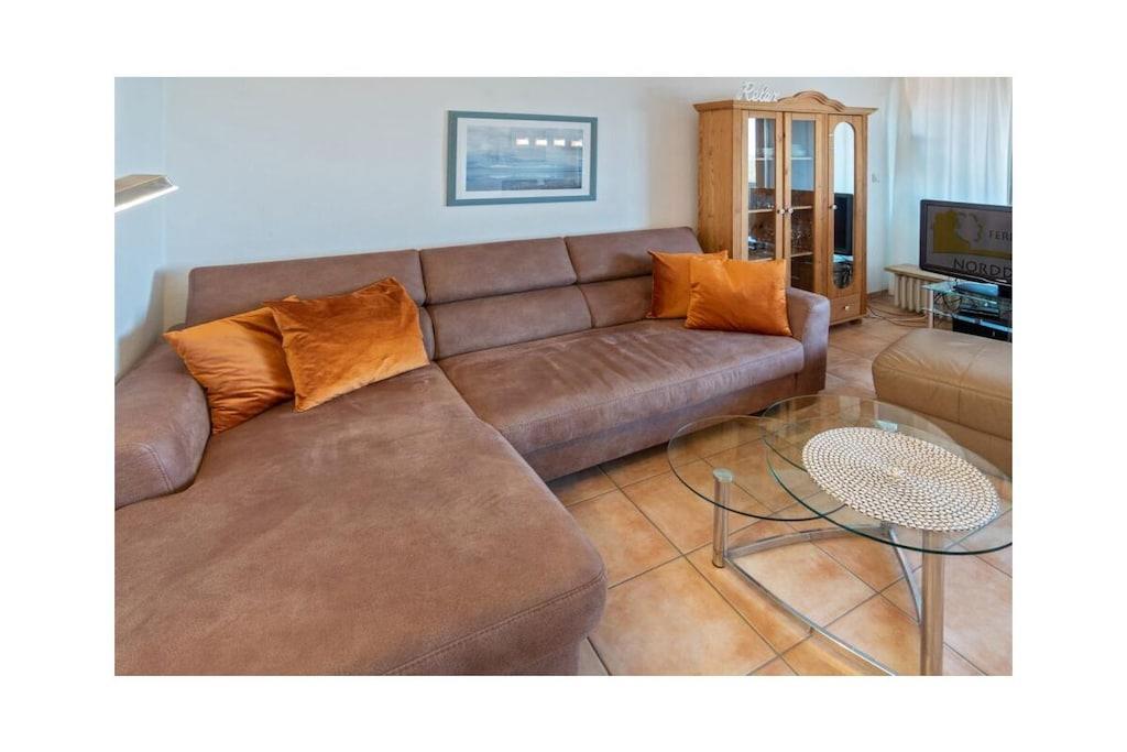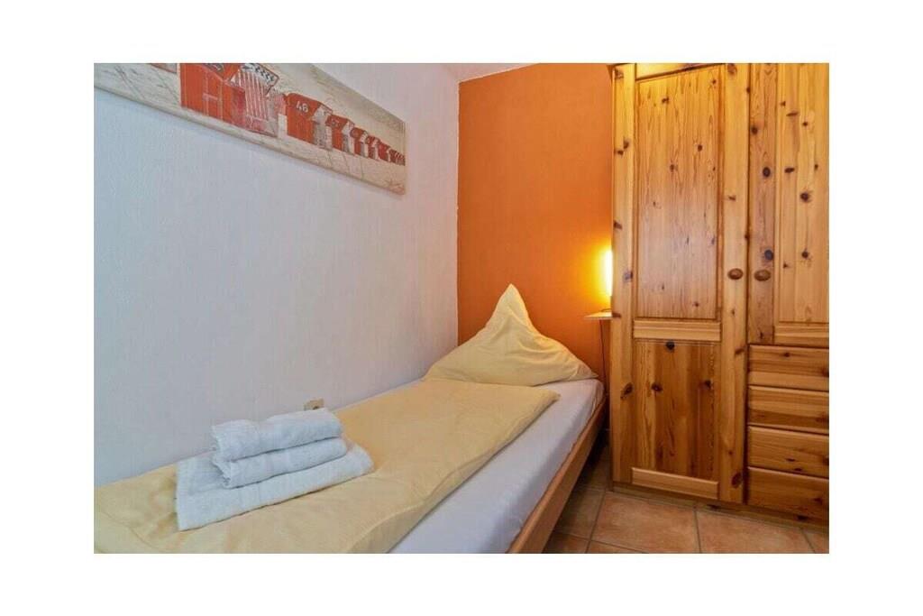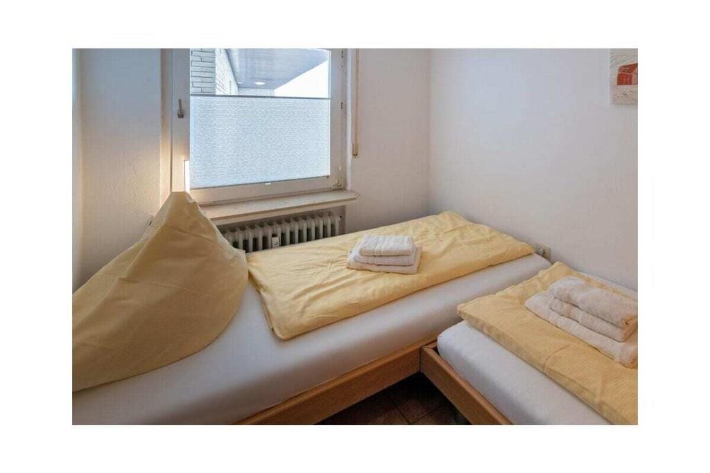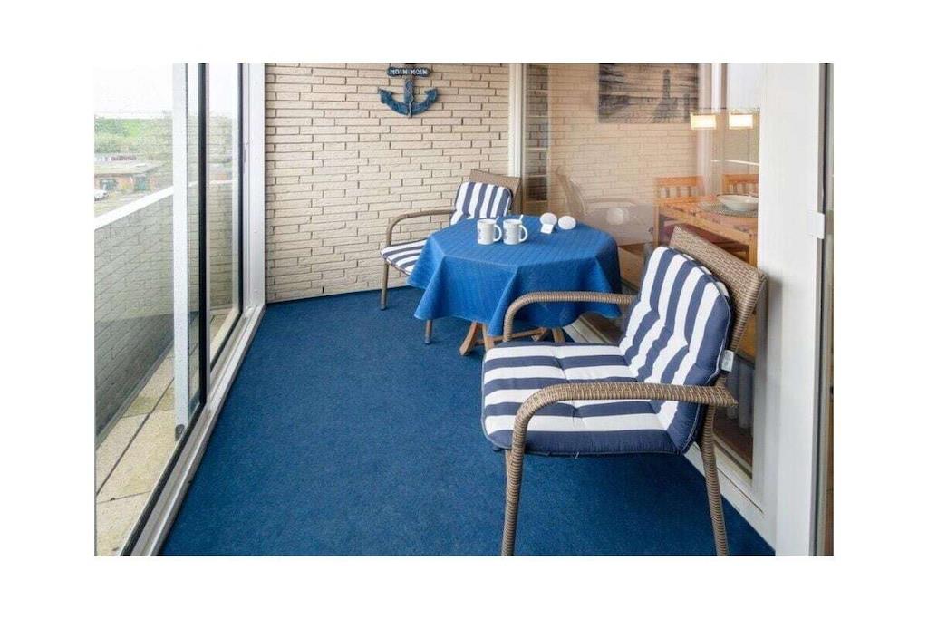 Holiday apartment Dörperweg 3, Norddeich, sea view Apartment 17, 3rd floorThis beautiful holiday apartment is in a wonderfully central location in Norddeich, just a few steps behind the dike. Due to its location on the top floor of a well-kept apartment building, guests can enjoy a side view of the sea. The pretty little apartment has been furnished with great attention to detail and a sense of functionality. The heart of the apartment is the combined living and dining area, which invites you to spend many pleasant hours. The living area has been equipped with a comfortable corner sofa (with sleeping function) and a TV corner, so that entertainment is guaranteed even on rainy days. The kitchen is practically furnished and has everything you need for cooking together. In addition to the dishes and cutlery, this includes amenities such as a stove with oven, a coffee machine, a refrigerator, a microwave, a dishwasher integrated into the kitchenette, a toaster and an egg cooker. The cozy dining area offers space for four people. The highlight of the sea view apartment is the balcony adjacent to the living room. This has been converted into a glazed winter garden. This means you can enjoy the wonderful North Sea panorama even in winter. When the weather is nice, the winter garden can be opened so that guests can fully enjoy the pleasant climate. Thanks to the south-west orientation, you can enjoy the wonderful sea view from the balcony/winter garden. A comfortable seating area for four people ensures comfort. The guest apartment has a small, cozy bedroom, which is equipped with two 90 x 200 cm single beds. The wardrobe offers enough space for the wardrobe. In addition, jackets and coats can also be stored in a second closet in the hallway. The beautifully designed small bathroom has a shower, a toilet and a washbasin combination with a large