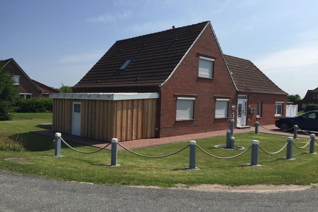 Velkommen til vores kærligt møblerede feriehus, beliggende direkte ved diget og omgivet af vidtstrakte enge og marker. Her kan I nyde fred, natur og afslapning i umiddelbar nærhed af Norddeichs lystbådehavn. Huset tilbyder tre hyggelige soveværelser og stilfulde møbler, der skaber en varm og indbydende atmosfære. Den fuldt indhegnede have gør feriehuset særligt attraktivt for hundeejere, der ønsker at lade deres firbenede venner løbe sikkert rundt. Et andet højdepunkt er den overdækkede og lukkede terrasse, som tilbyder jer et beskyttet udendørsområde uanset vejret. Uanset om det er lange gåture langs diget, udflugter eller afslappende timer i haven – her kan I nyde jeres ferie fuldt ud.
