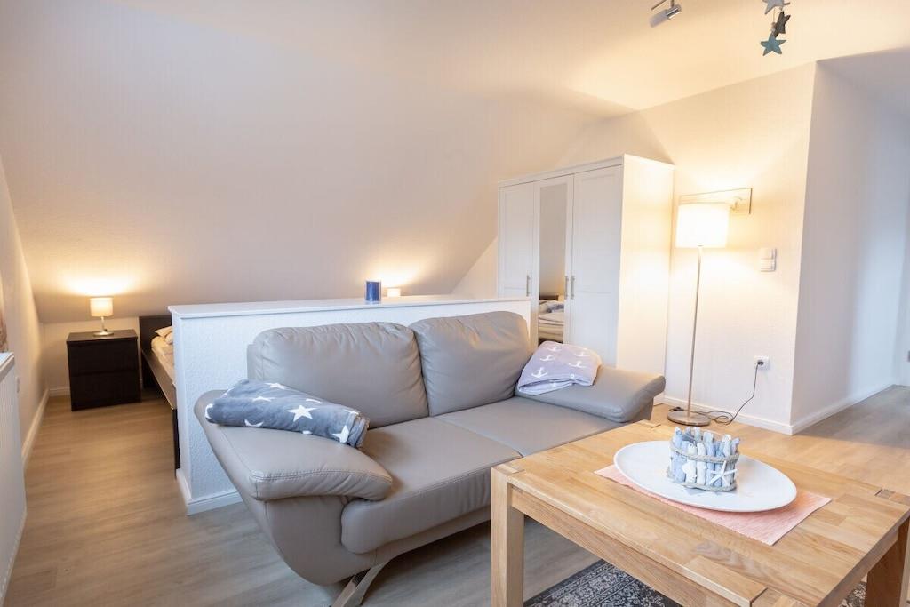 En smagfuldt møbleret og solrig lejlighed venter dig. Lejligheden består af en opholds- og spisestue samt et soveværelse på øverste etage. Der er også et fuldt udstyret køkken. Det moderne badeværelse har bruser og toilet. Et opholdsområde i haven indbyder til afslapning og ro. Parkering er tilgængelig lige foran huset og er inkluderet i prisen.