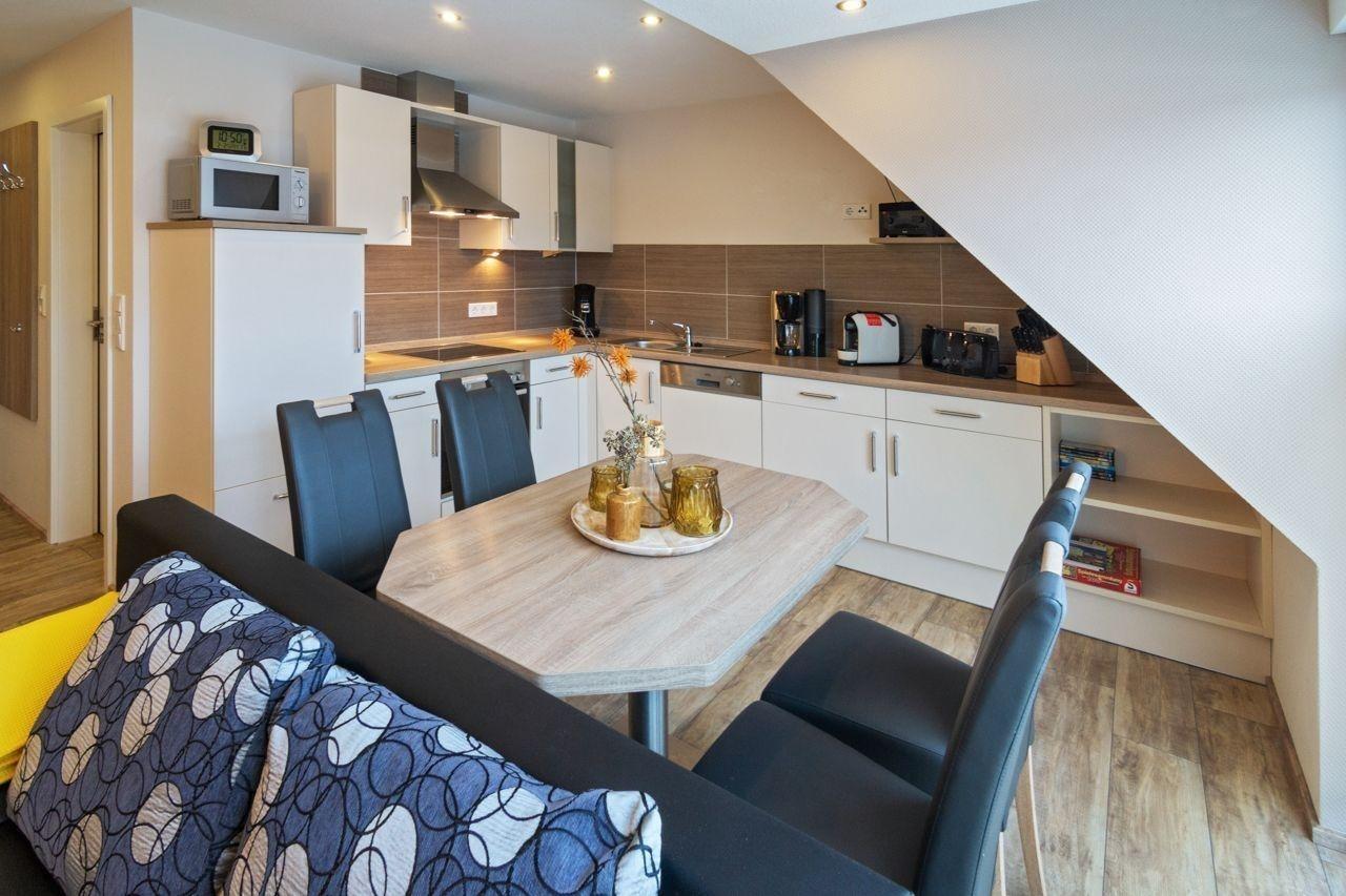 Hier empfangen Sie: eine gemütliche, moderne Couch mit Sessel und Tisch, eine neuer Flat LED inklusive Sat-TV, ein DVD-Player inkl. DVD, ein CD Player mit Radio, eine bequeme Schlafcouch, ausreichend Sitzmöglichkeiten im Küchenbereich / Essecke. Gesellschaftsspiele verhelfen zu einem fröhlichen Abend.