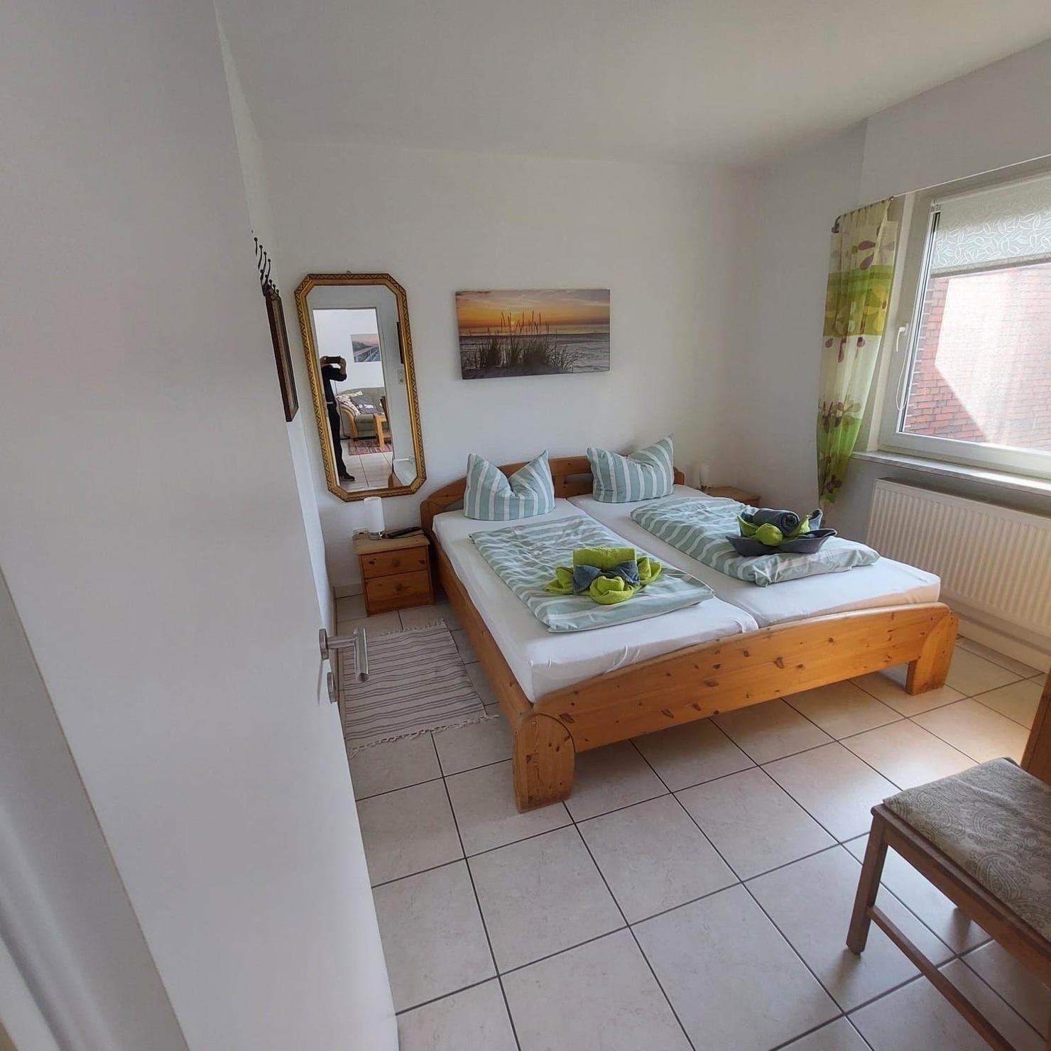 Die Ferienwohnung besticht durch ihre großzügigen und komfortablen Räume. Sie bietet zwei liebevoll gestaltete Schlafzimmer, eines mit einem Doppelbett und das andere mit zwei Einzelbetten, ideal für Familien oder Gruppen. Die separate Küche ist bestens ausgestattet mit einem Geschirrspüler, Elektro- und Gasherd, Backofen, Mikrowelle, Kühlschrank, Kaffeemaschine, Toaster und einer Gefriermöglichkeit. Ein einladender Esstisch lädt zu gemeinsamen Mahlzeiten ein. Das moderne Badezimmer mit bodentiefer Dusche sowie ein zusätzliches Gäste-WC sorgen für Komfort. Für Unterhaltung stehen eine HiFi-Anlage und ein TV zur Verfügung. Die Wohnung ist allergikergeeignet und bietet eine Vielzahl an Annehmlichkeiten wie Waschmaschine, Wasserkocher, Eierkocher und Geschirr. Heizung sorgt für eine angenehme Atmosphäre. WLAN ist ebenfalls verfügbar, um die Online-Anforderungen zu erfüllen. Eine ideale Wahl für unvergessliche Urlaubstage.