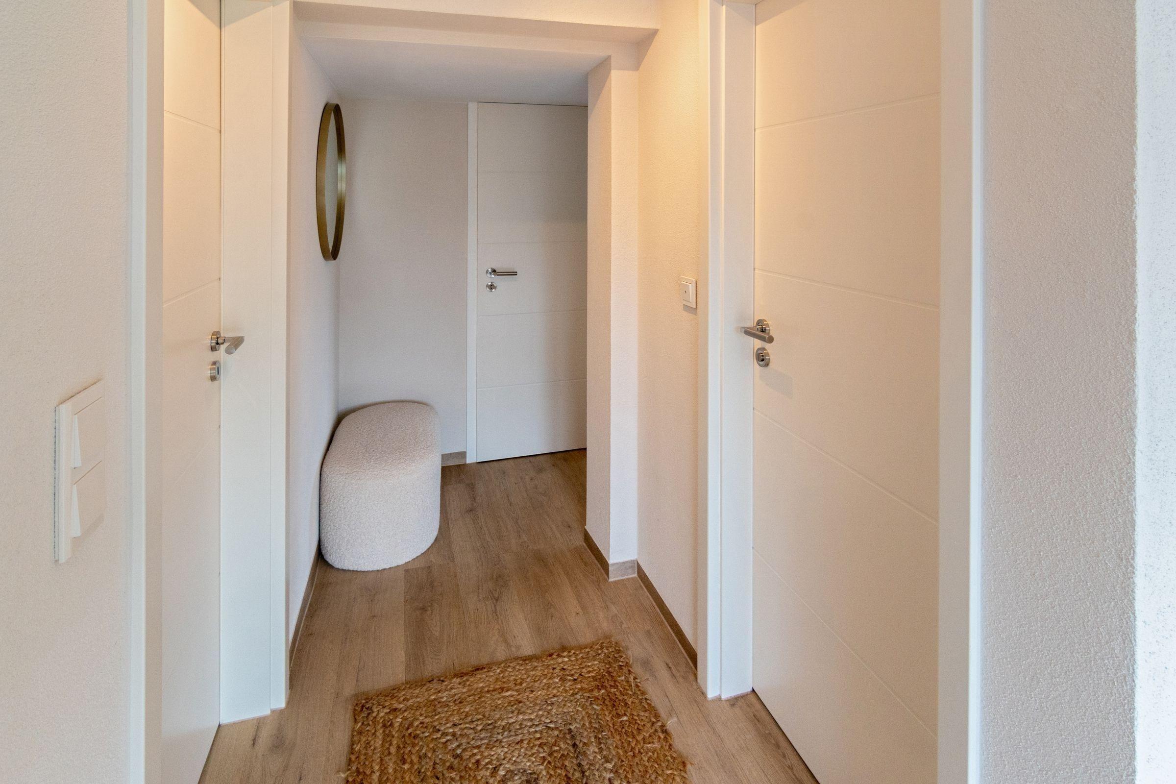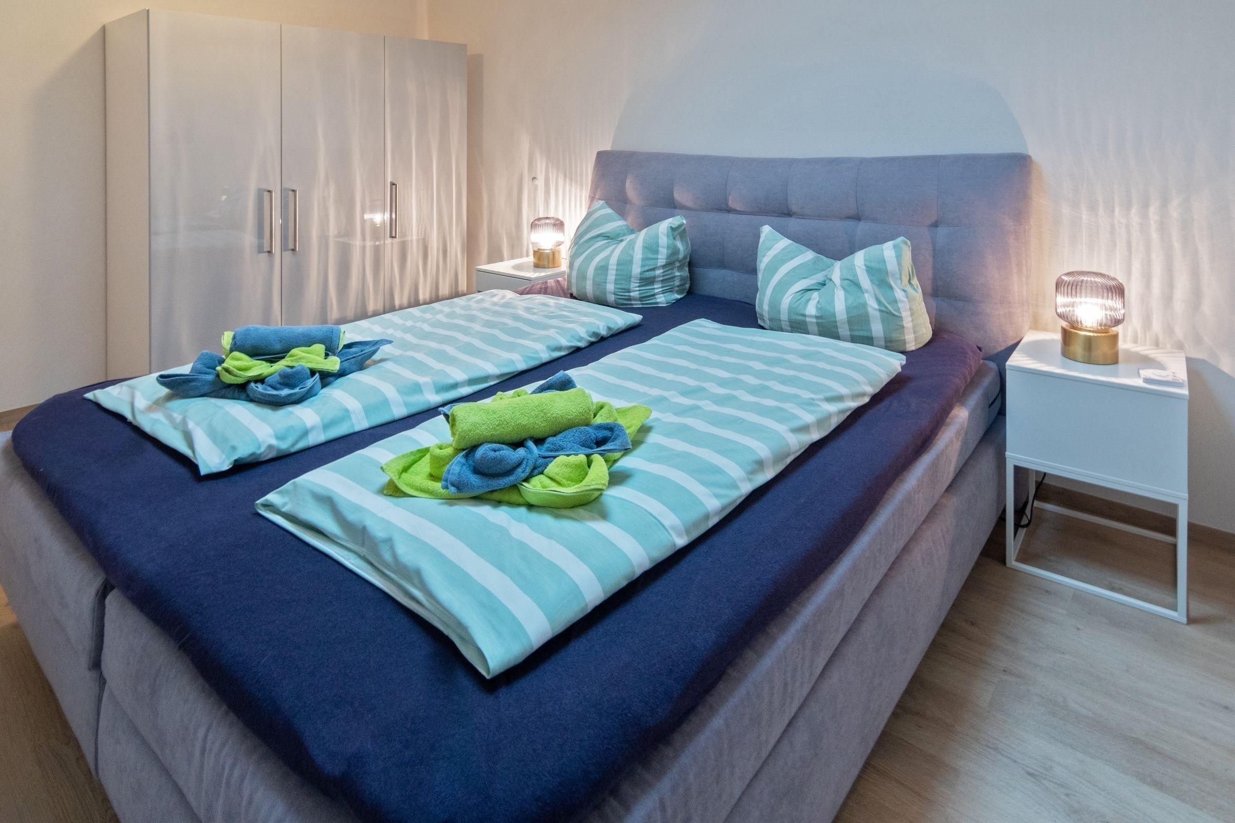 Die Ferienwohnung bietet eine ideale Unterkunft für Entspannung und Komfort. Sie verfügt über zwei Schlafzimmer: eines mit einem Doppelbett und das andere mit zwei Einzelbetten. Die separate Küche ist bestens ausgestattet mit einem Geschirrspüler, Elektro-/Gasherd, Backofen, Kühlschrank, Kaffeemaschine, Toaster und Wasserkocher. Ein Esstisch lädt zu gemeinsamen Mahlzeiten ein. Das moderne Badezimmer bietet eine bodengleiche Dusche, einen Haartrockner und ein Fenster für Tageslicht. Die Allergikergeeignete Wohnung ist durch WLAN-Anschluss und eine HiFi-Anlage mit TV ergänzt. Für Familien steht ein Kinderhochstuhl bereit. Ein Parkplatz ist ebenfalls vorhanden. Weitere Annehmlichkeiten wie eine Waschmaschine, Heizung und Geschirr mit Besteck sorgen für zusätzlichen Komfort. Diese Unterkunft bietet einen perfekten Rückzugsort, um die Freizeit in vollen Zügen zu genießen.