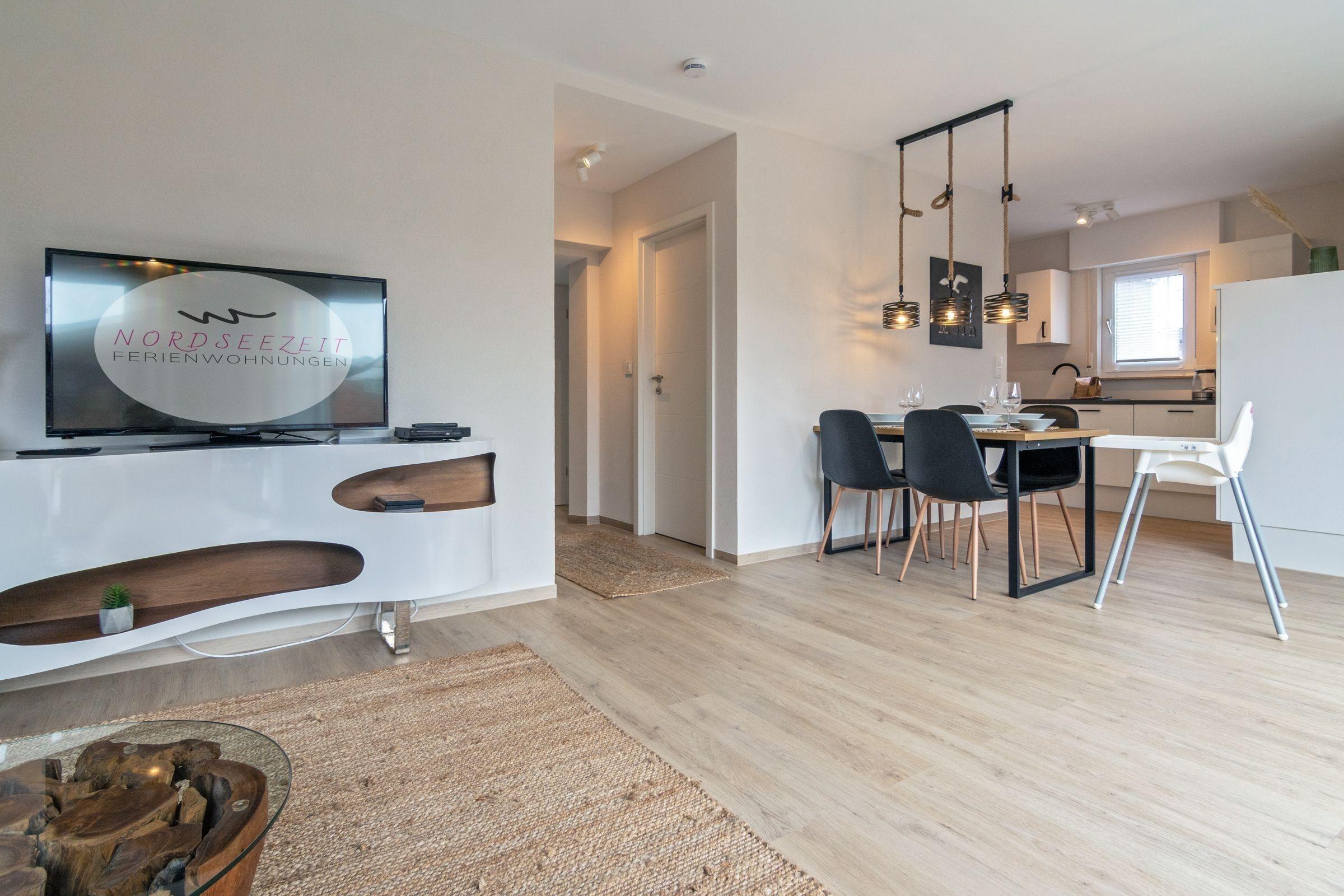 Die Ferienwohnung bietet einen herrlichen Gartenblick und ist ideal für Familien und Gruppen bis zu vier Personen, perfekt für unvergessliche Urlaubsmomente in Norddeich.