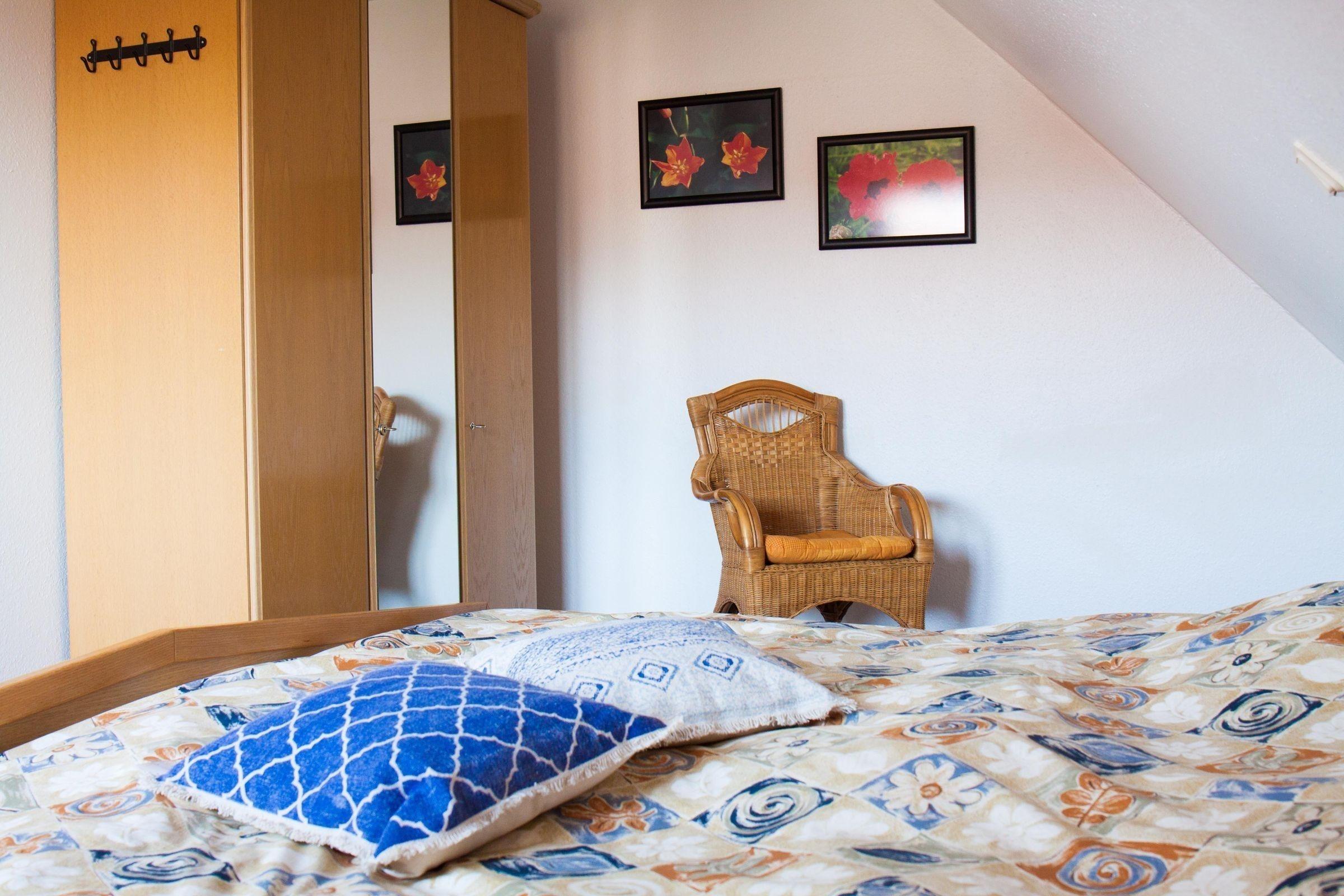 Die Ferienwohnung bietet ein modernes und allergikerfreundliches Ambiente, ideal für einen erholsamen Aufenthalt. Sie umfasst zwei komfortable Schlafzimmer, darunter ein Doppelbett und zwei Einzelbetten. Die offene Küche ist vollständig ausgestattet mit Elektro- und Gasherd, Geschirrspüler, Backofen, Mikrowelle, Kühlschrank sowie Kaffeemaschine und Toaster. Ein großzügiger Esstisch lädt zum gemeinsamen Verweilen ein. Das Badezimmer mit Fenster und Duschbad sowie ein zusätzliches Gäste-WC stehen zur Verfügung. Für Unterhaltung sorgen ein TV und eine HiFi-Anlage. Gästen stehen WLAN, eine Waschmaschine und ein Parkplatz zur Verfügung. Das Wohnzimmer, ausgestattet mit einem Sofa und einem Sessel, bietet Raum zum Entspannen. Zusätzliche Annehmlichkeiten wie ein Haartrockner, Wasserkocher, Garderobe und Bügeleisen runden das Angebot ab. Diese gut durchdachte Ausstattung sorgt für einen angenehmen und komfortablen Aufenthalt.