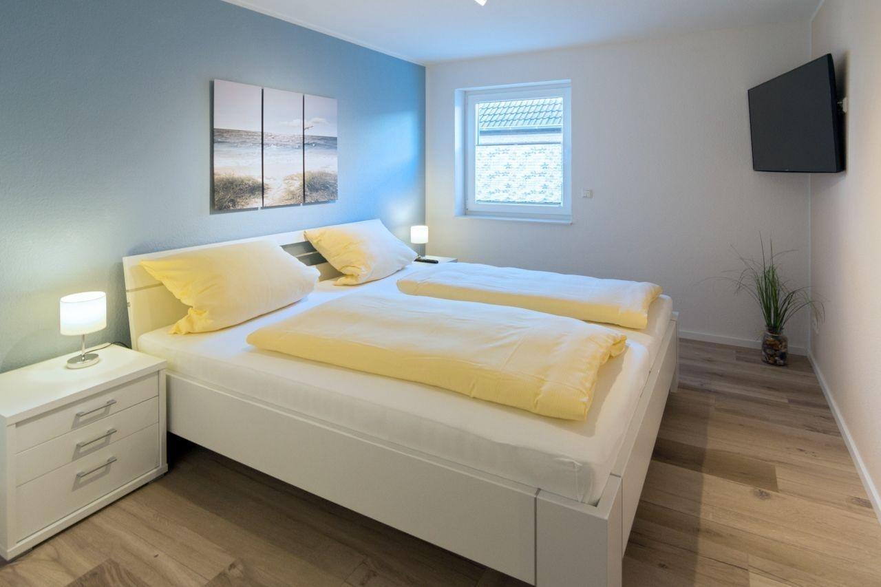 Nachtruhe finden insgesamt vier Gäste in den beiden Schlafzimmern. Beide wurden ebenfalls mit neuen Flat-TV-Geräten ausgestattet.