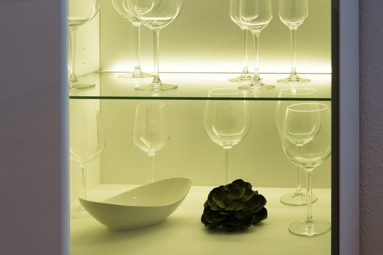 Im großzügigen Wohnbereich lässt es sich herrlich entspannen. Für das perfekte Ambiente sorgen hier die diversen Beleuchtungsmöglichkeiten durch die Designer-Lampen und Vitrinen mit LED-Beleuchtung. Das Infotainment wird durch den neuen 48-Zoll-Flat-LED-Fernseher mit Sat-TV gewährleistet.