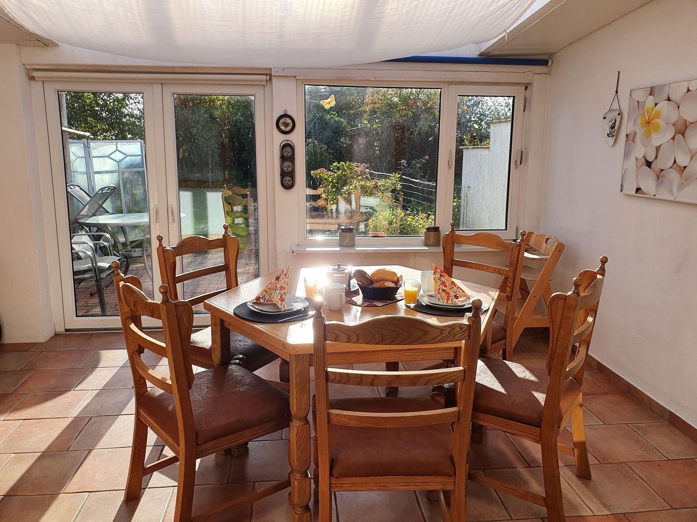 Die Ferienwohnung bietet einen herrlichen Gartenblick und ist ideal für Familien und Gruppen bis 9 Personen, perfekt für unvergessliche gemeinsame Urlaubsmomente in der charmanten Nordseeregion.