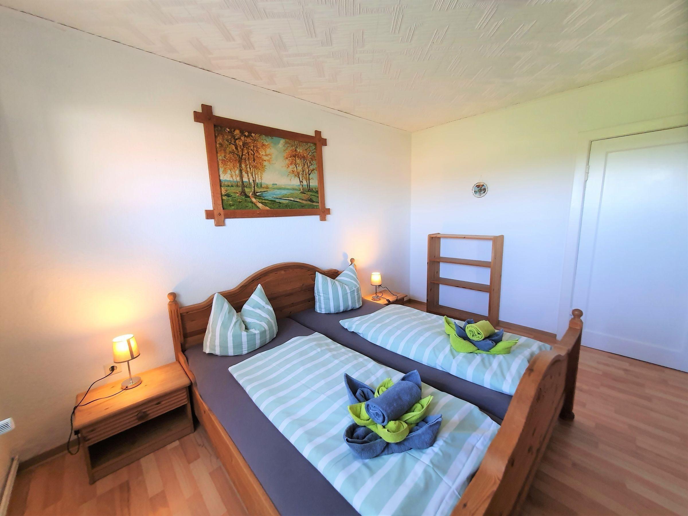 Diese großzügige Ferienwohnung bietet eine ideale Unterkunft für Familien oder Gruppen. Mit vier Schlafzimmern, darunter zwei Doppelbetten und fünf Einzelbetten, finden die Gäste ausreichend Platz für einen entspannten Aufenthalt. Die separate, voll ausgestattete Küche verfügt über einen Elektro-/Gasherd, Backofen, Mikrowelle und Kühlschrank sowie alle notwendigen Utensilien wie Geschirr, Besteck und Kaffeemaschine. Die Badezimmer sind modern gestaltet und bieten neben einem Badezimmer mit Fenster und Badewanne auch ein praktisches Gäste-WC.