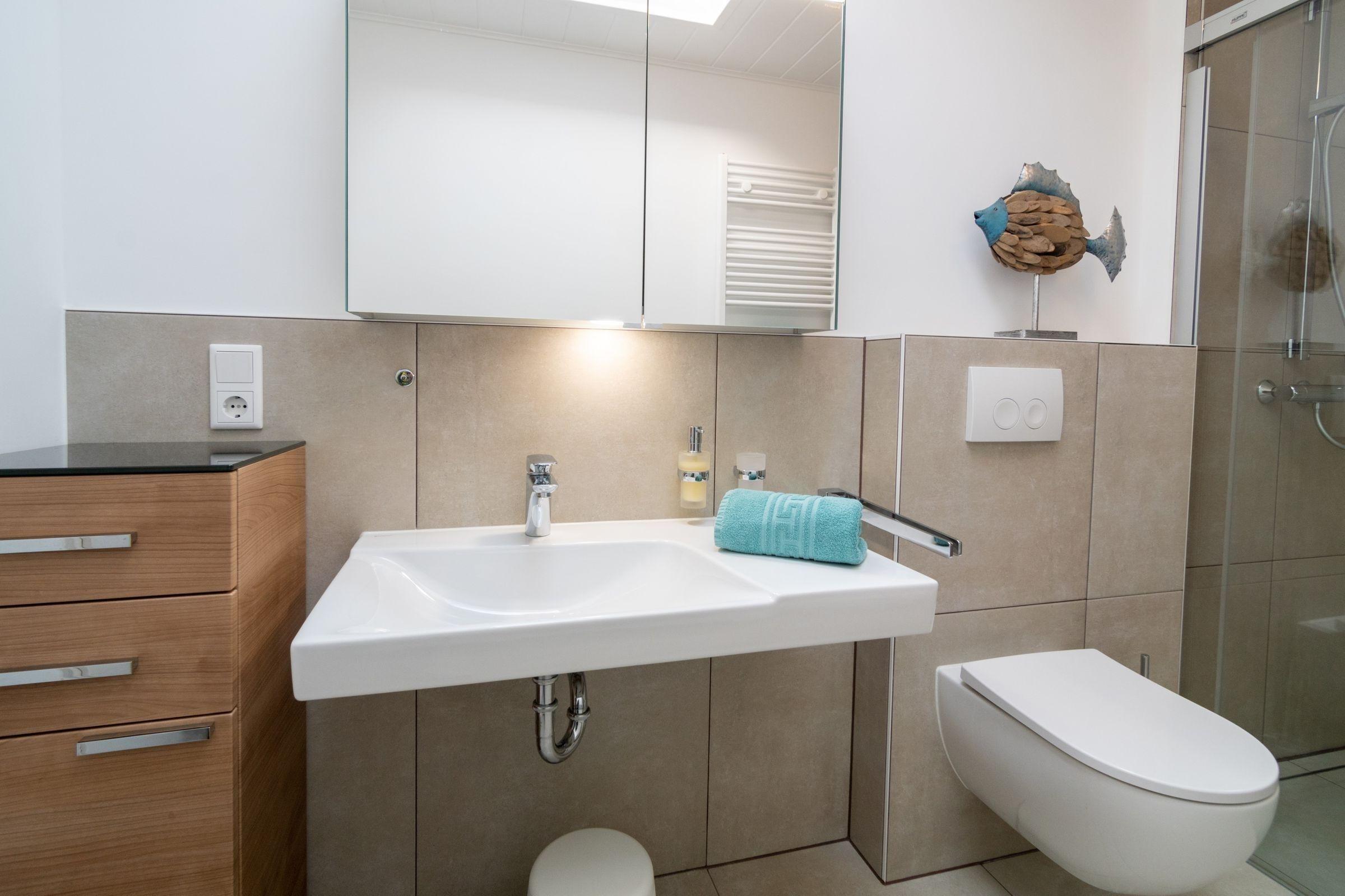 Die Ferienwohnung bietet eine moderne und komfortable Ausstattung, die für einen erholsamen Aufenthalt sorgt. Sie verfügt über drei Schlafzimmer, darunter zwei mit Doppelbetten und eines mit einem Einzelbett sowie einem Kinderbett, ideal für Familien. Die offene Küche ist voll ausgestattet mit Geschirrspüler, Elektro-/Gasherd, Backofen, Kühlschrank, Mikrowelle, Kaffeemaschine, Wasserkocher, Toaster und einer Gefriermöglichkeit. Ein Esstisch lädt zu gemeinsamen Mahlzeiten ein. Das barrierefreie Duschbad ist mit einer bodengleichen Dusche, einem Haartrockner und einem Fenster versehen. Im Aufenthaltsbereich sorgen Sofa und Sessel für Entspannung, während die HiFi-Anlage und der Fernseher Unterhaltung bieten. WLAN-Internet ist verfügbar. Zur Ausstattung gehören zudem ein Parkplatz sowie eine Waschmaschine. Diese Wohnung ist allergikergeeignet und bietet auch eine ideale Umgebung für Reisende mit besonderen Bedürfnissen.