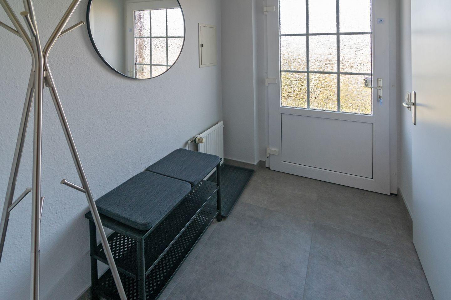 Die Ferienwohnung verfügt über einen eigenen Garten, der eine ruhige Oase der Entspannung bietet. Liegestühle laden zum Relaxen unter freiem Himmel ein, während die Terrasse ideal für gemütliche Abende im Freien ist. Hier kann man die frische Luft genießen und ungestörte Momente verbringen, fernab vom Alltag.